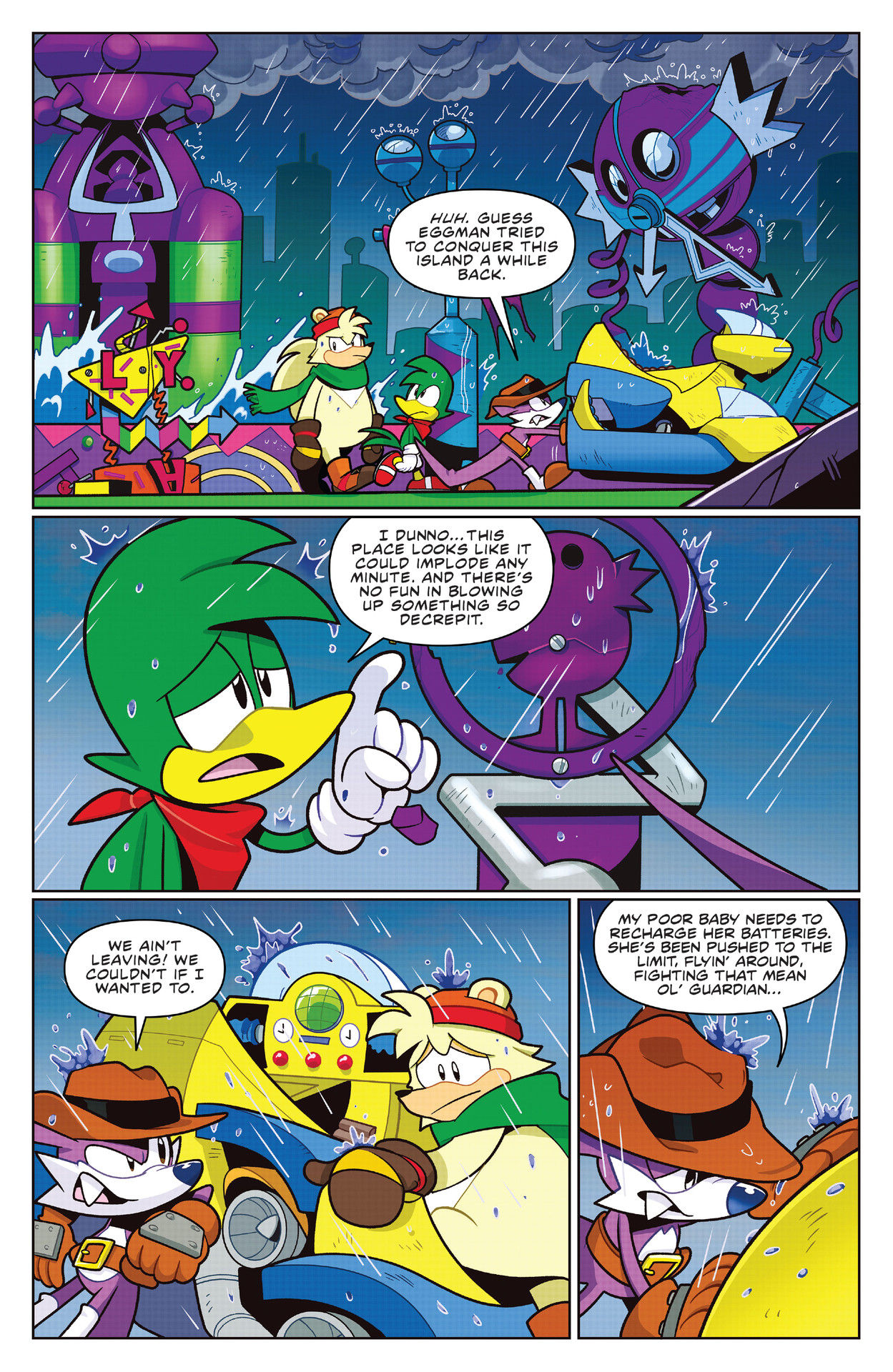 So if you look at the next month comic there is a spiral that leads to a glowing object it doesn’t look like the phantom ruby could fit it and the voip sound and sparkle is signs its the warp topaz and if eggman got ahold of the phantom ruby that would just lead to sonic mania. Also why would eggman ever use the phantom ruby to make a teleporting flying battery? He would probably just make the death egg but the warp topaz probably has a size limit to what it can do. But if hes on that island he might be following the legend which might lead to a chaos emerald or the phantom ruby but if he gets a chaos emerald he might try to supercharge the warp topaz for a teleporting death egg or he might just use the warp topaz to make a teleporter for badniks. Either one would make sense honestly but they might find a portal to the super emeralds which is really stretching it.