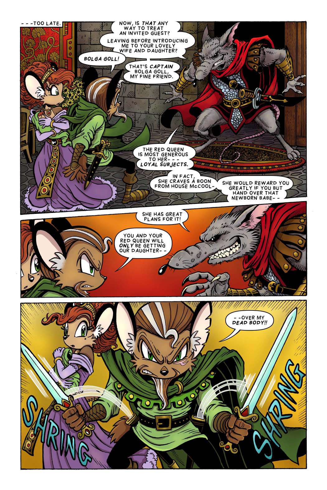 Omg I love sonic just as much as everyone, but jeez…. The comic was made by a Archie comic artist, but is not a sonic comic. in the beginning they even said that it was a Celtic mythology comic with the art style of sonic because, well obviously it’s the artist art style and, the story was made by the artist daughter so it’s the art style she grew up seeing her dad do. So there won’t be any sonic, but there will be an interesting story