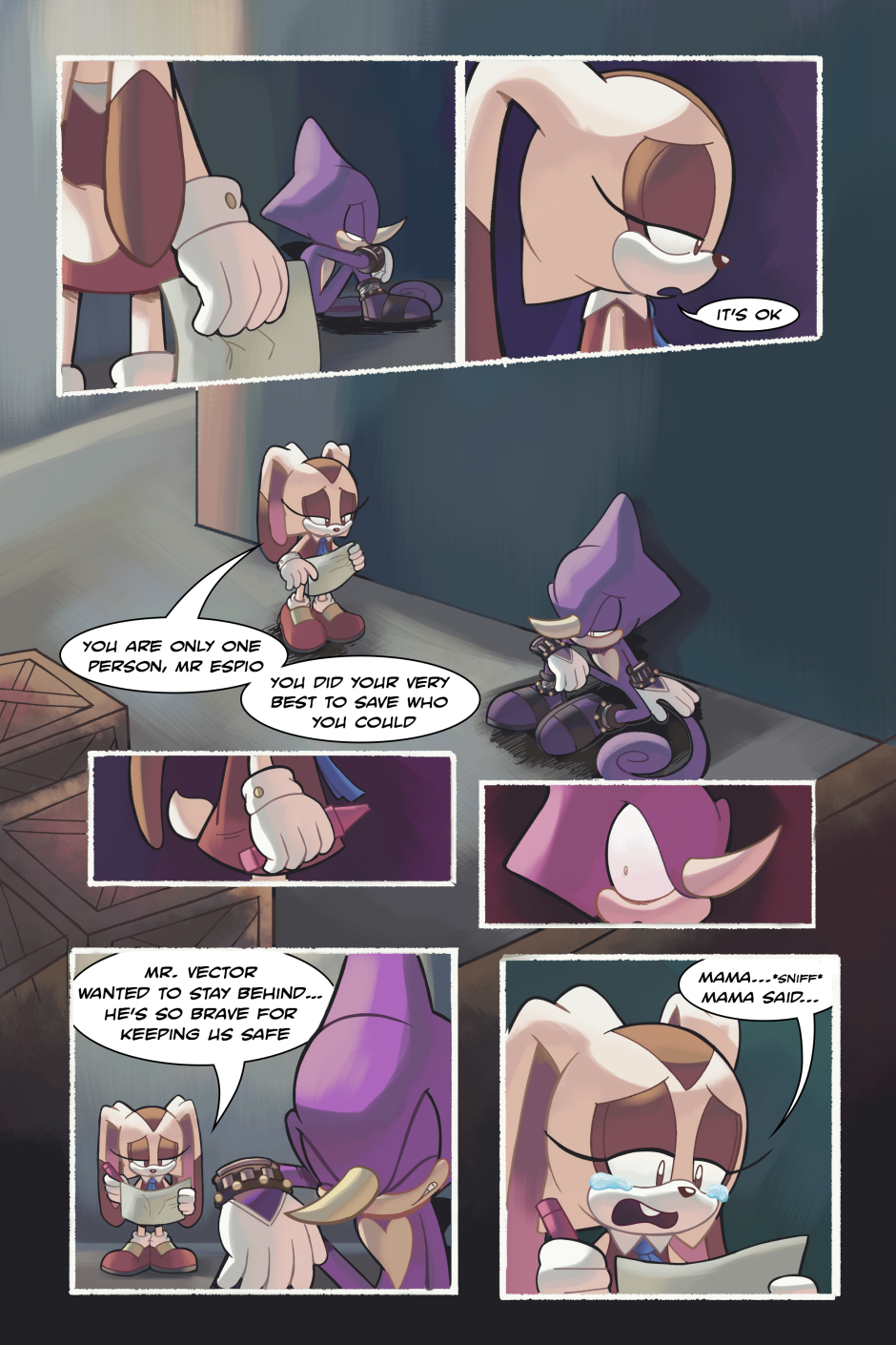 Espio really didn’t deserve to be yelled at like that. Everyone knows that it’s not his fault. They’re just taking out their anger on him. I mean, everyone likes to have someone or something to blame. It’s also terrible that everyone on the shuttle believes it’s true and thinks they need to dispose of him.