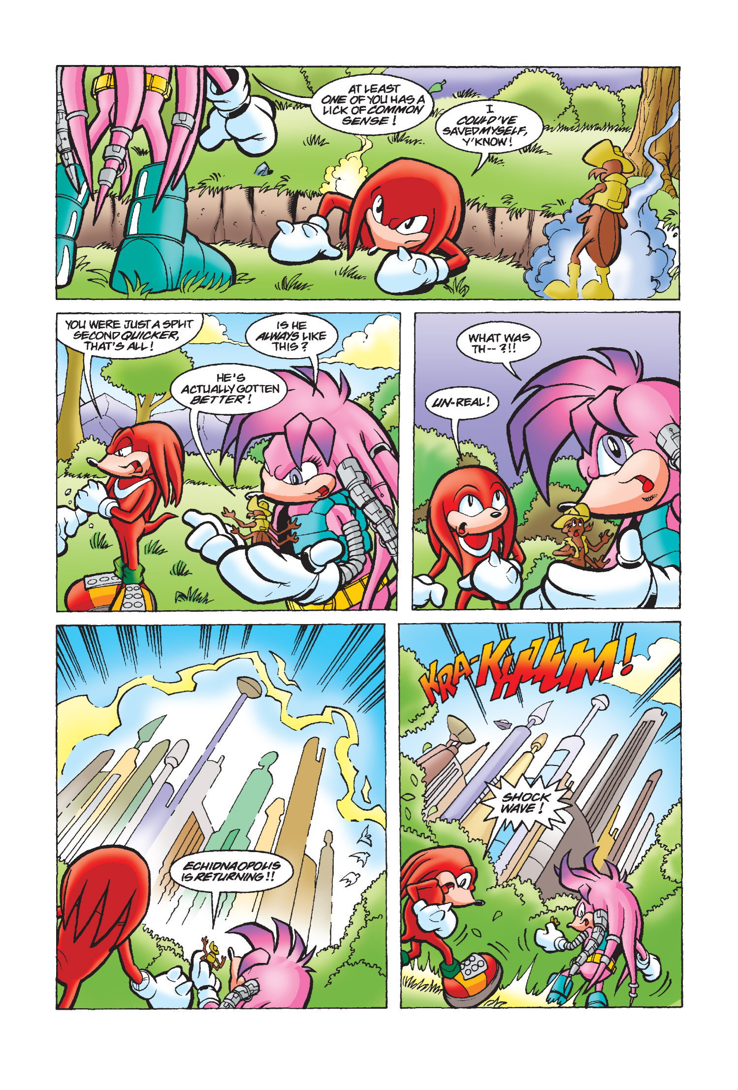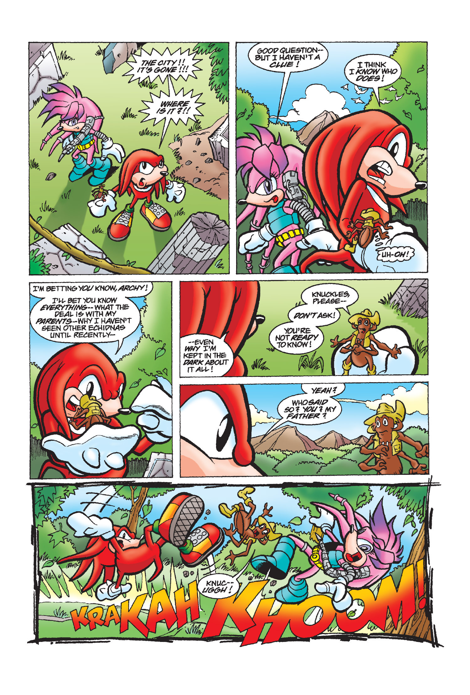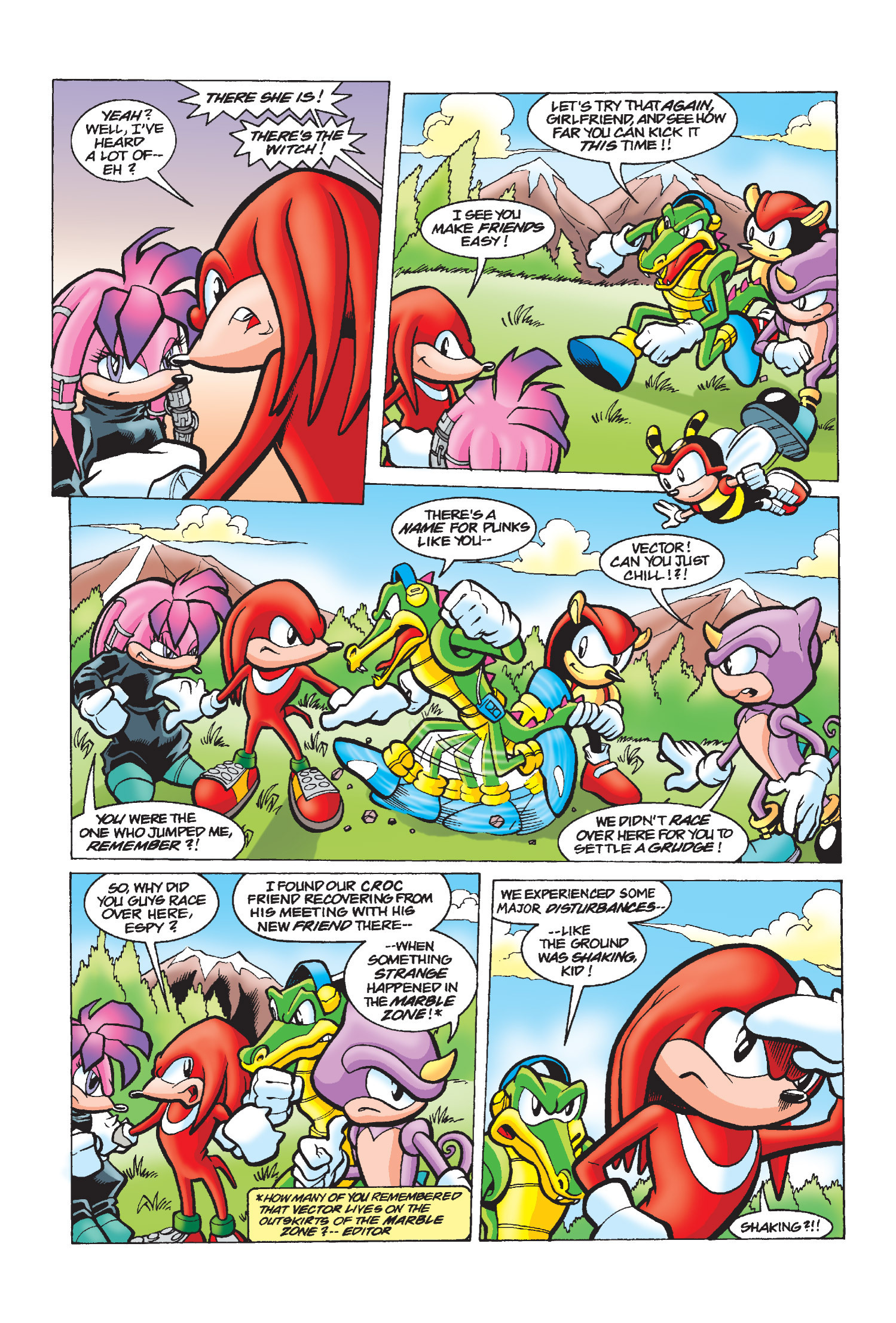 She’s my second favorite character, right after Knuckles. Julie-Su is amazing. It’s sad that she belongs to Penders. She was really fun, cool, and her design was cute. She was Knuckles’ love. This is her first appearance. The last time we saw her was in issue 245 (or rather, in a memory of her last words).