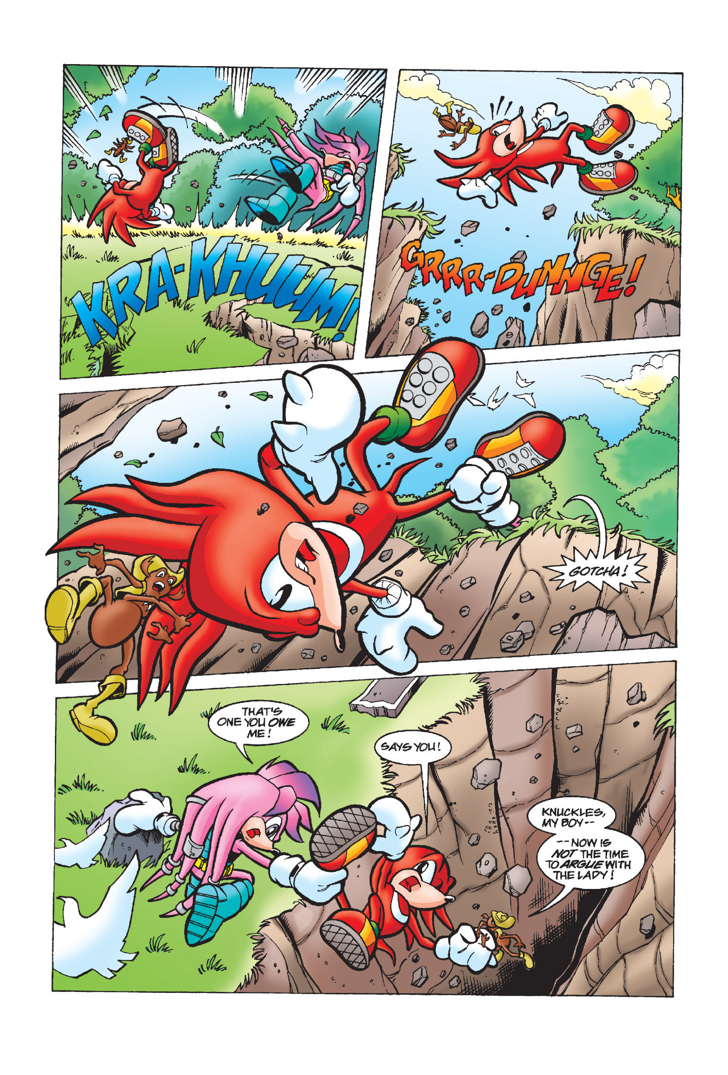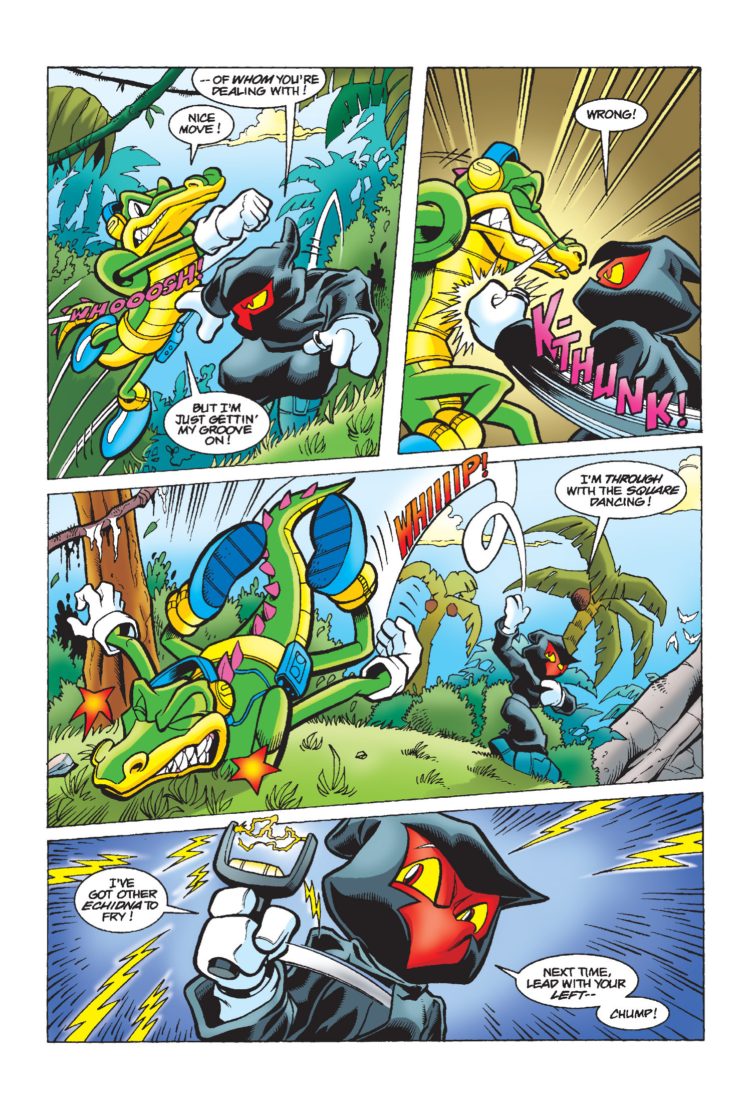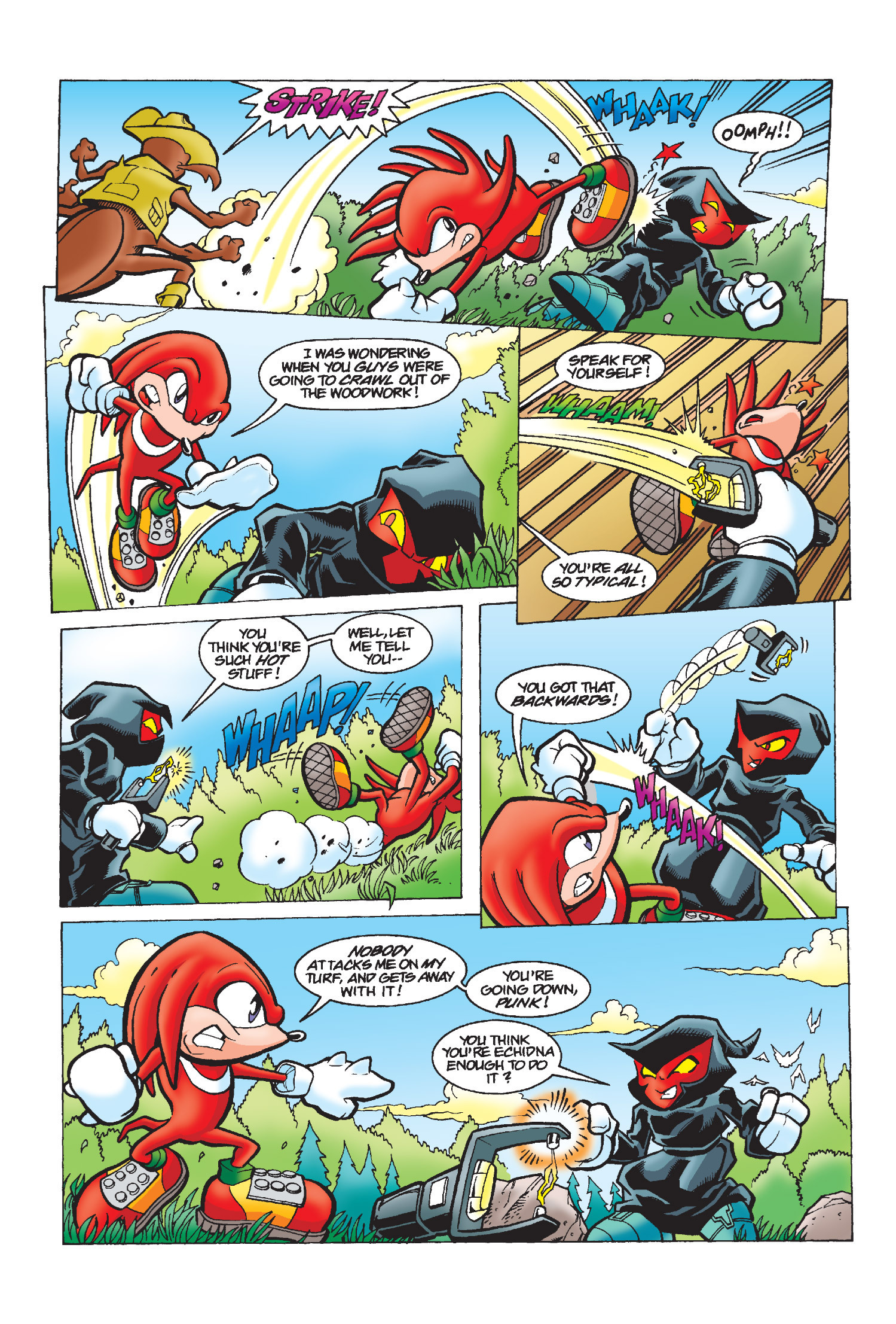 She’s my second favorite character, right after Knuckles. Julie-Su is amazing. It’s sad that she belongs to Penders. She was really fun, cool, and her design was cute. She was Knuckles’ love. This is her first appearance. The last time we saw her was in issue 245 (or rather, in a memory of her last words).