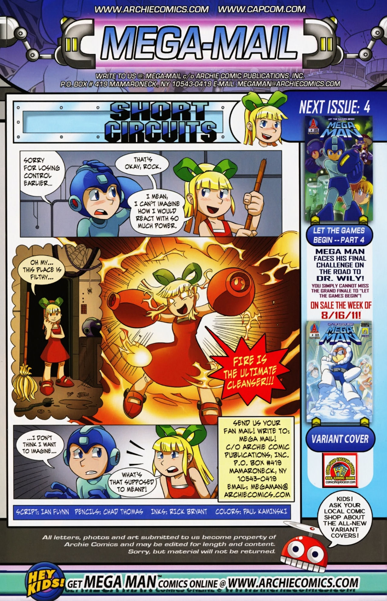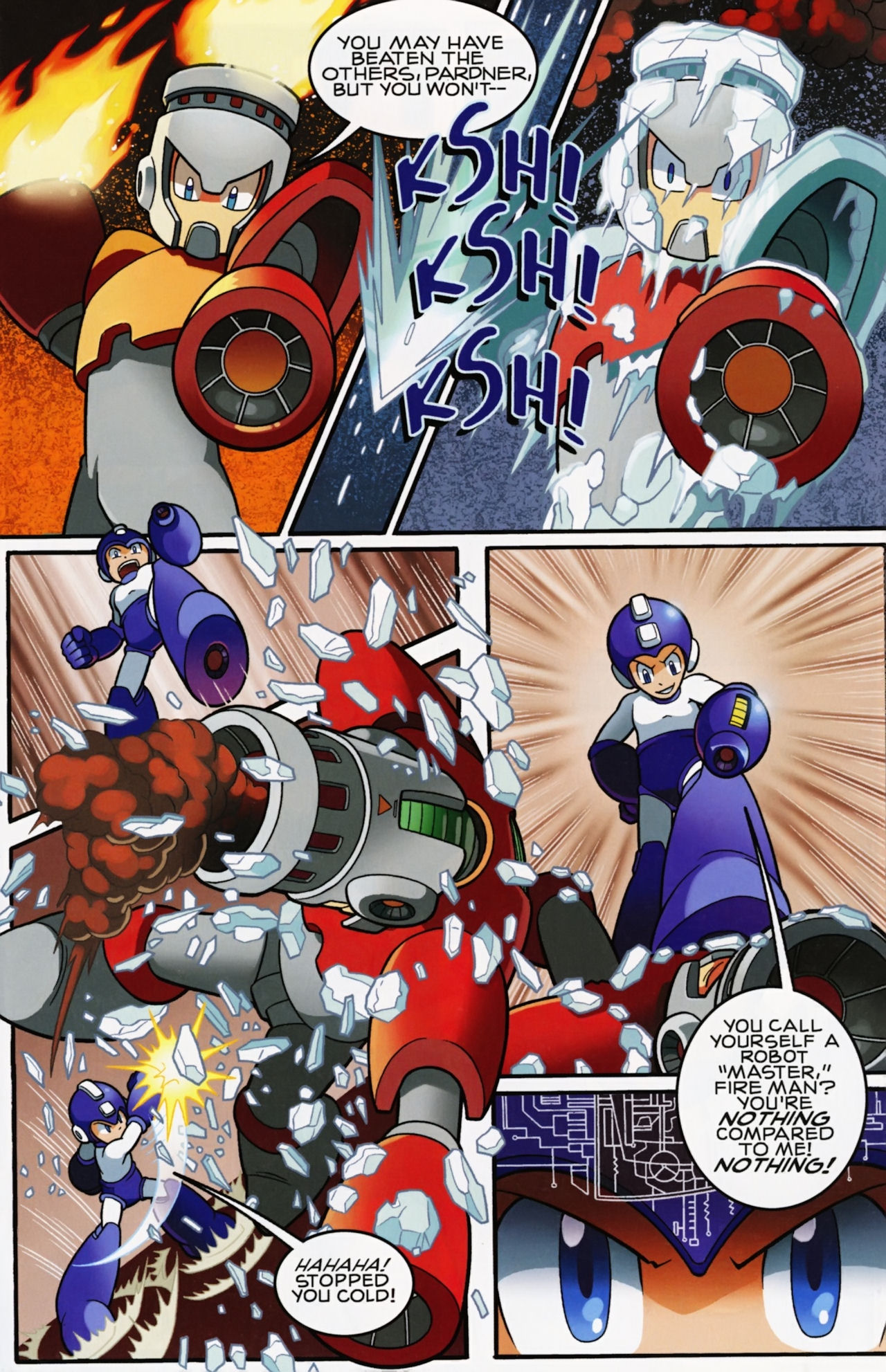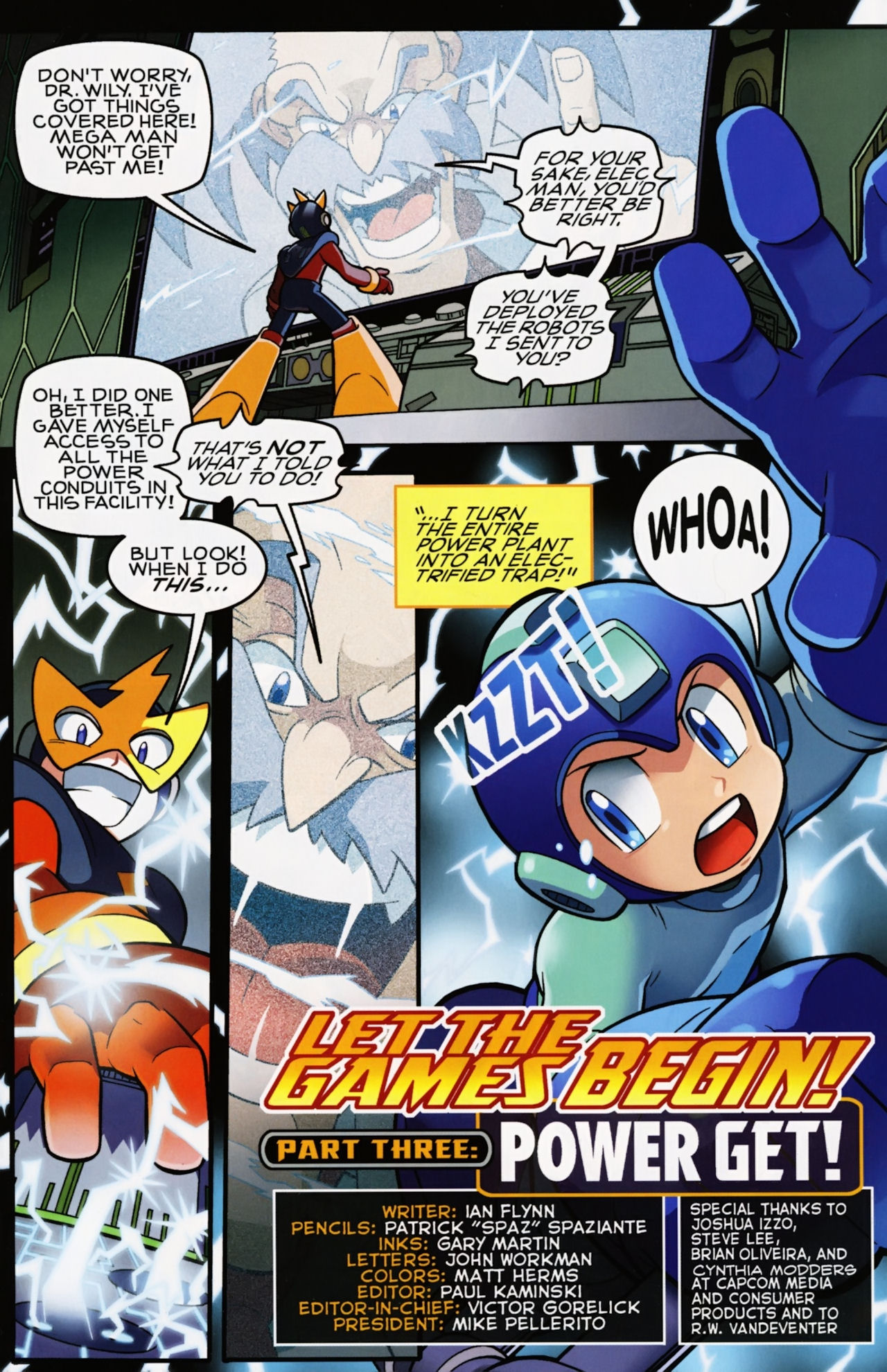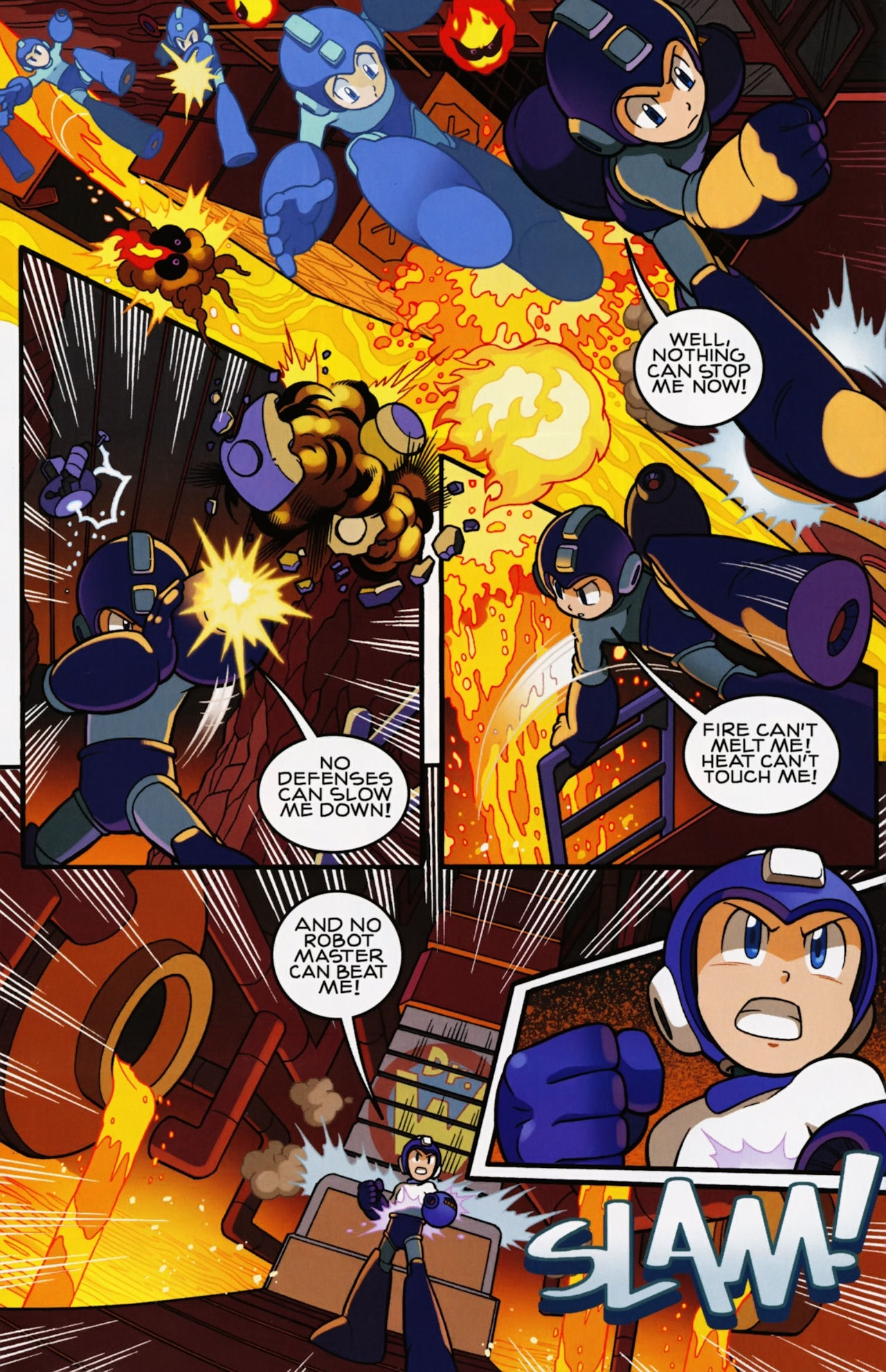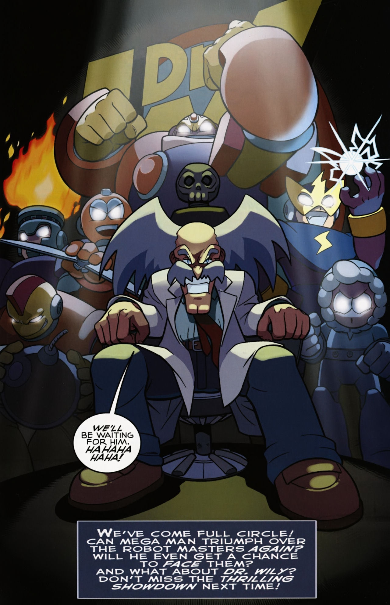 Really don’t like how short the Robot Masters fights are in the Mega Man 1 arc. They not only last about page, but the Robot Masters are also taken out in one hit! Lame! But that said, I do love the scenes between Mega Man and Dr. Light and Roll. And the nods to the Megas are very much appreciated.