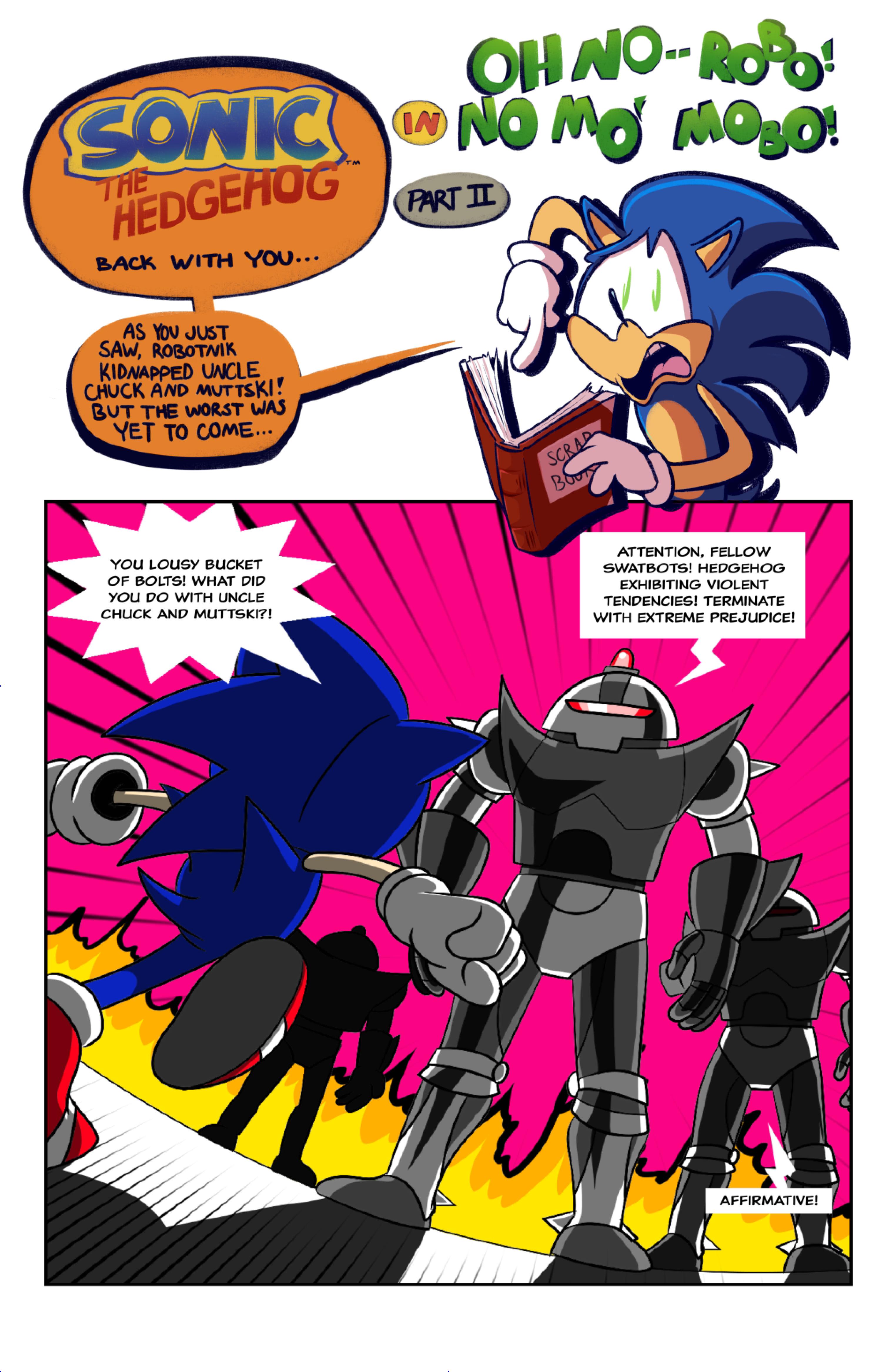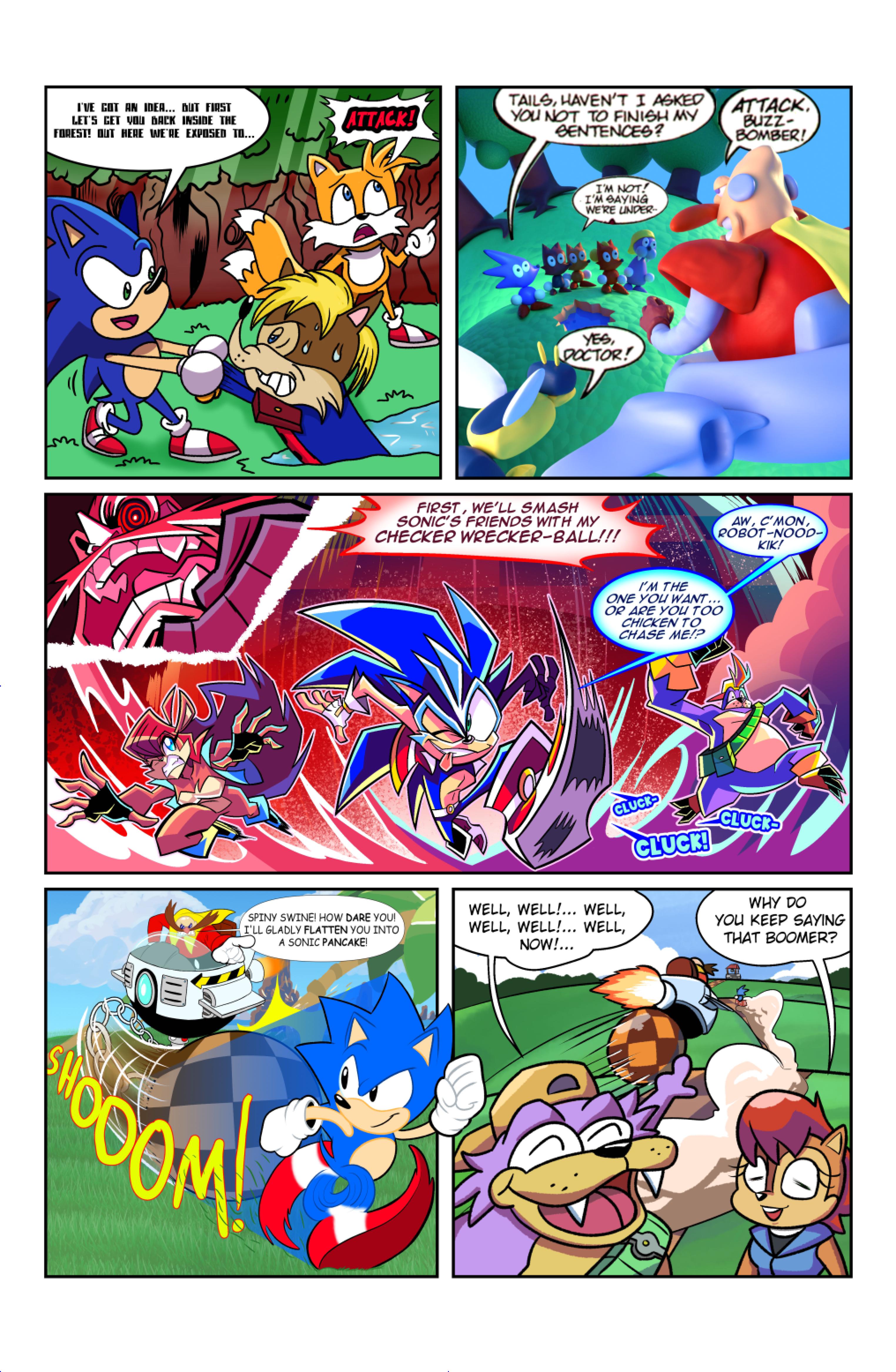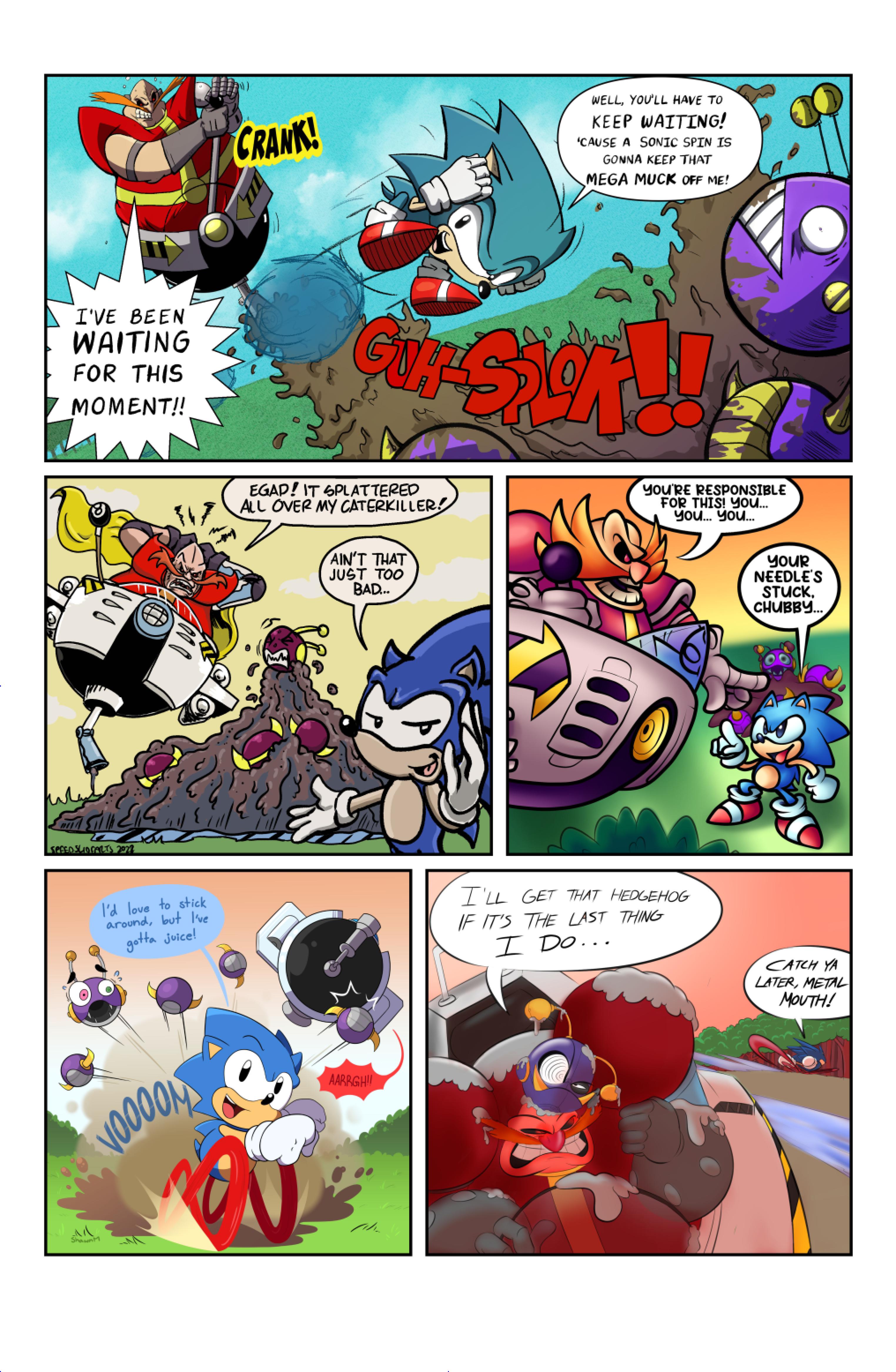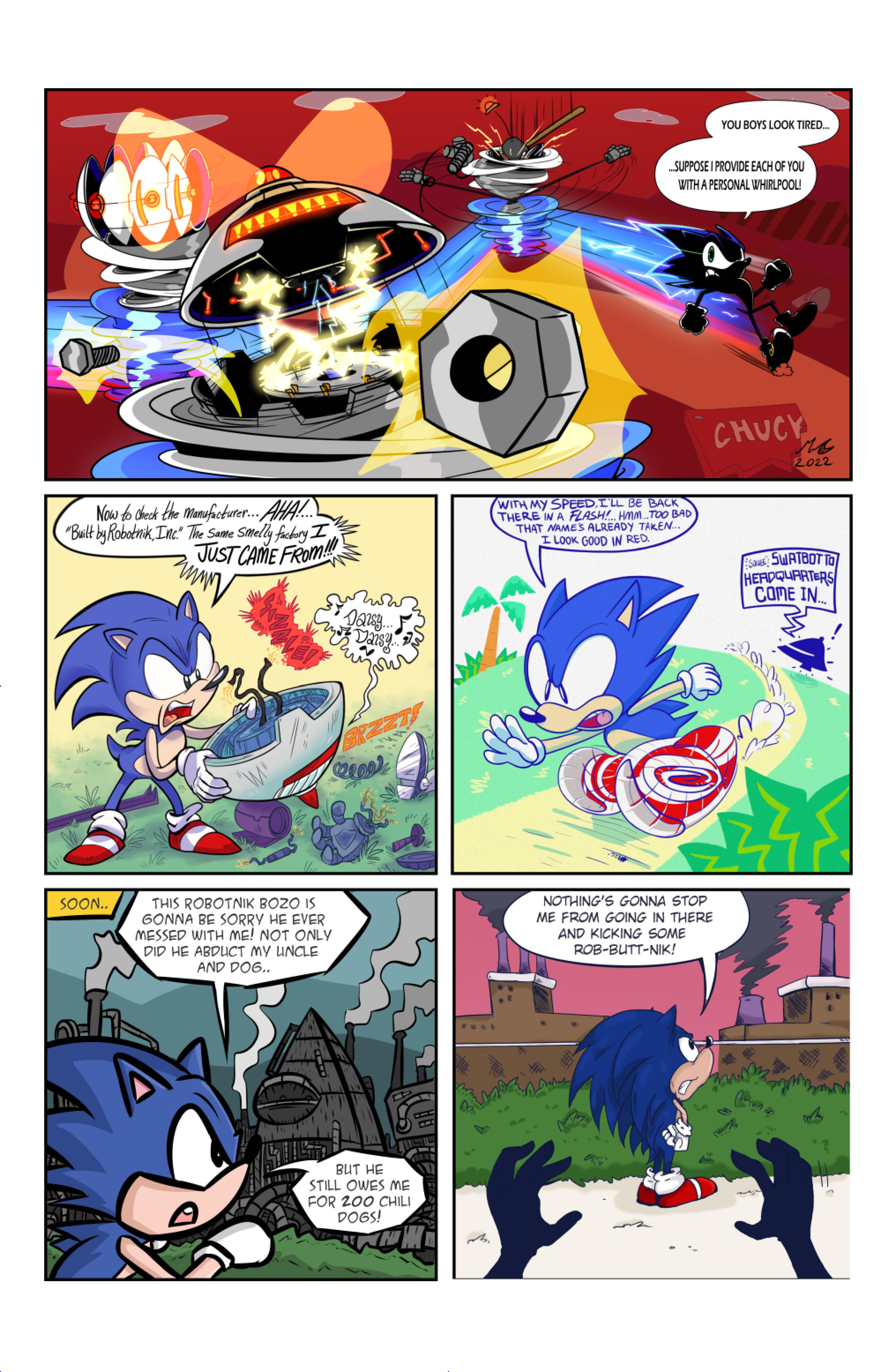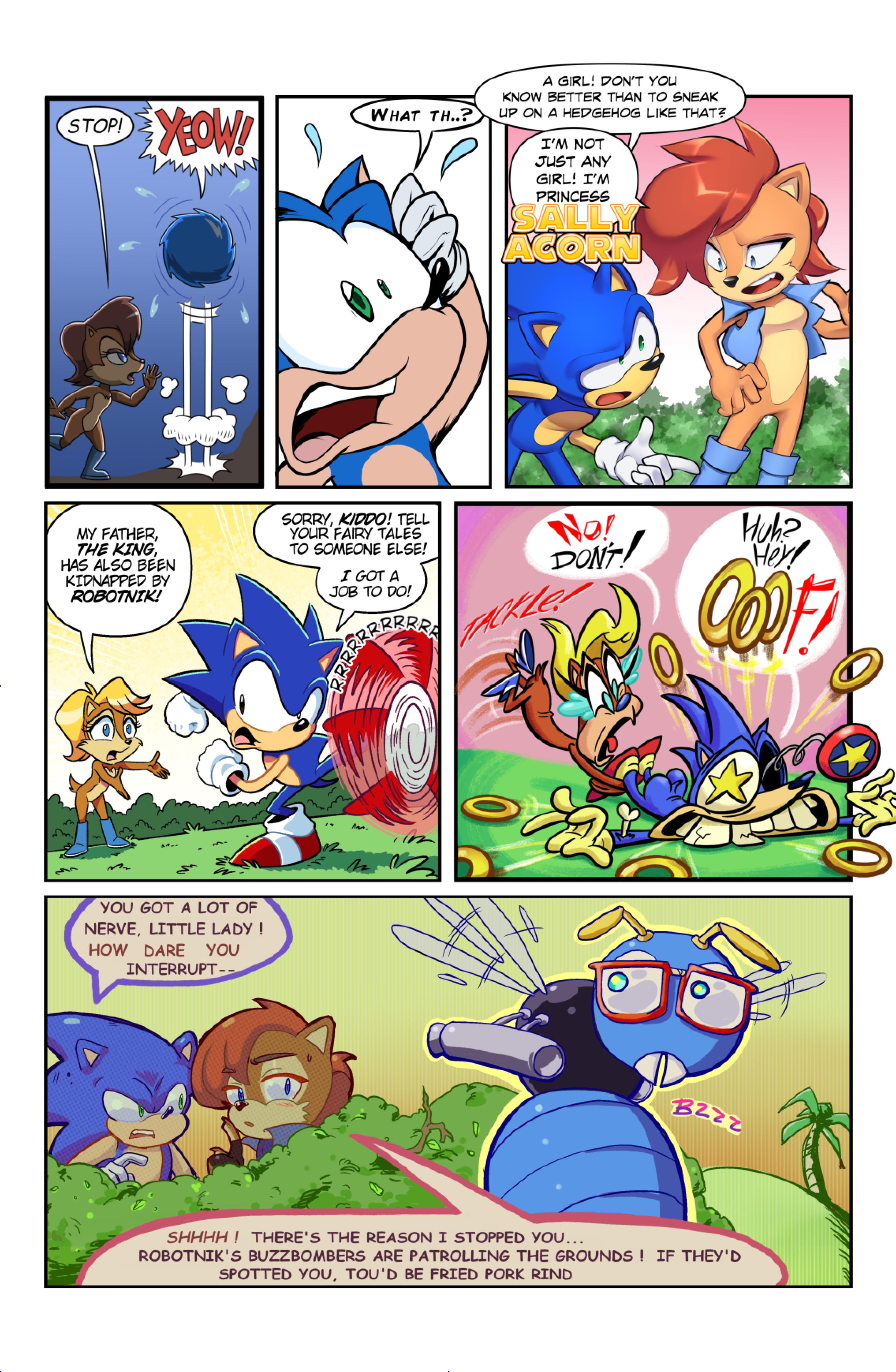 this comic was perfect. first things first the idea like redrawing a comic in different art styles very creative,second some of the art was very cool the way they draw antoine on the character page was very funny, and Sally first appearance who ever drew that you need to go to jail, and the one panel where Antoine interrupt sonic and Sally thinking, why did the person draw Sally and sonic like that it looks creepy.and I can tell some of the art was made by some other sonic fan film/comic makers example the panel where Antoine fell into the pond the art before looked like the tails got trolley art style and the panel where sonic is pulling Antoine out the pond it looks like the same art style of ok ko and in that same page when I saw mii toons art I was so happy and I hope there still working on sonic villains. tbr I never seen or read any of the old comics but this was really funny and the art made it 10x better. really good comic 100/100