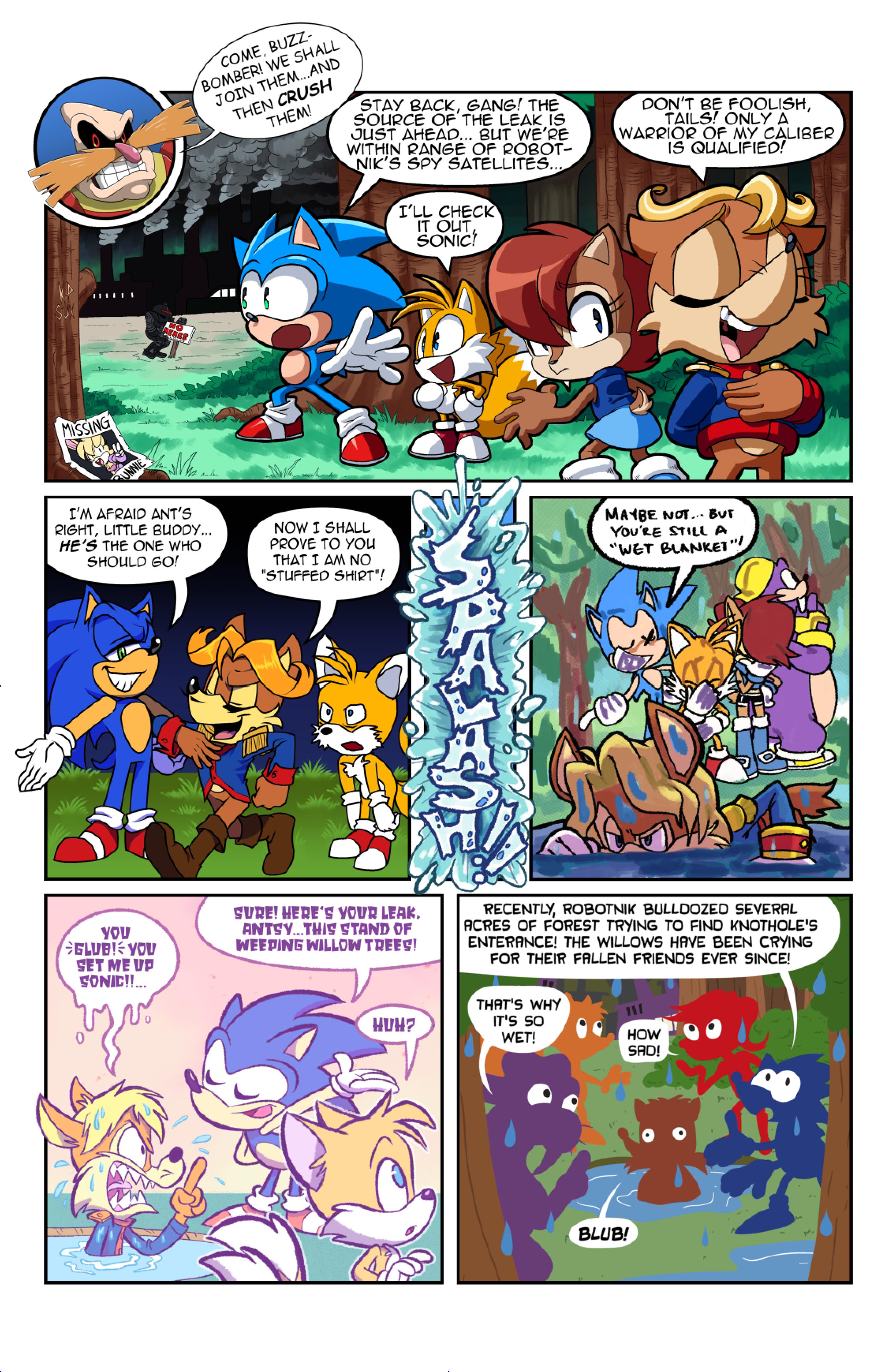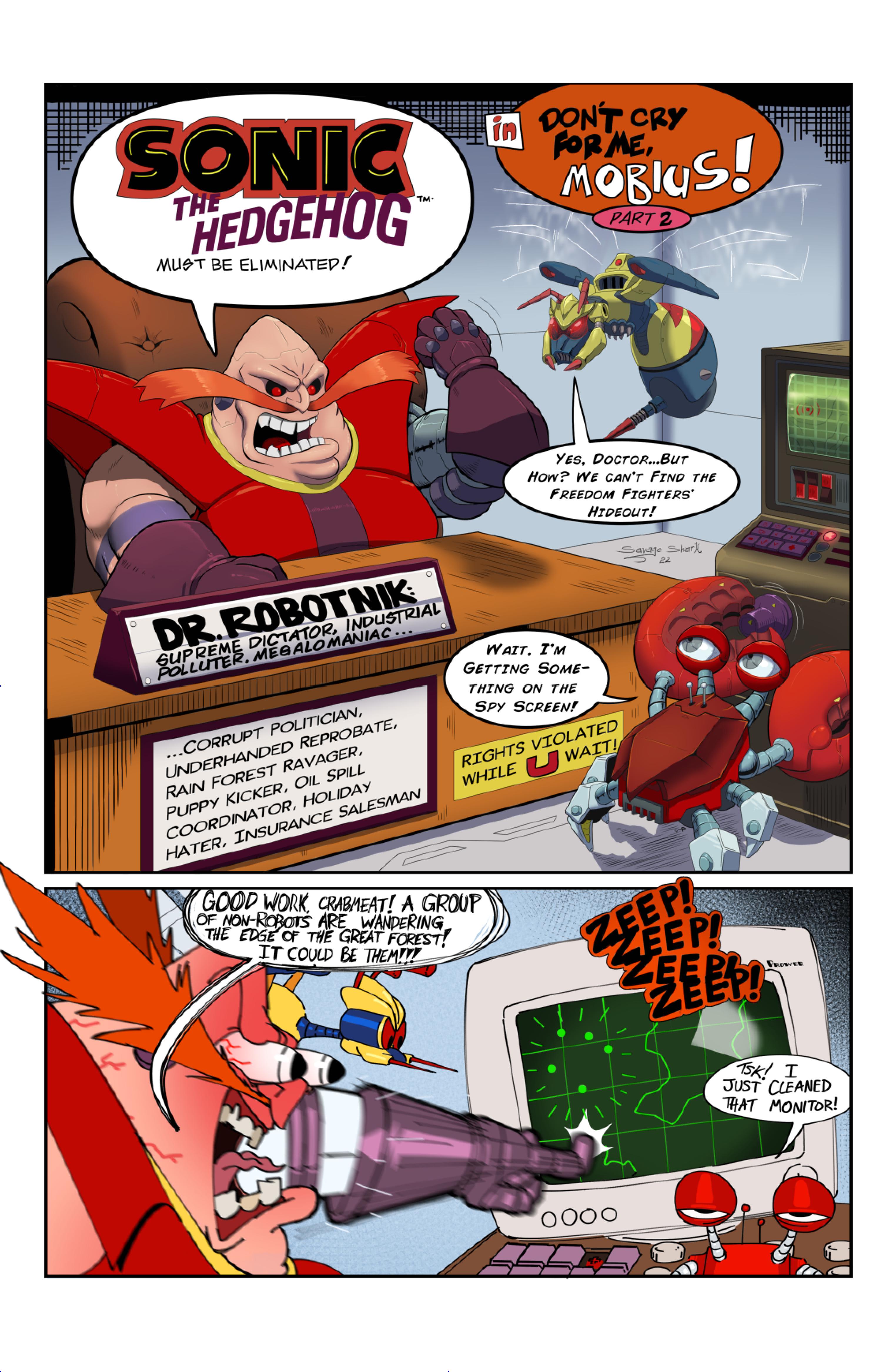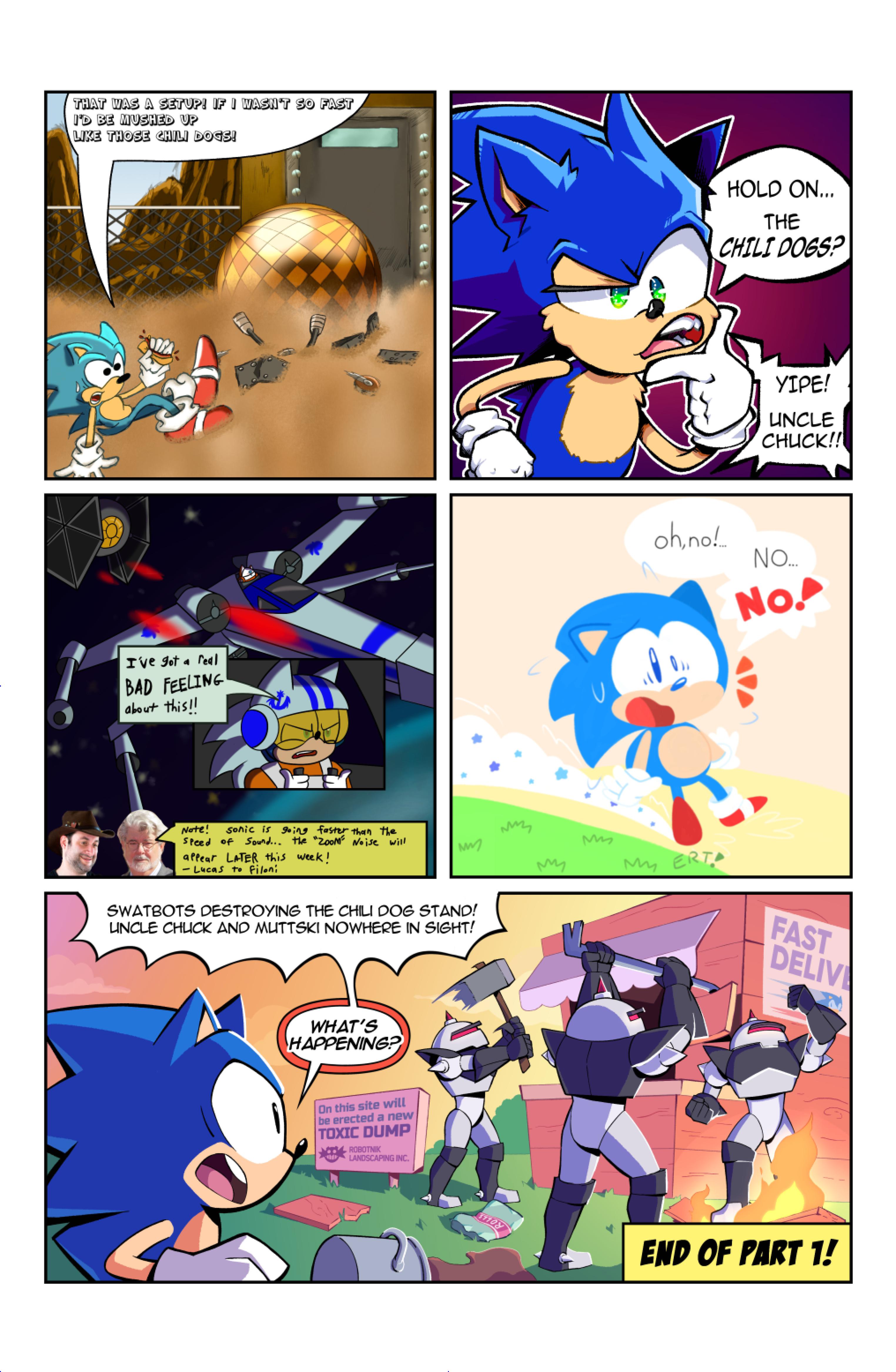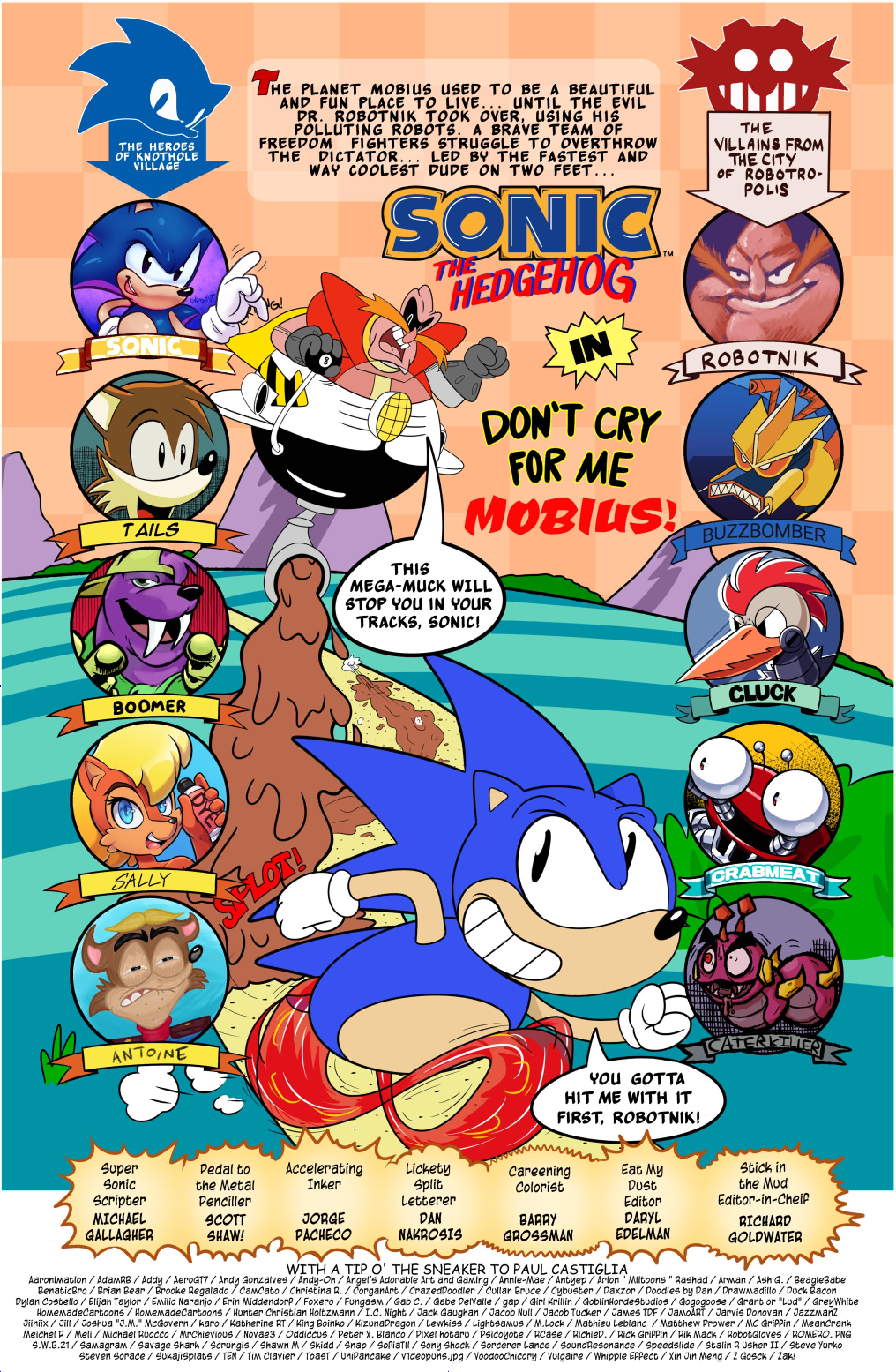 this comic was perfect. first things first the idea like redrawing a comic in different art styles very creative,second some of the art was very cool the way they draw antoine on the character page was very funny, and Sally first appearance who ever drew that you need to go to jail, and the one panel where Antoine interrupt sonic and Sally thinking, why did the person draw Sally and sonic like that it looks creepy.and I can tell some of the art was made by some other sonic fan film/comic makers example the panel where Antoine fell into the pond the art before looked like the tails got trolley art style and the panel where sonic is pulling Antoine out the pond it looks like the same art style of ok ko and in that same page when I saw mii toons art I was so happy and I hope there still working on sonic villains. tbr I never seen or read any of the old comics but this was really funny and the art made it 10x better. really good comic 100/100