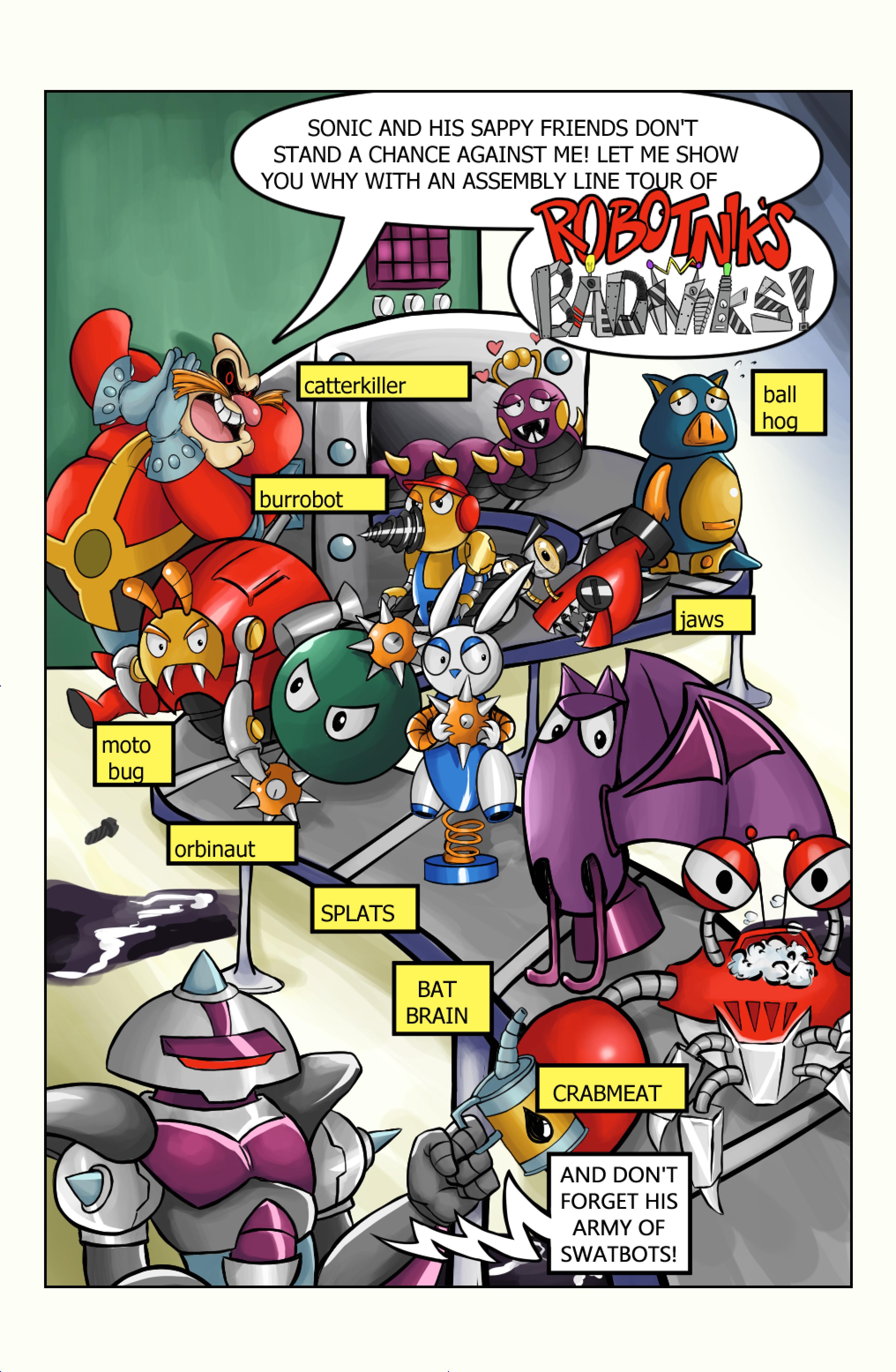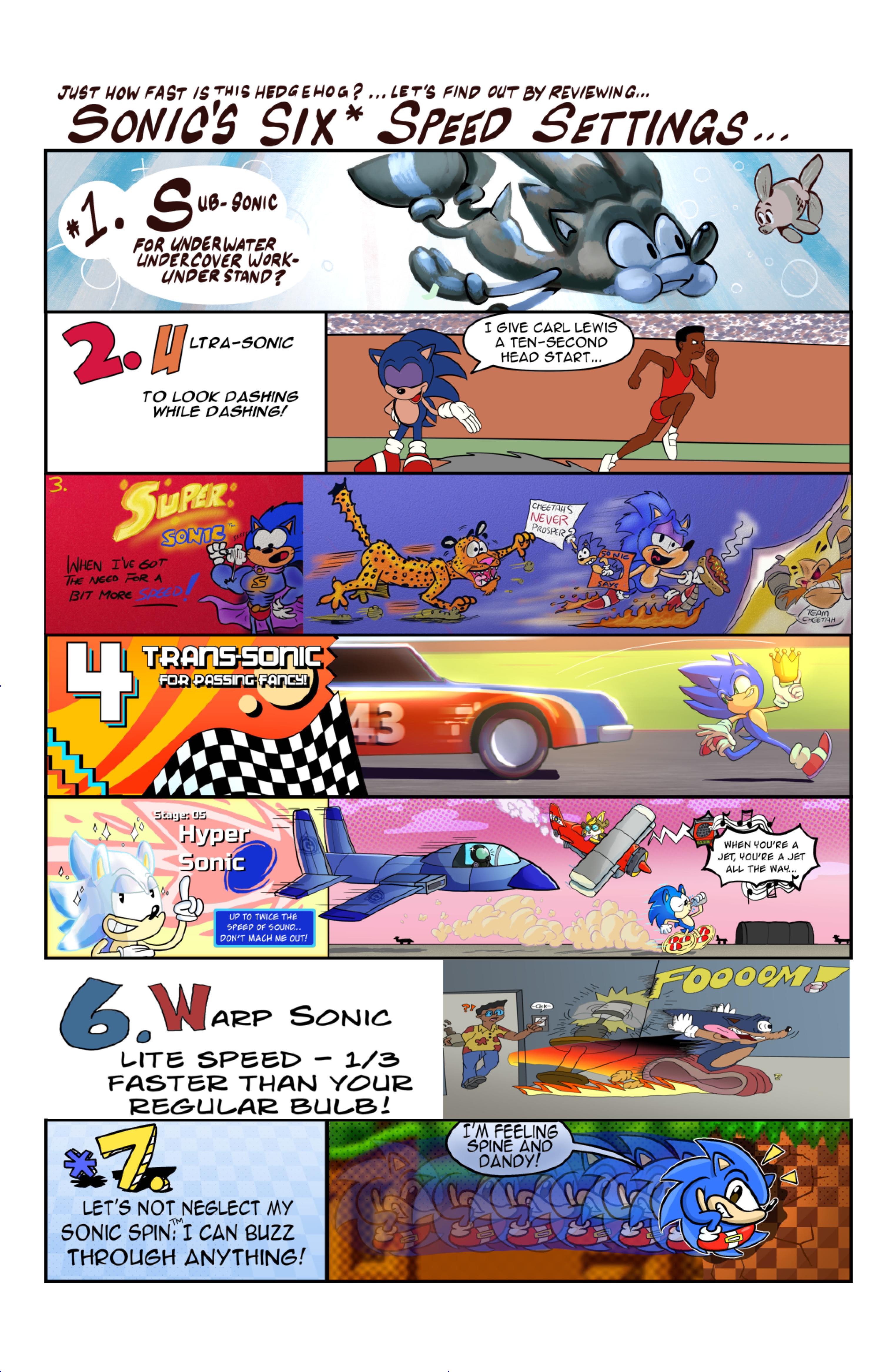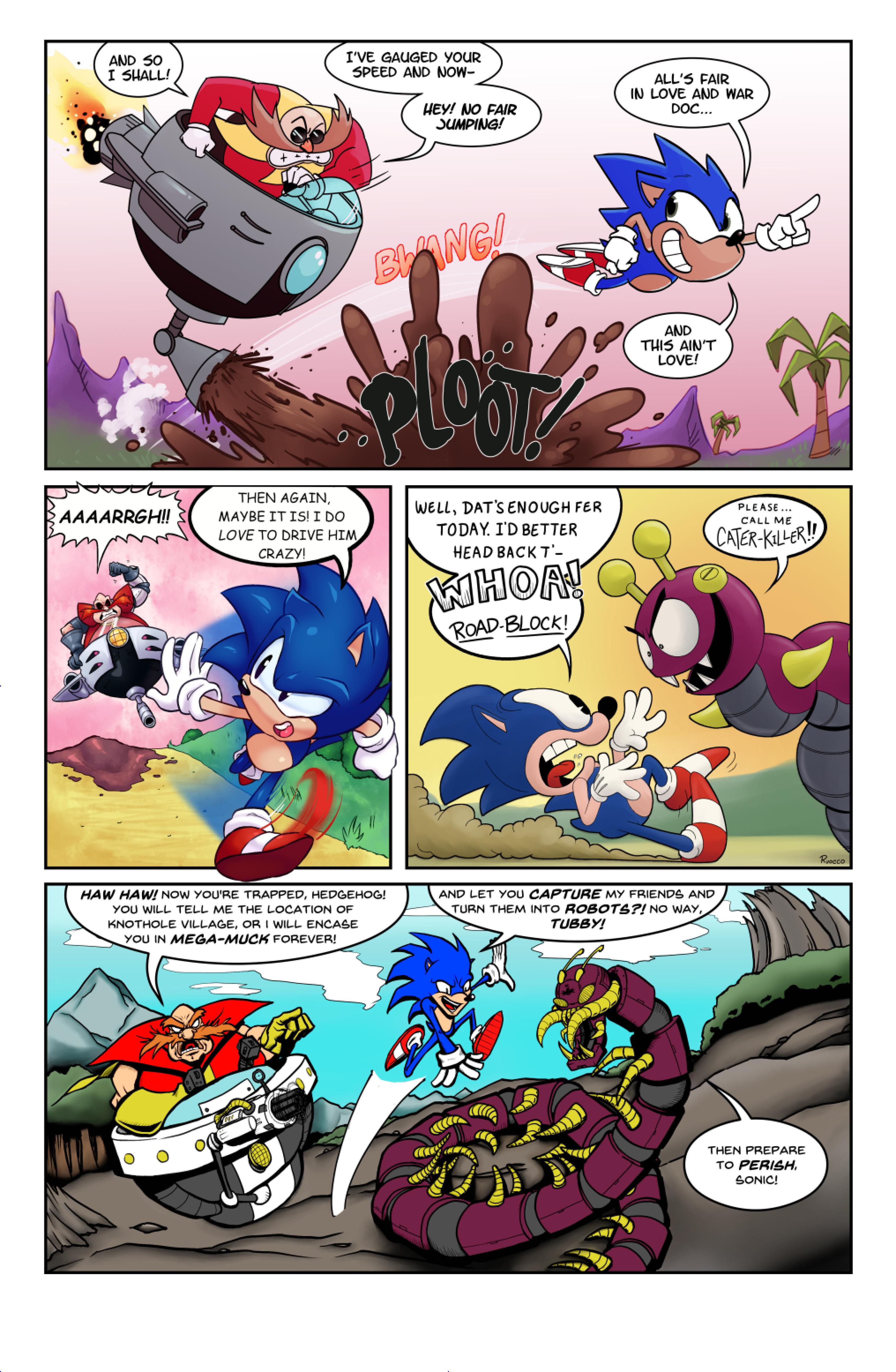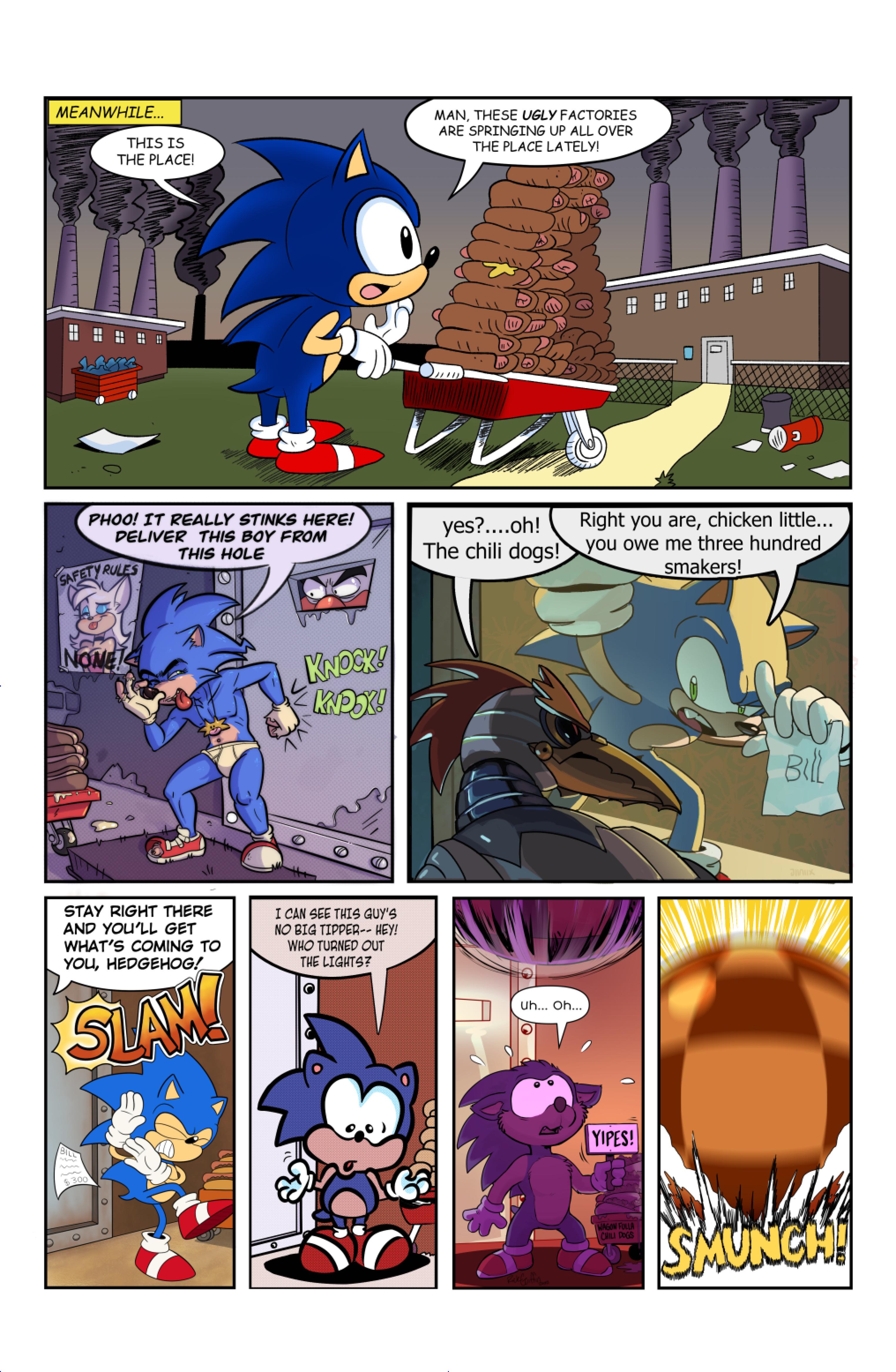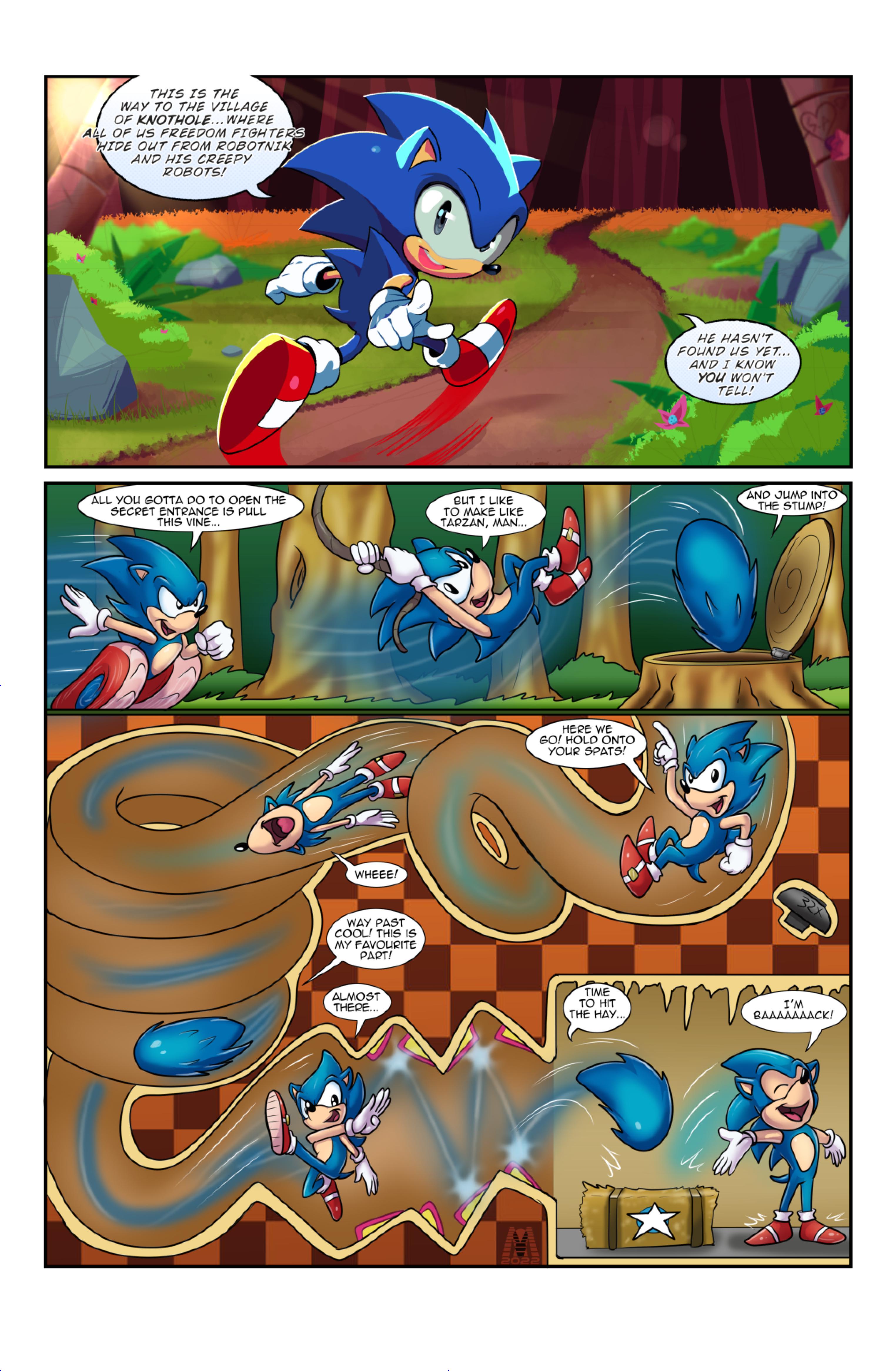 this comic was perfect. first things first the idea like redrawing a comic in different art styles very creative,second some of the art was very cool the way they draw antoine on the character page was very funny, and Sally first appearance who ever drew that you need to go to jail, and the one panel where Antoine interrupt sonic and Sally thinking, why did the person draw Sally and sonic like that it looks creepy.and I can tell some of the art was made by some other sonic fan film/comic makers example the panel where Antoine fell into the pond the art before looked like the tails got trolley art style and the panel where sonic is pulling Antoine out the pond it looks like the same art style of ok ko and in that same page when I saw mii toons art I was so happy and I hope there still working on sonic villains. tbr I never seen or read any of the old comics but this was really funny and the art made it 10x better. really good comic 100/100