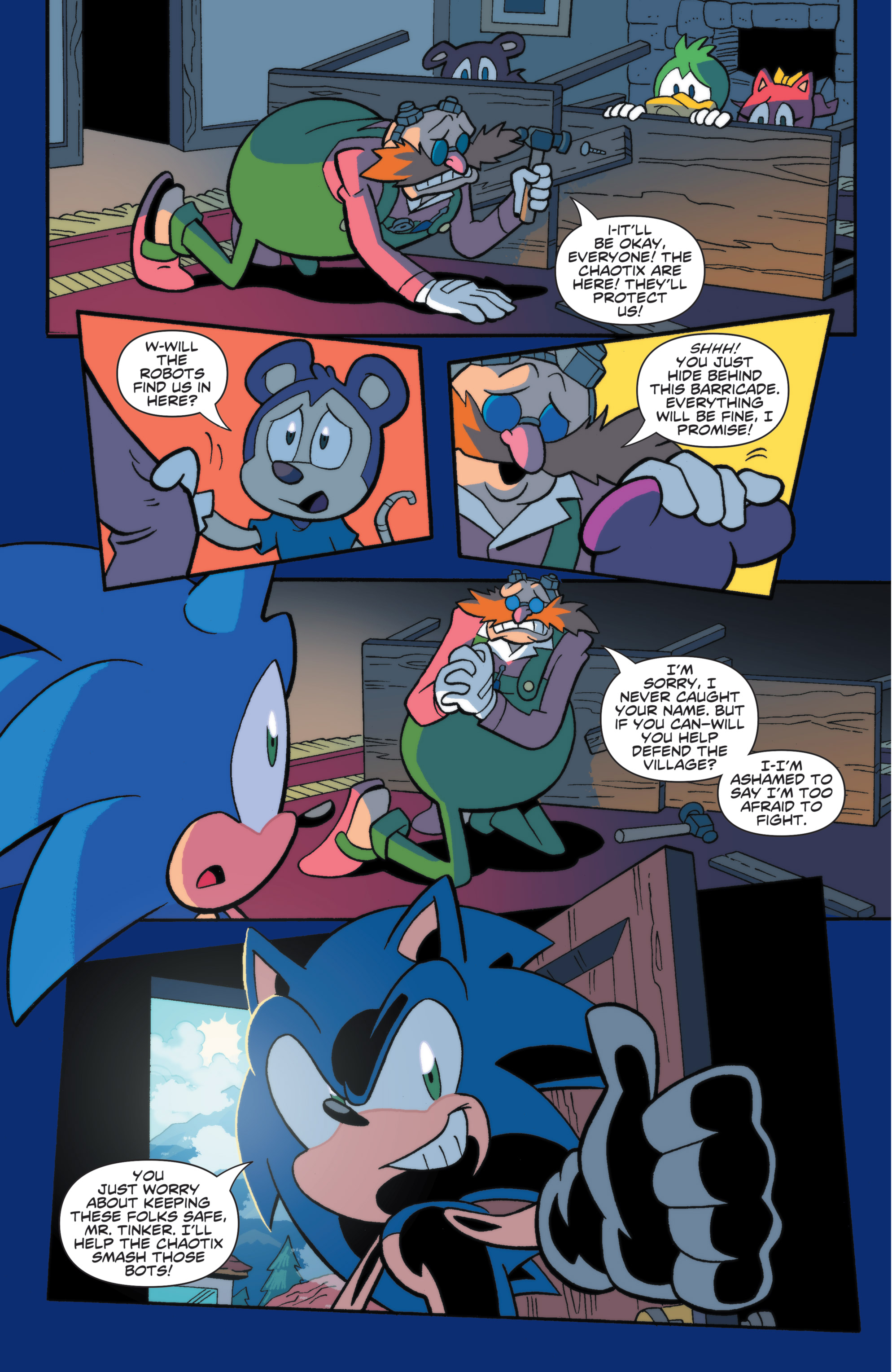 I wish that when sonic realizes that Mr. tinker is good, he said “I’m sonic. sonic the hedgehog.” and the end of the issue: “insert I am all of me playing”
