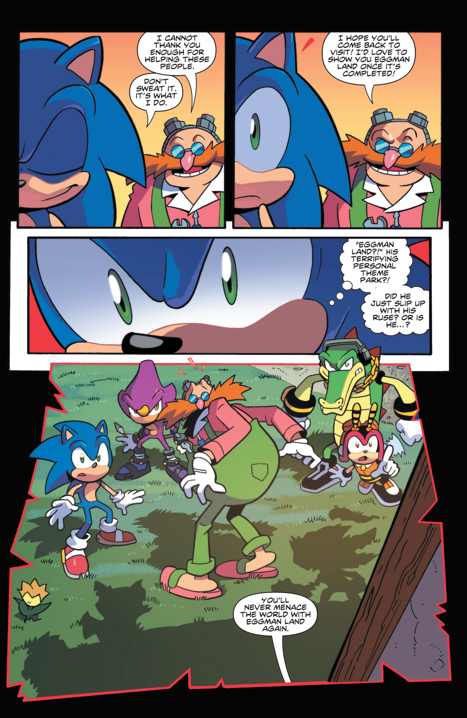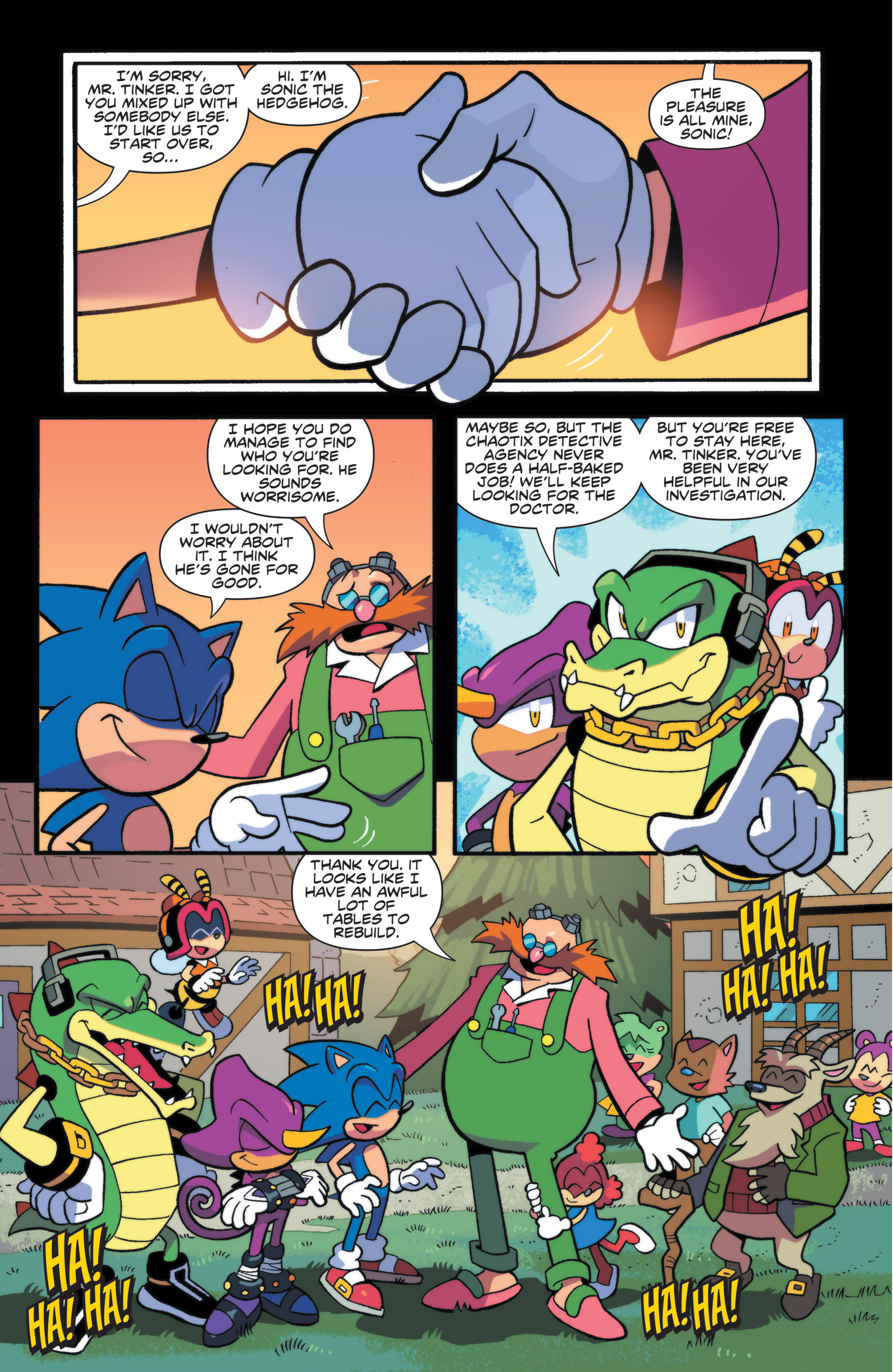 It must be great for Sonic. I mean, he’s fought Egghead for so long, to have peace with him must feel good. It will be really interesting if Mr. Tinker stays, and he and Sonic become friends….
