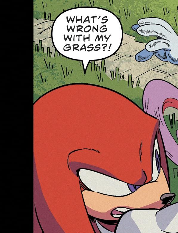 Knuckles needs to mow his lawn more often even sonic doesn’t want to run on it