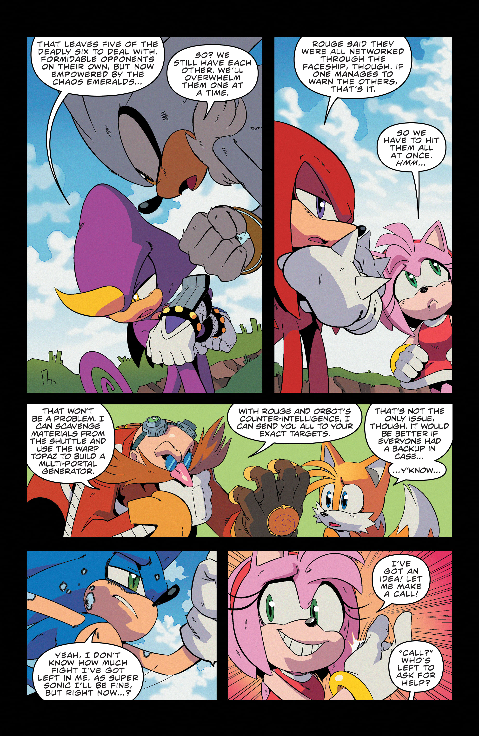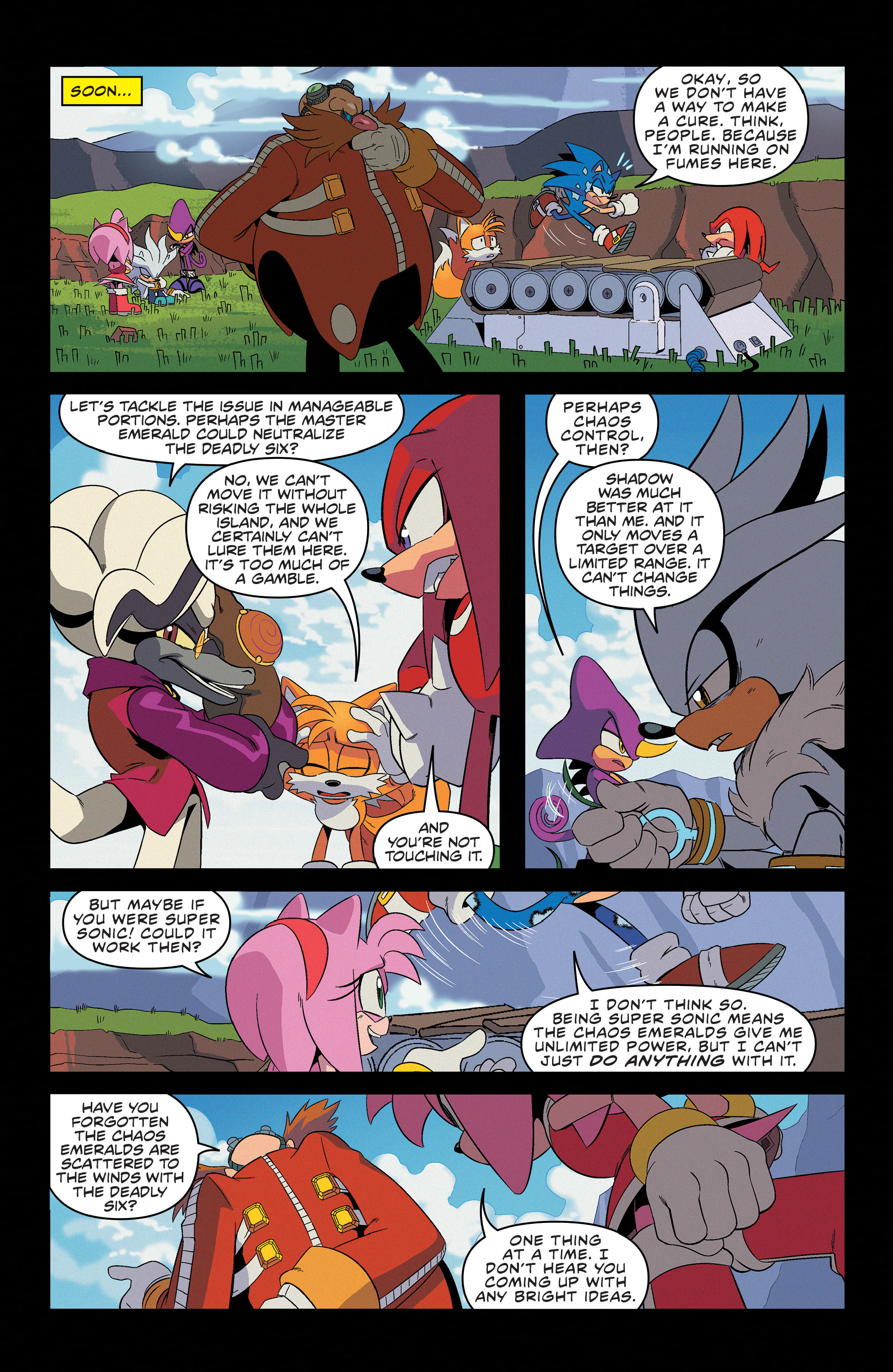 Also, have you forgotten the Chaos Emeralds are scattered to the winds with the Deadly Six?