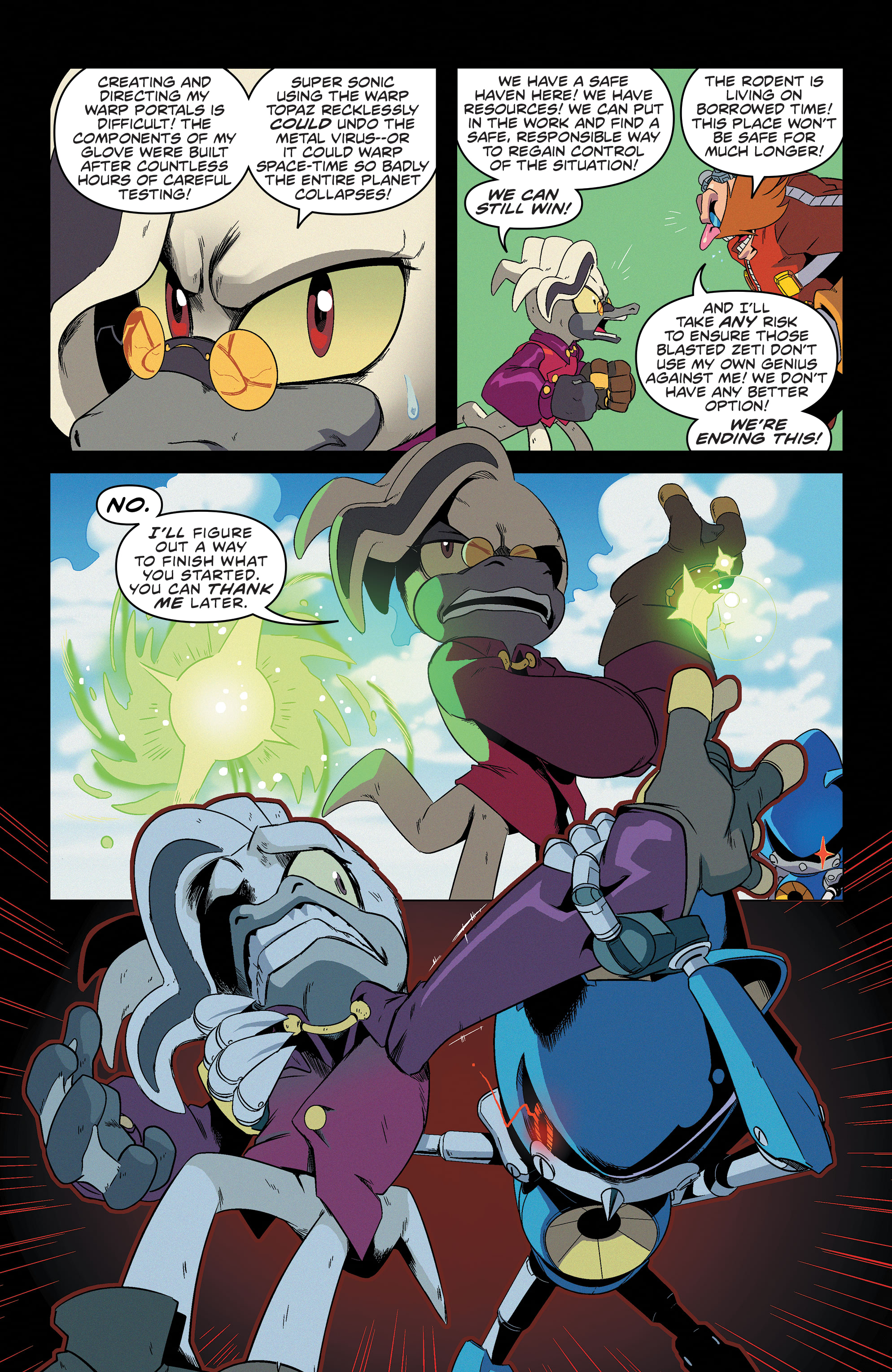 First of all, this is not a critique on these comics as a whole. I really like these comics actually. Mostly everyone is characterized great, especially Metal Sonic and Gemerl. The new characters are pretty good too. But that’s why my fucking frustration with Sonic in these is so massive.