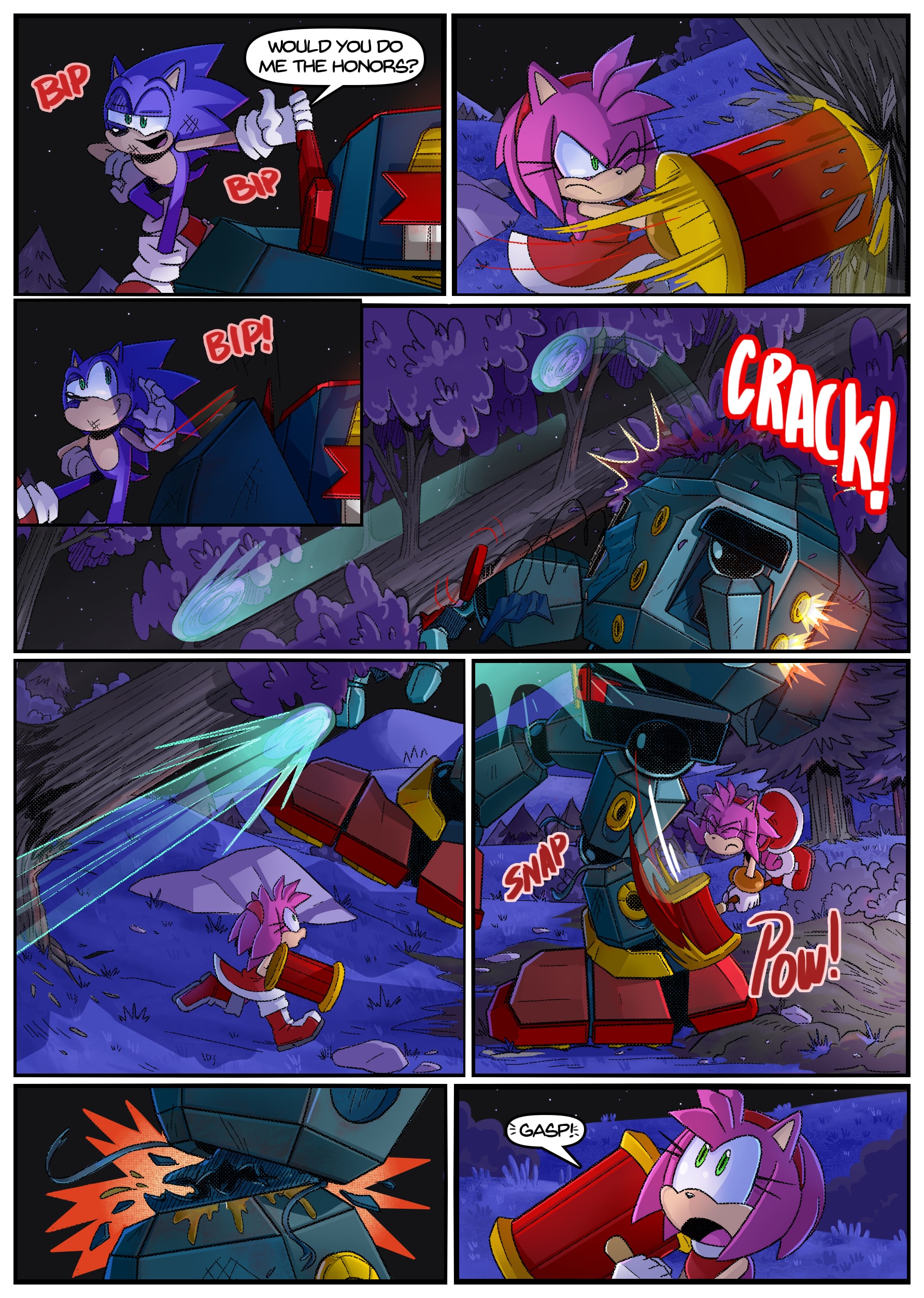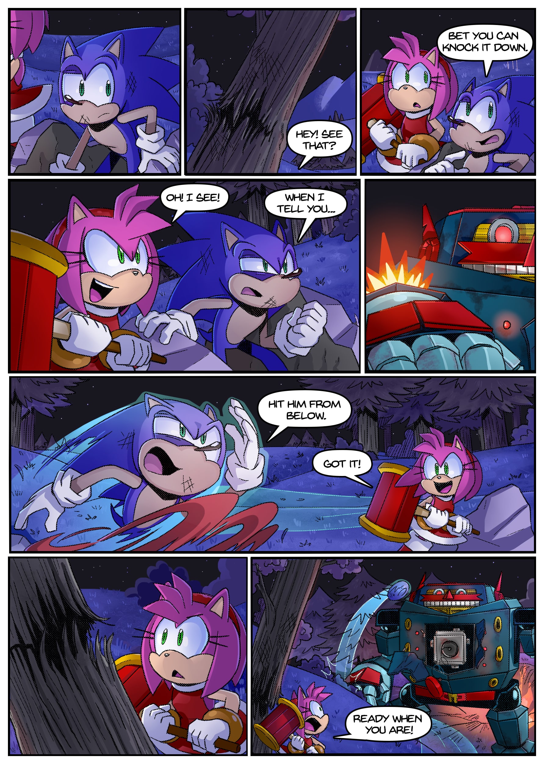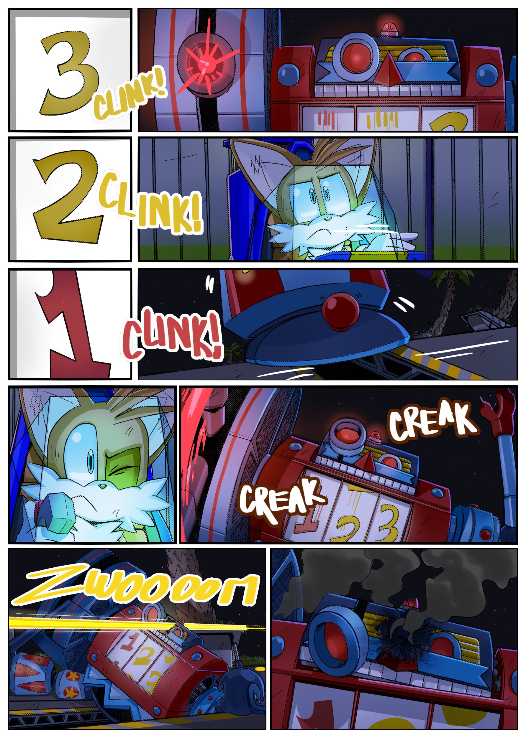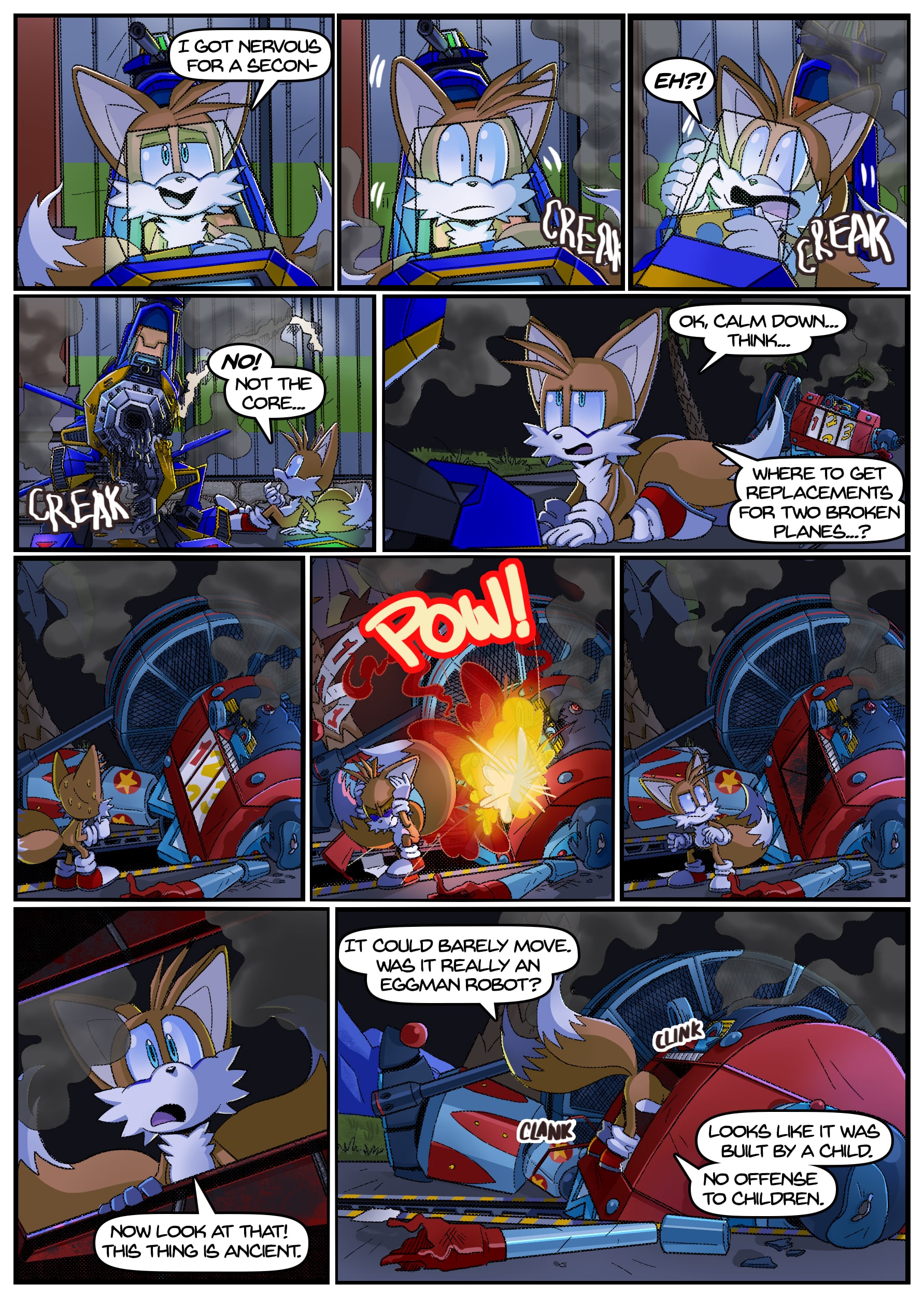 I feel like there was some miscommunication when putting this up because this doesn’t seem to be an origin story for anything, the characters not only know each other already but have been doing this for years. And Either some panels from chapter 2 found their way to chapter 1 or the unclear setting is distracting me from whatever explanation there is for why Rouge is in Tails’ lab in chapter 1 but he acts surprised when she shows up there in chapter 2.