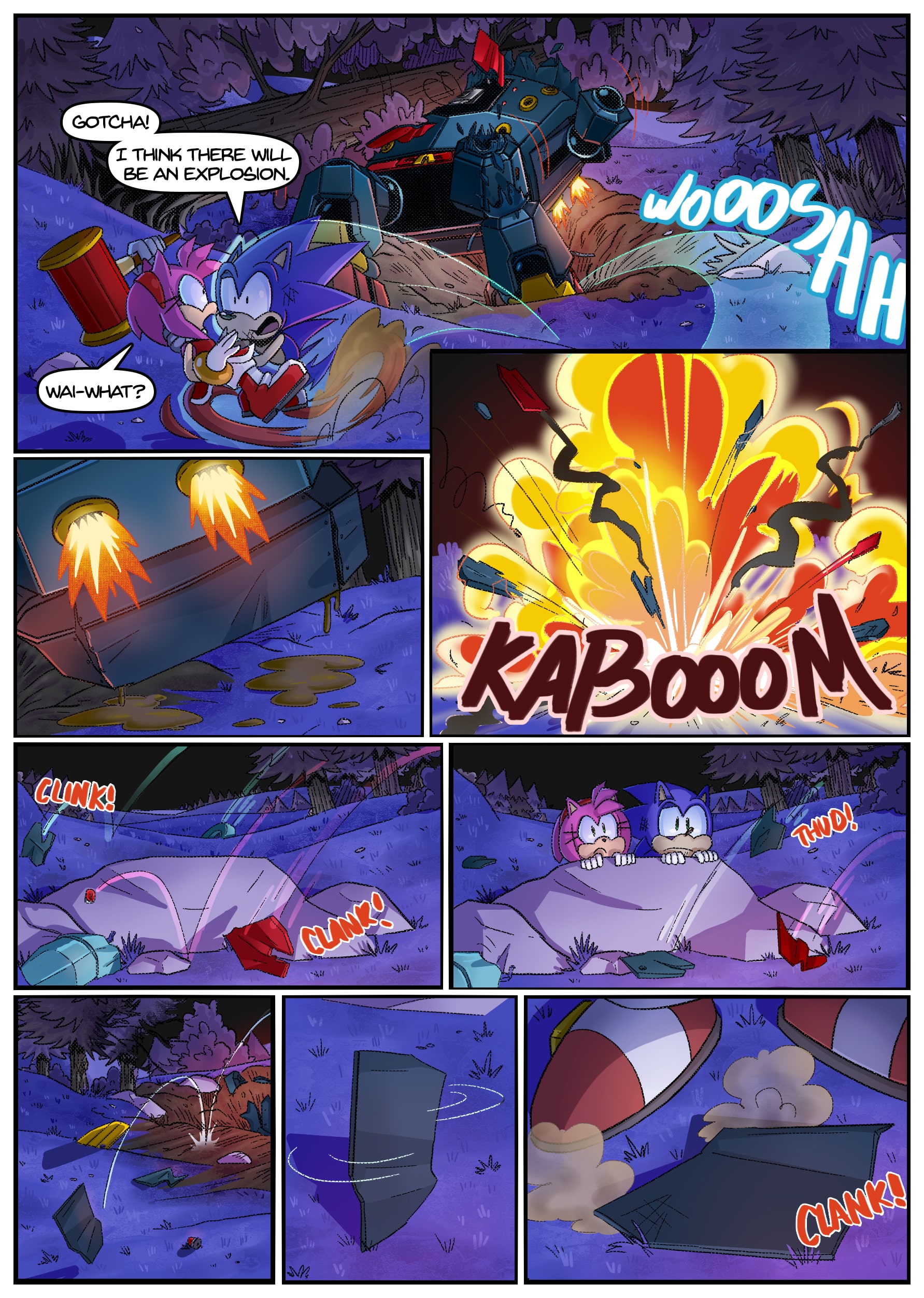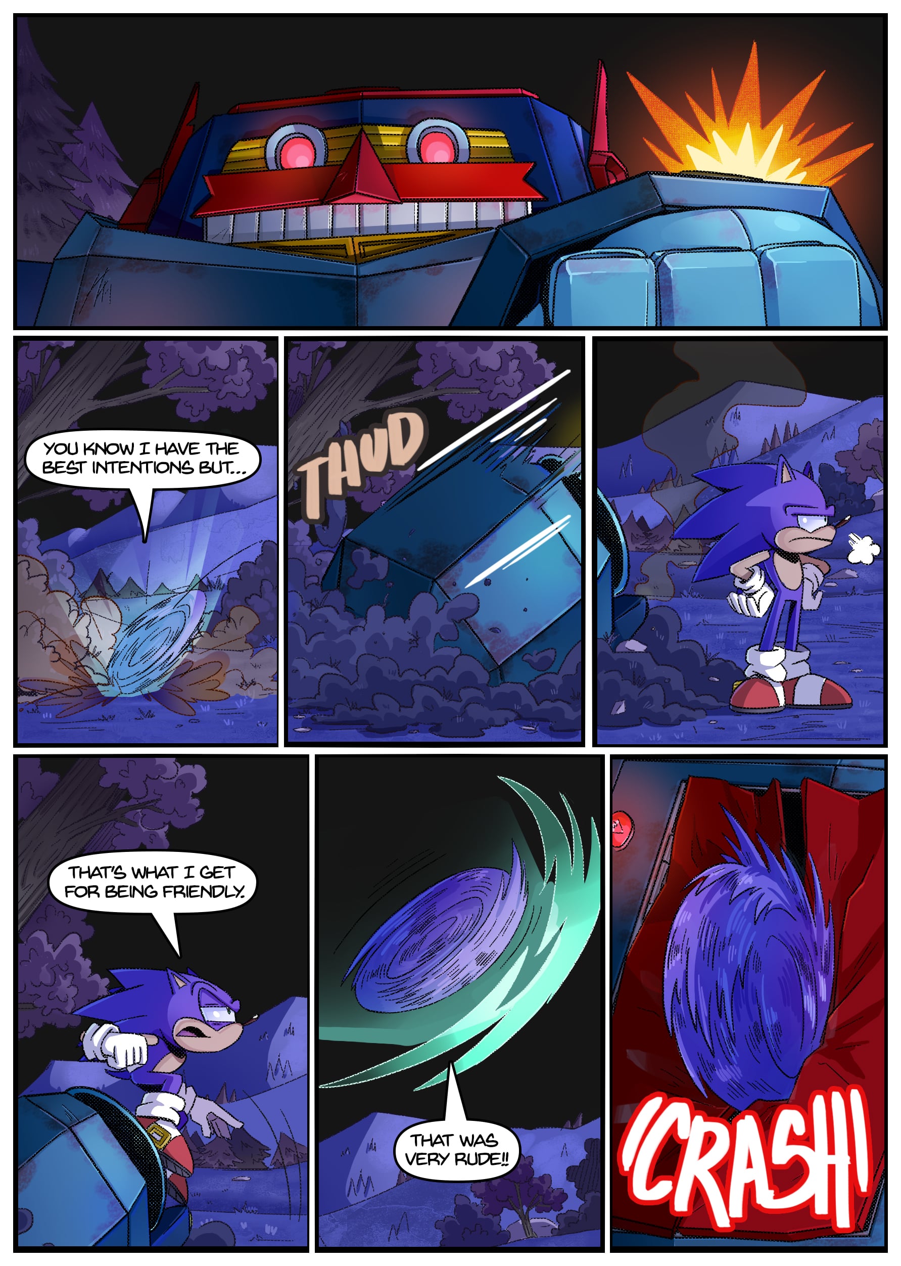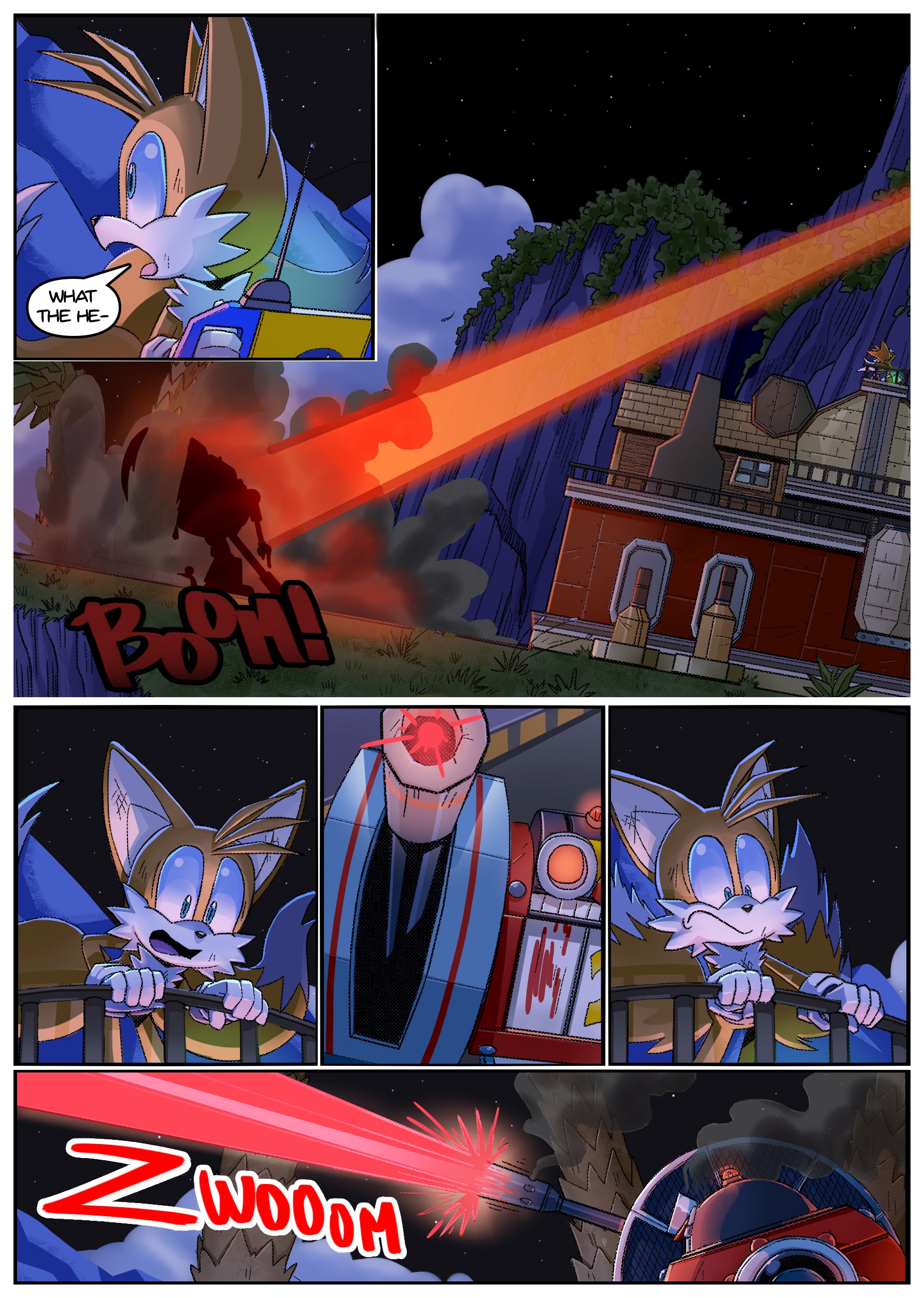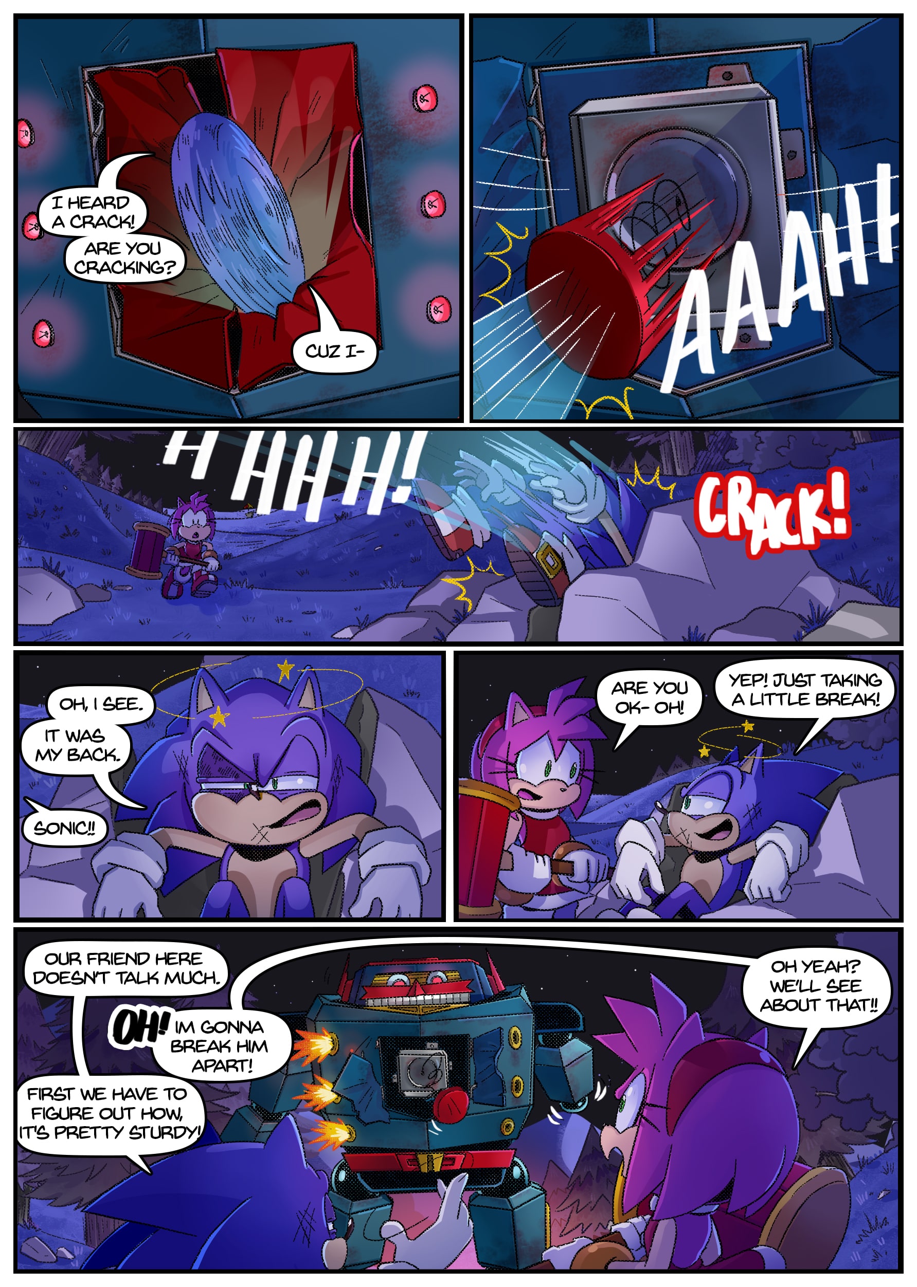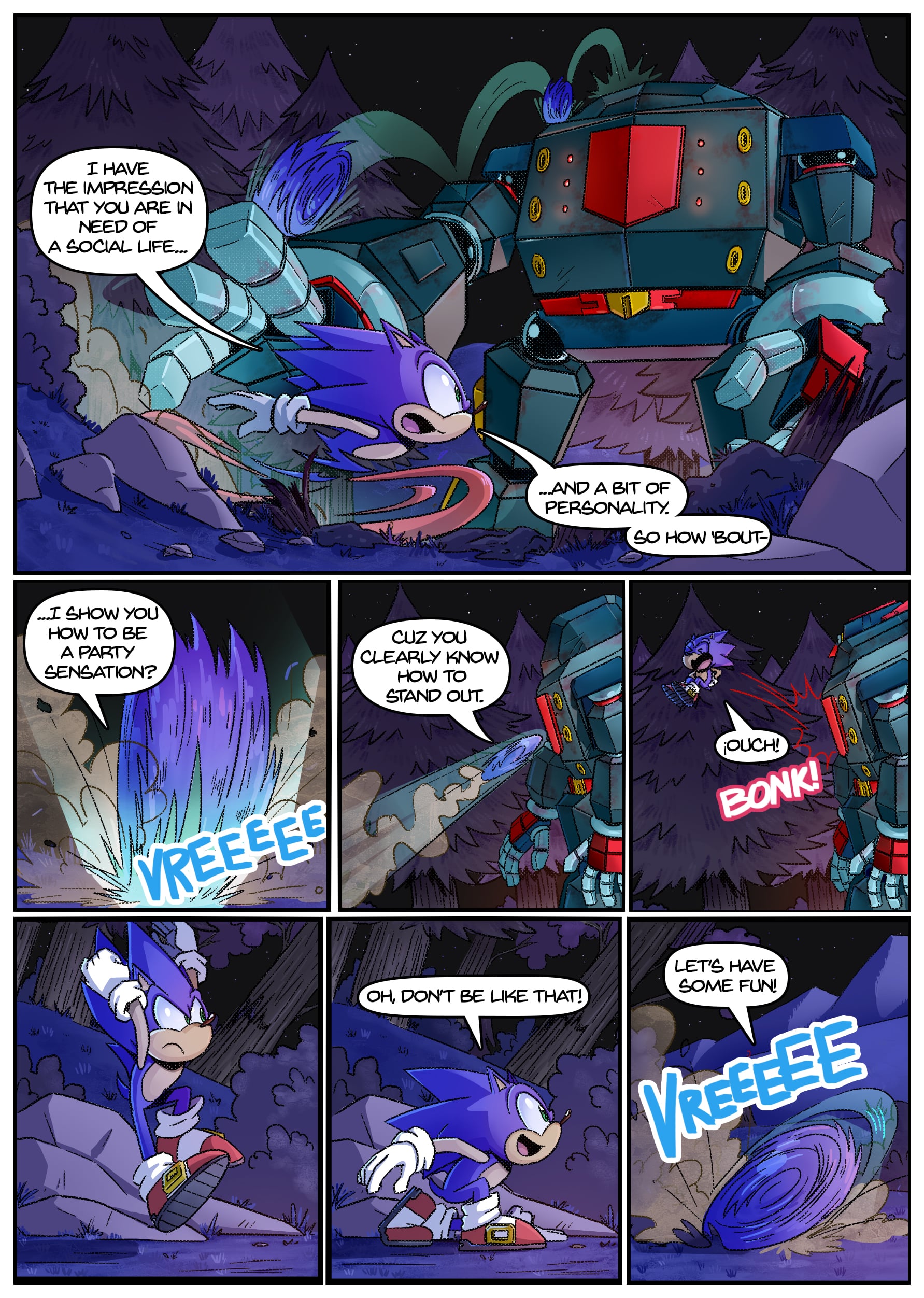 I feel like there was some miscommunication when putting this up because this doesn’t seem to be an origin story for anything, the characters not only know each other already but have been doing this for years. And Either some panels from chapter 2 found their way to chapter 1 or the unclear setting is distracting me from whatever explanation there is for why Rouge is in Tails’ lab in chapter 1 but he acts surprised when she shows up there in chapter 2.