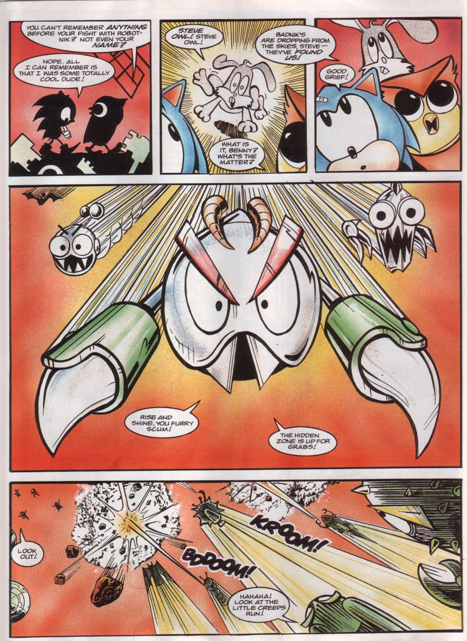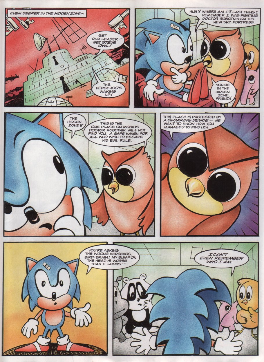 I like how Sonic in the panel before he remembers who he is looks weird and then when he realizes who he is bro just hits the Sonic 1 pose and looks exactly like how he does in the cover art of Sonic 1 but with more of a frown.
