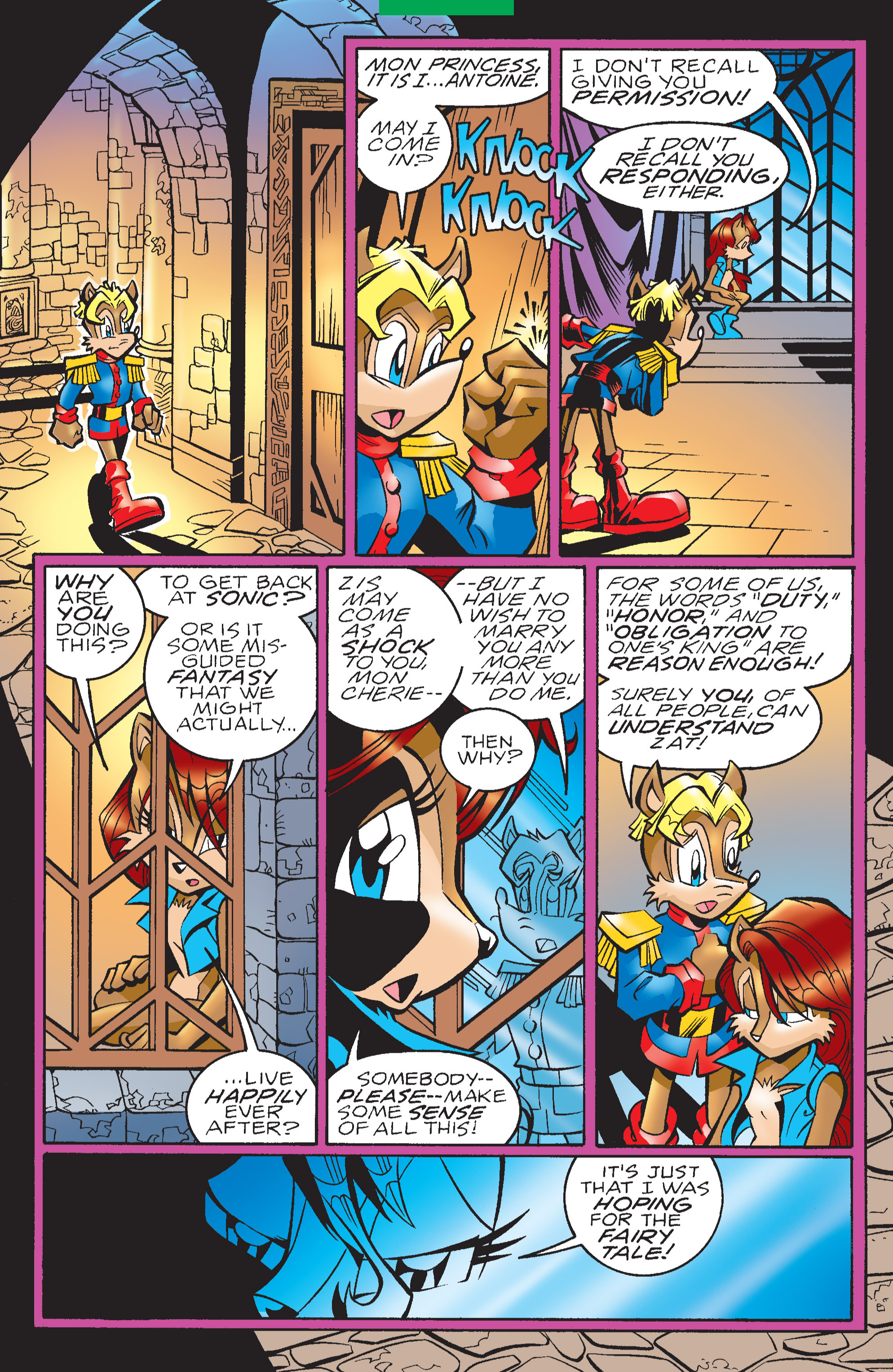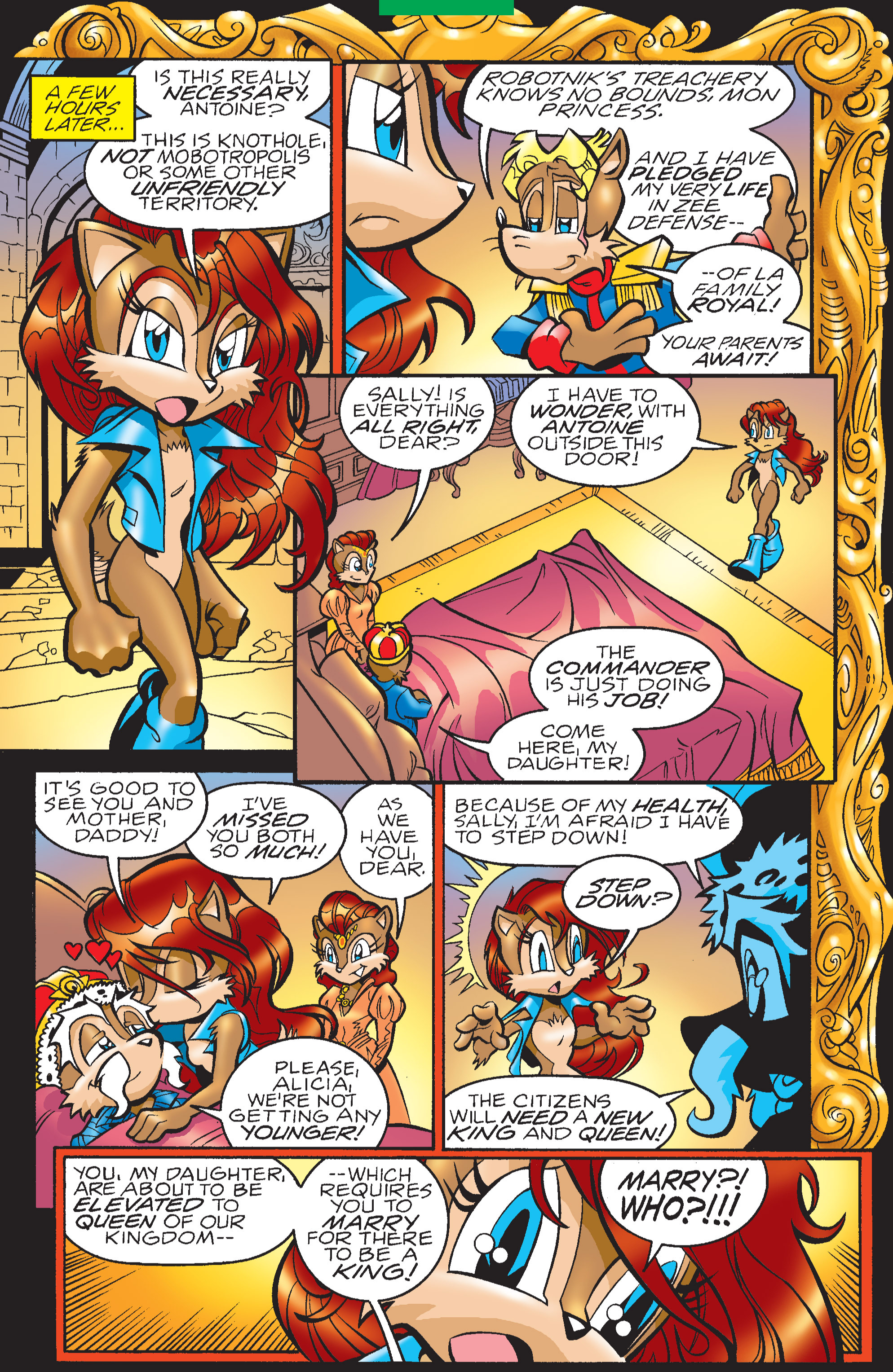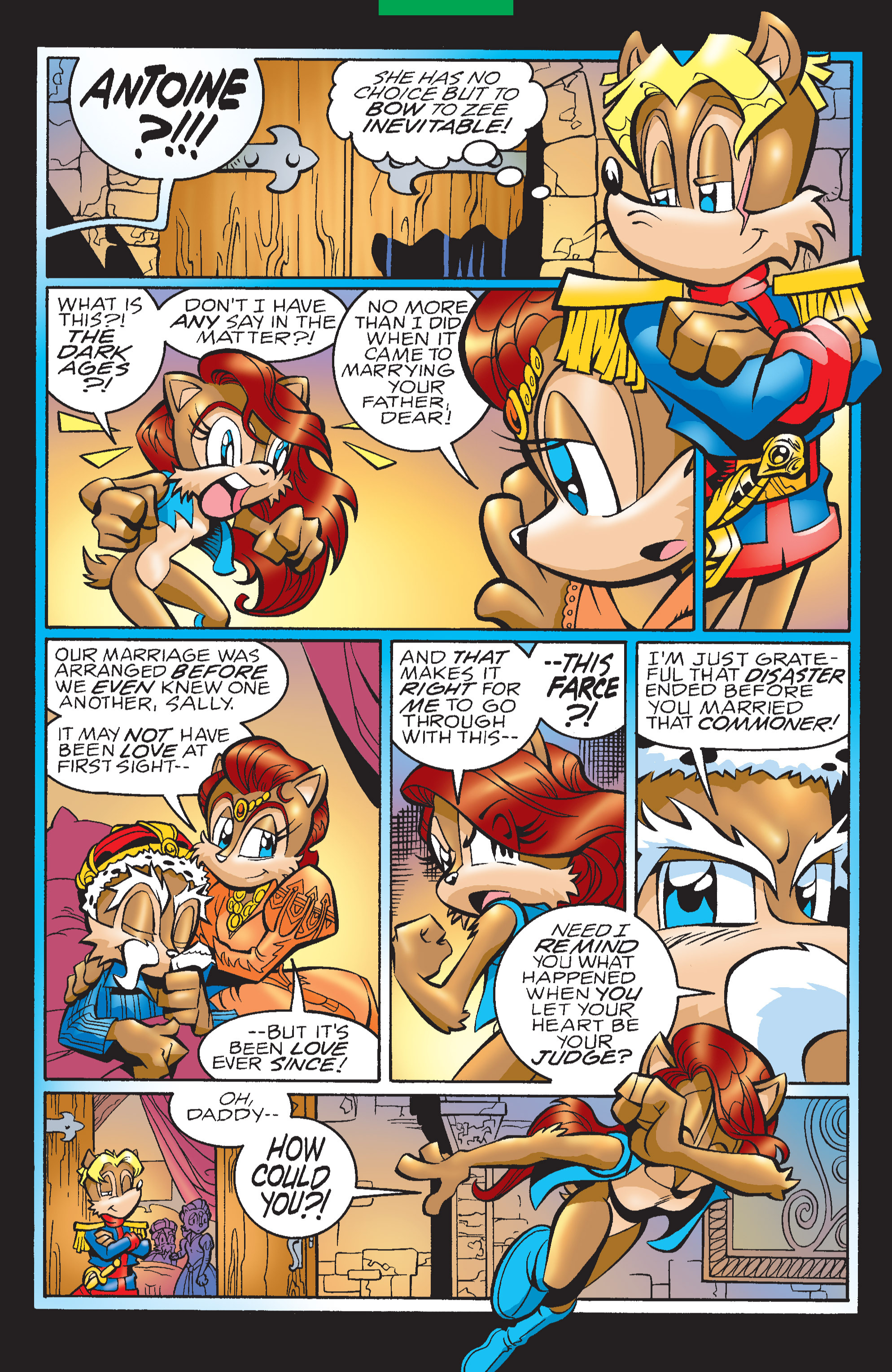 The fact that sally getting betrothed to Antoine against both of their better judgement by the king happened not once but twice is insane. And the switch up on sonic from max needs studied