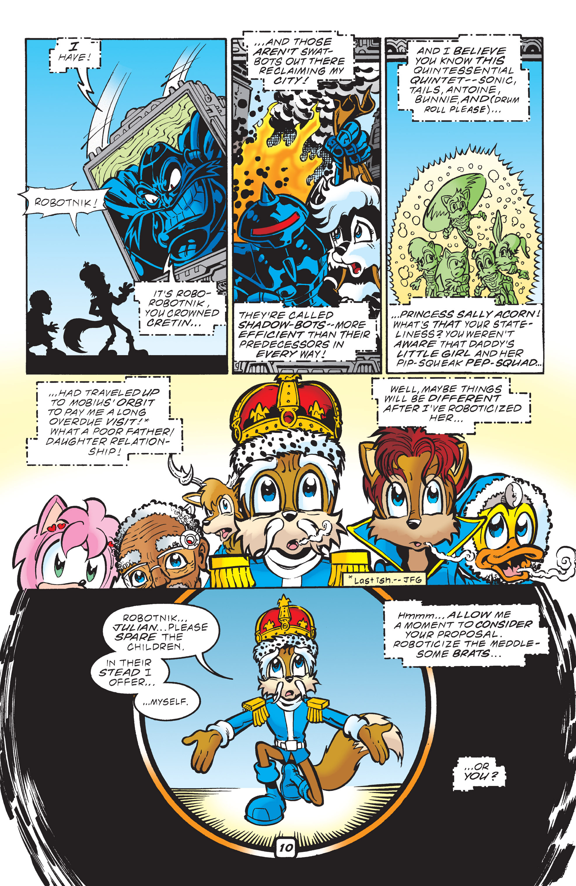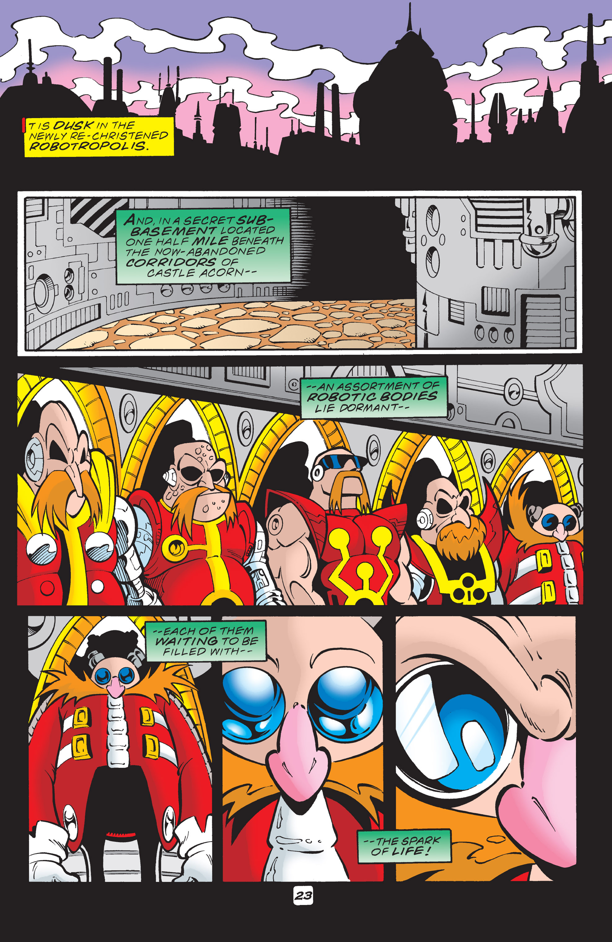 Forget the confusing history section on roborobotnik – basically, an egg man from a different universe robotized himself to win against his sonic, he defeated sonic and then he went to THIS mobius, wanting more power. Julian was already dead and so the robotized egghead created an artificial body of metal and chaos, and put himself in there and was renamed eggman
