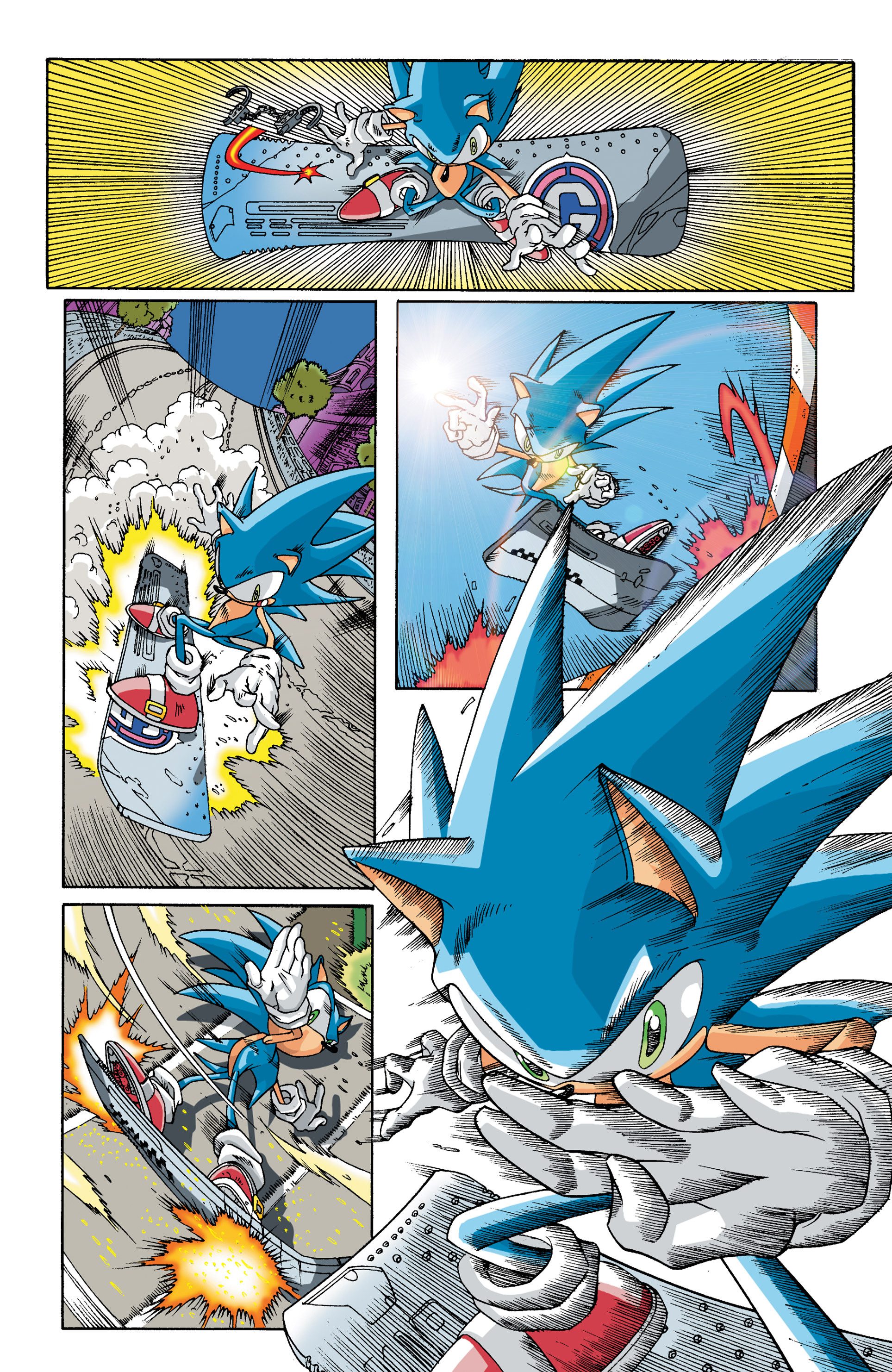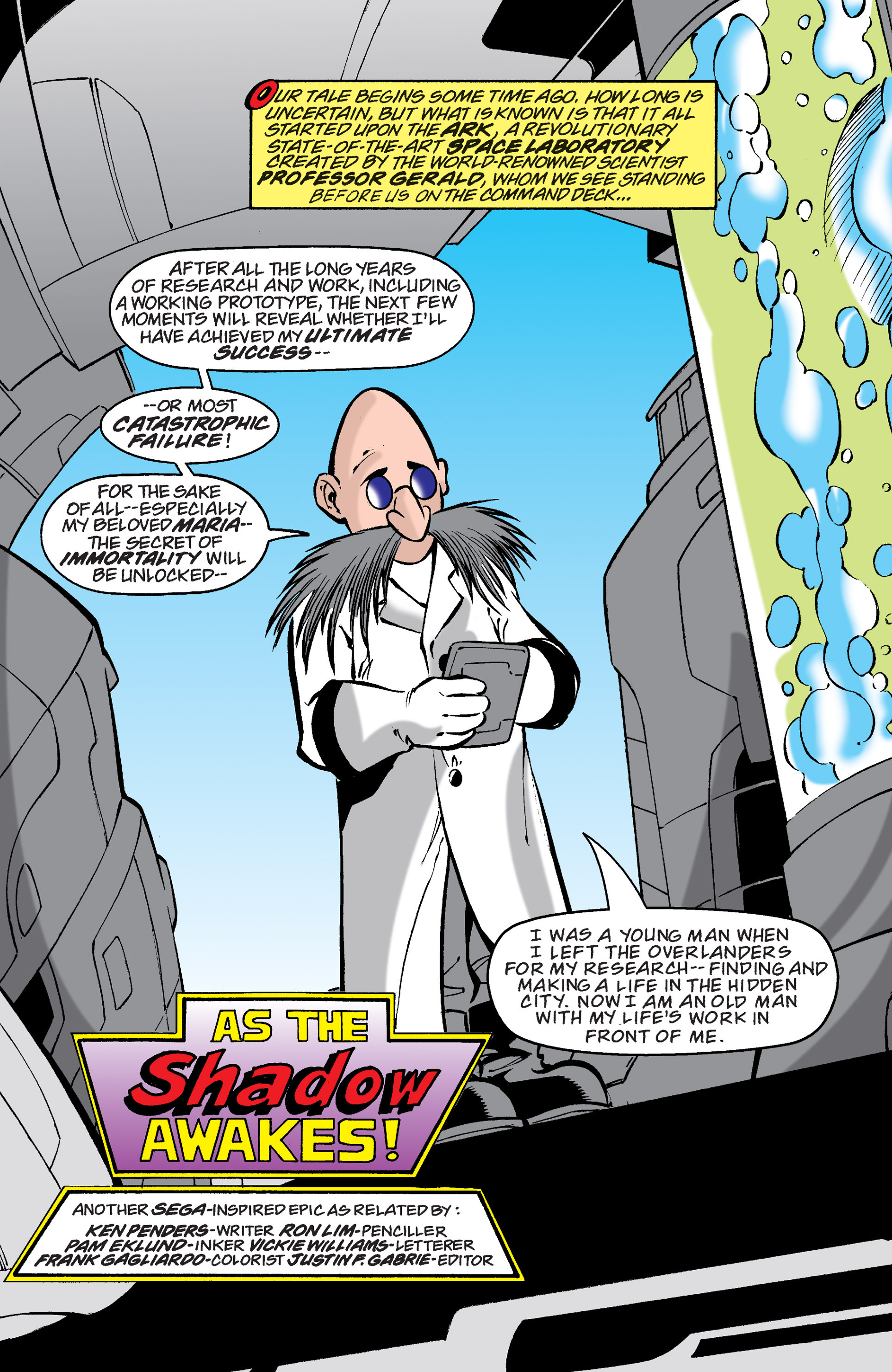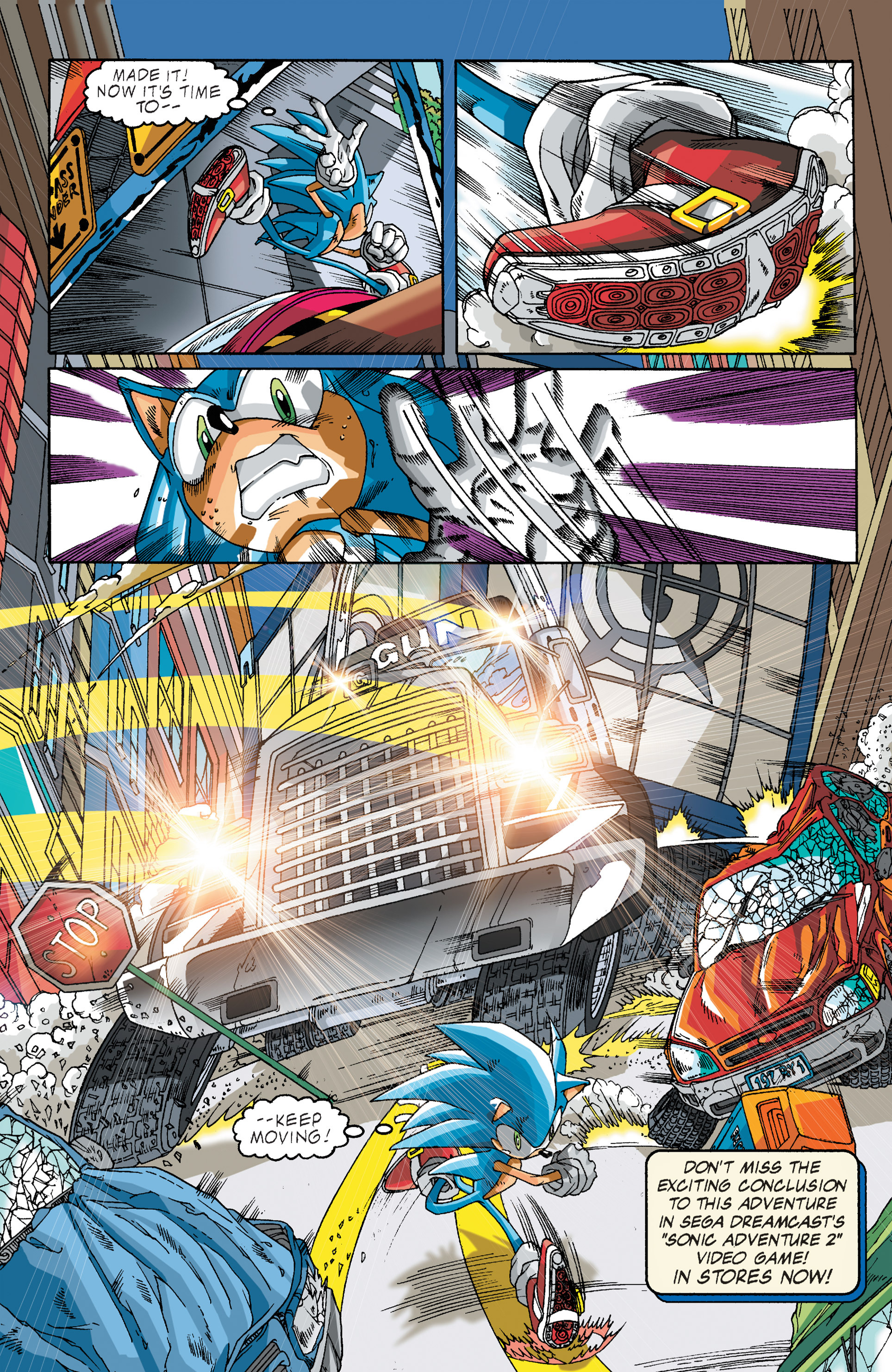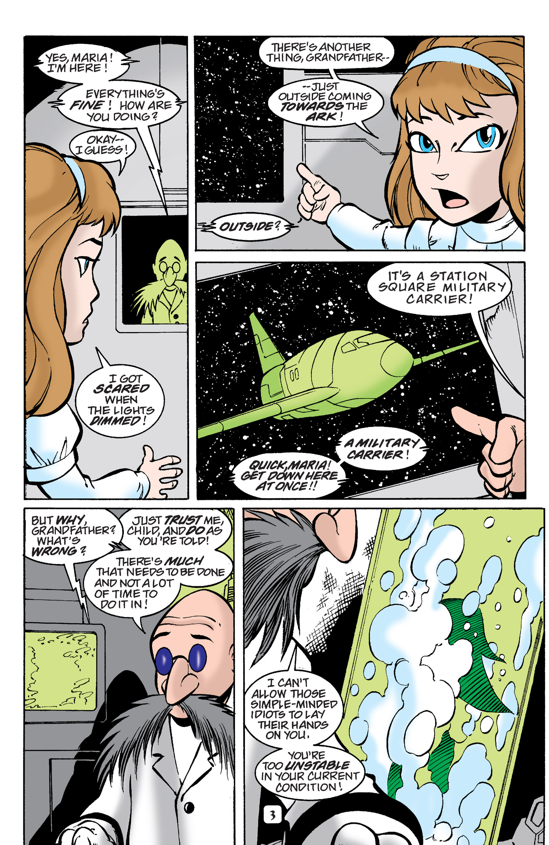 Haha! Sorry, Silver Sonic, but Shadow is way cooler than you! See, President, this is why you need colored newspapers! Awesome adaptation of the City Escape level! AND HERE COMES THE TRUCK! So, Hedgehog species are the universal constant. Dur hur, Gerald’s a pinhead. Lol Maria didn’t have a chance to bond with Shadow before she died. ^^;