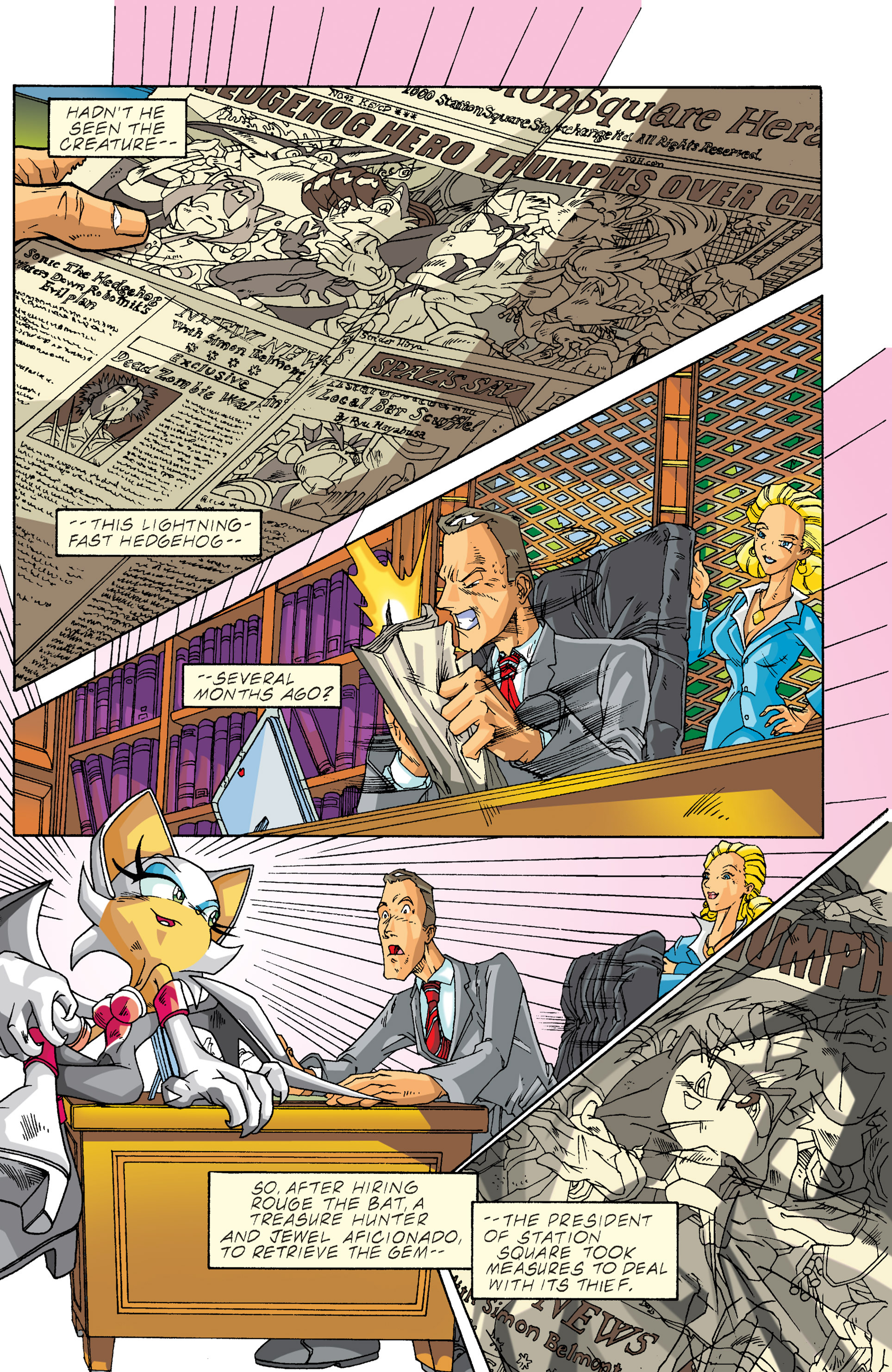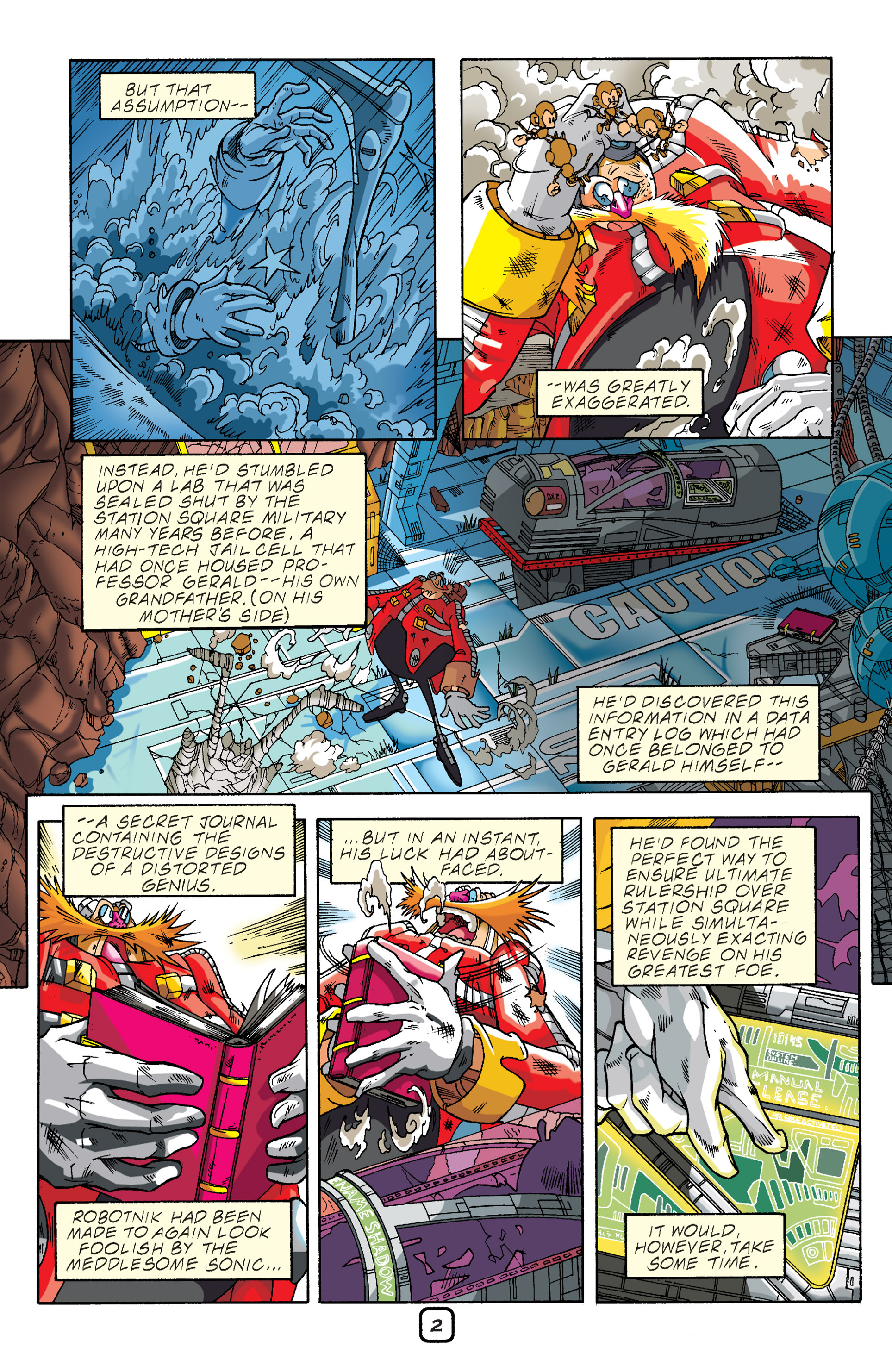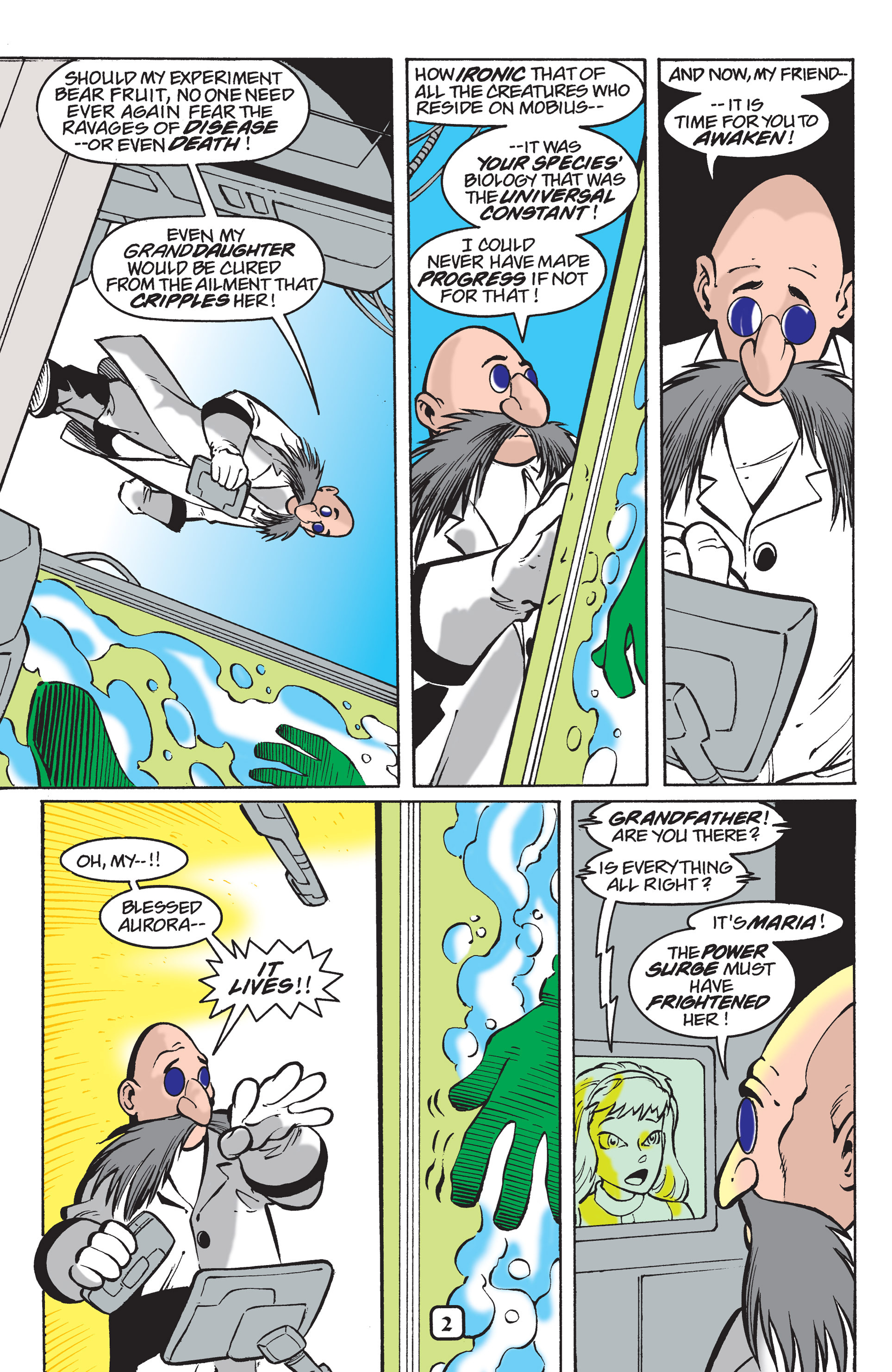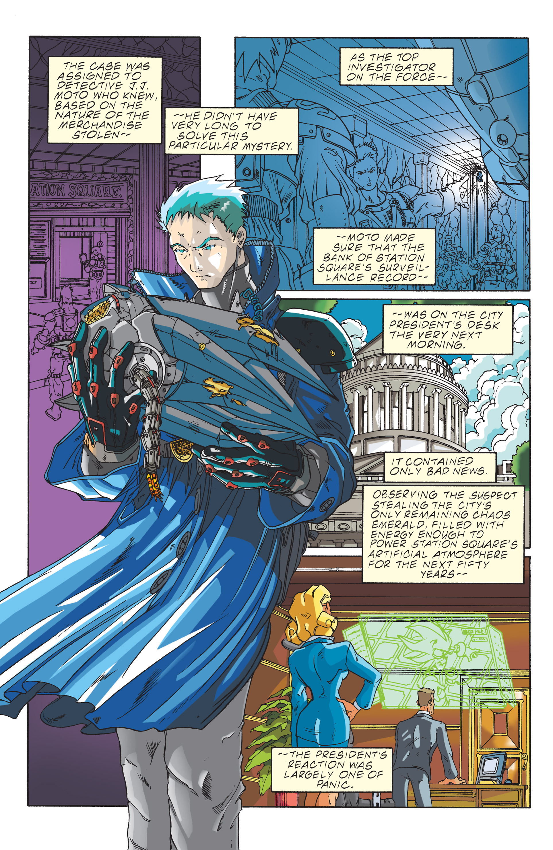 Haha! Sorry, Silver Sonic, but Shadow is way cooler than you! See, President, this is why you need colored newspapers! Awesome adaptation of the City Escape level! AND HERE COMES THE TRUCK! So, Hedgehog species are the universal constant. Dur hur, Gerald’s a pinhead. Lol Maria didn’t have a chance to bond with Shadow before she died. ^^;