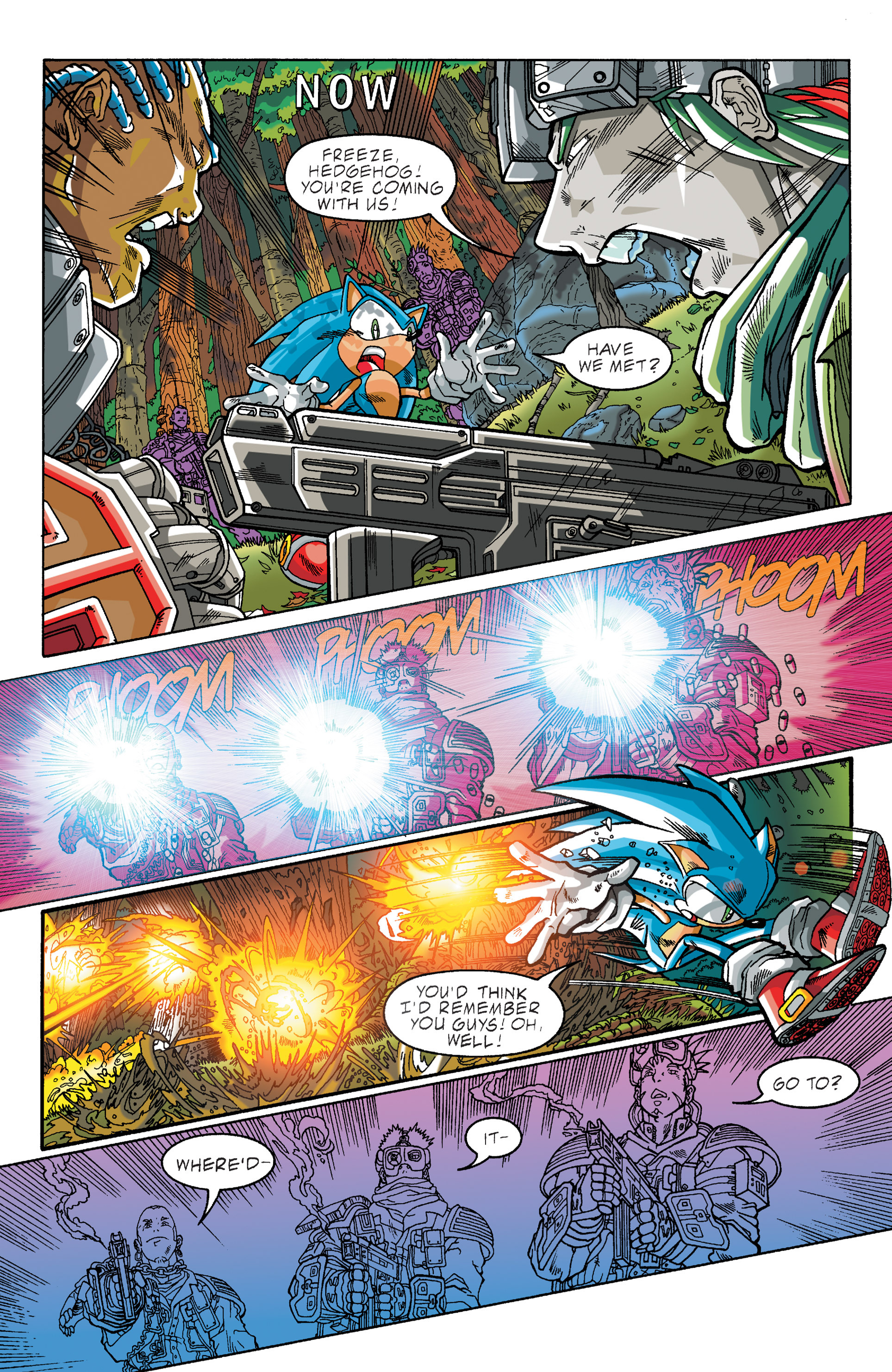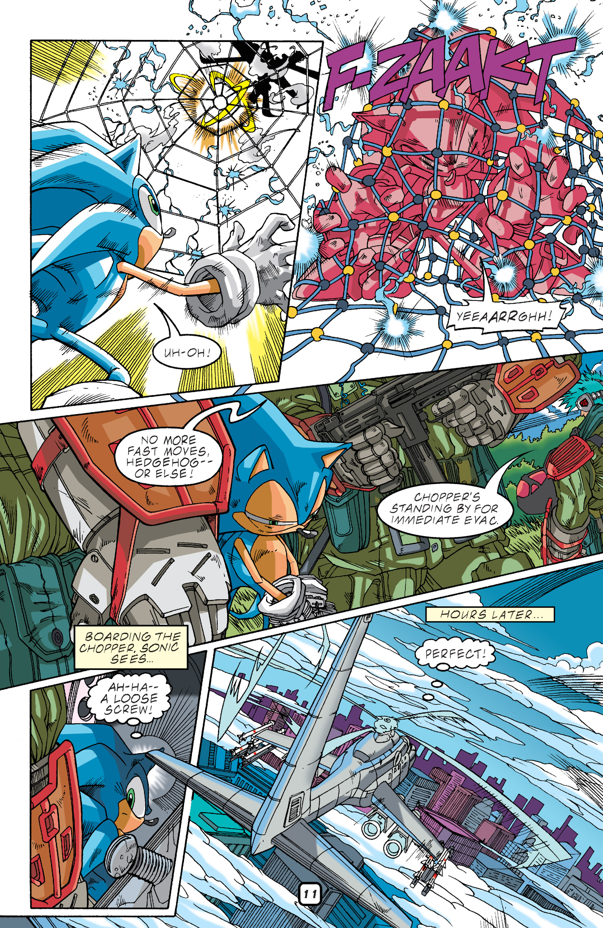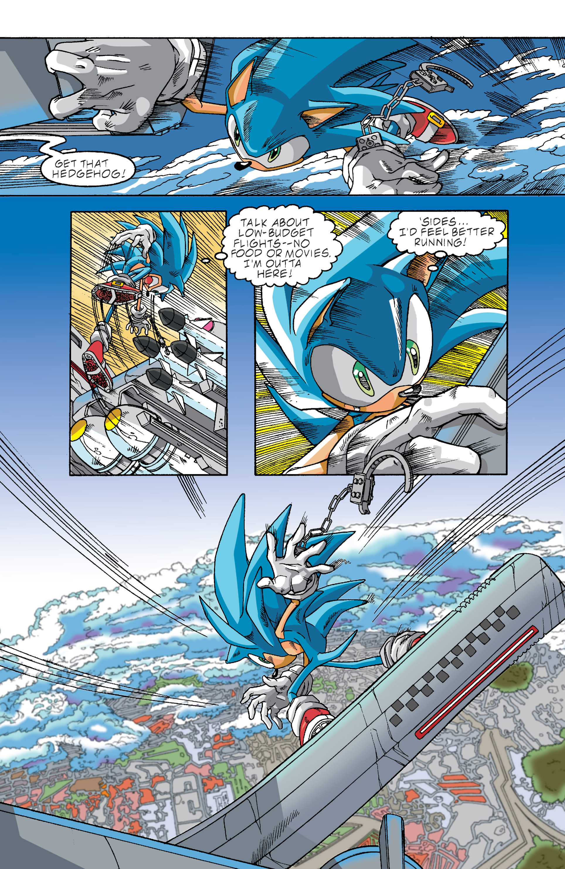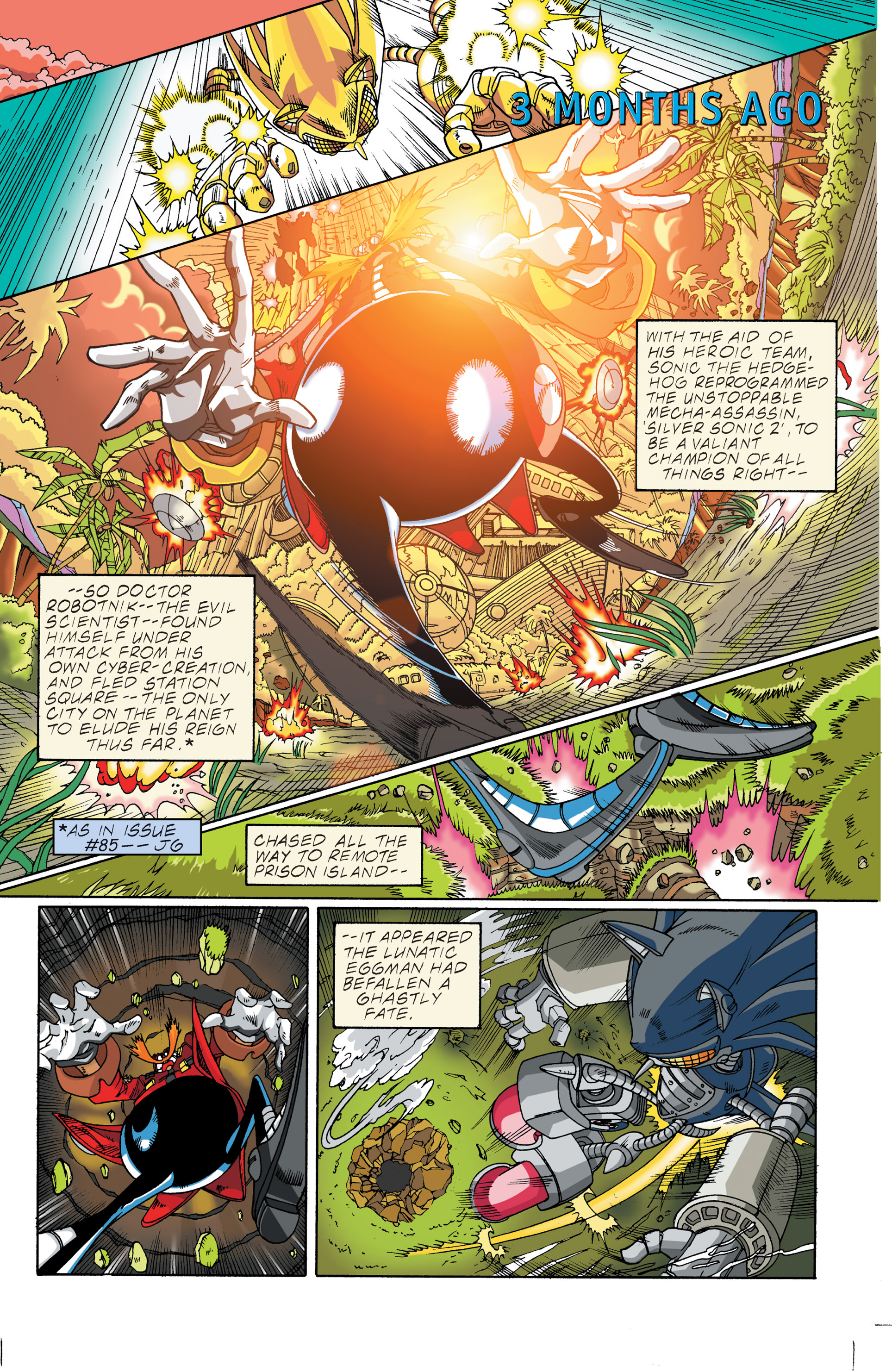 Haha! Sorry, Silver Sonic, but Shadow is way cooler than you! See, President, this is why you need colored newspapers! Awesome adaptation of the City Escape level! AND HERE COMES THE TRUCK! So, Hedgehog species are the universal constant. Dur hur, Gerald’s a pinhead. Lol Maria didn’t have a chance to bond with Shadow before she died. ^^;