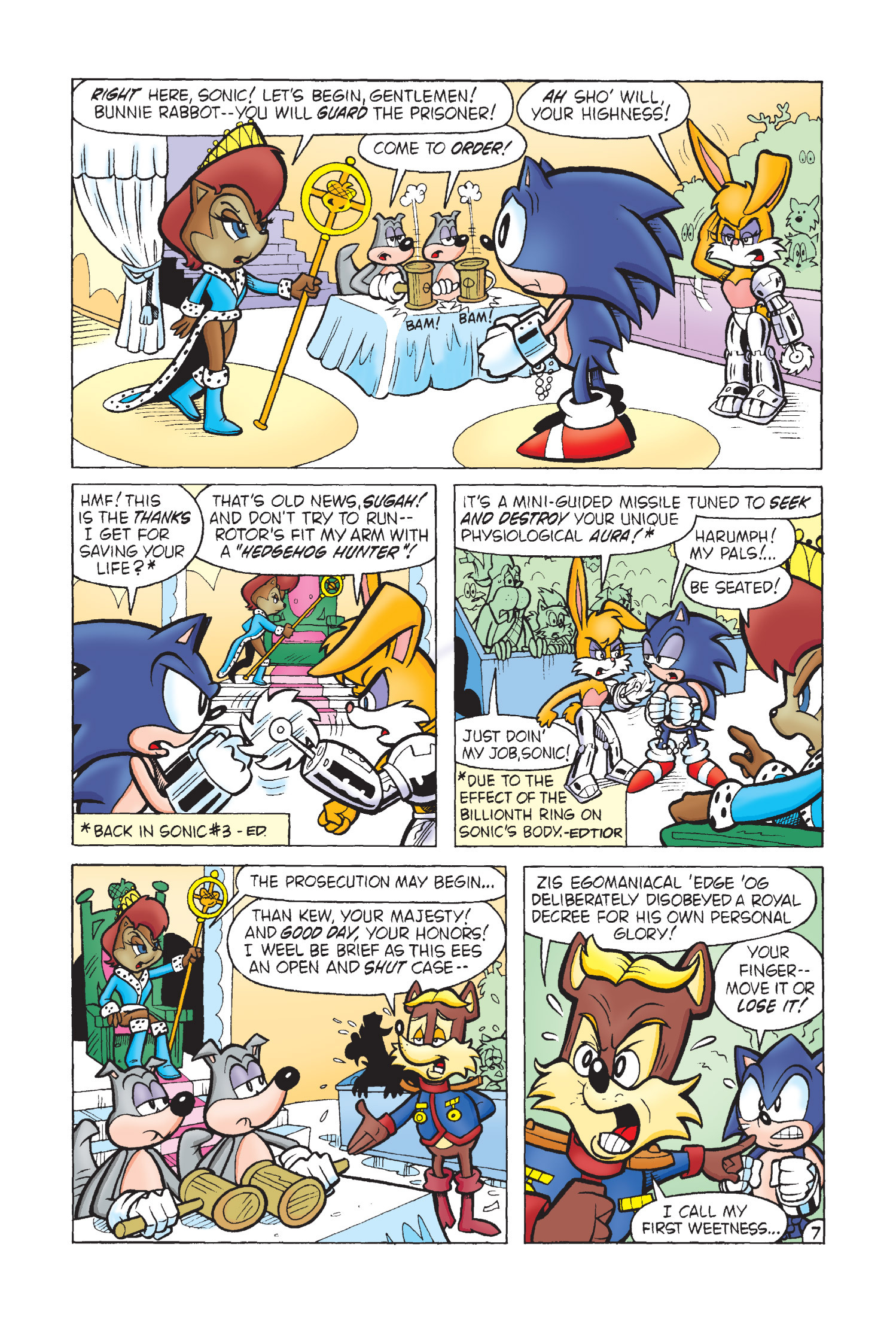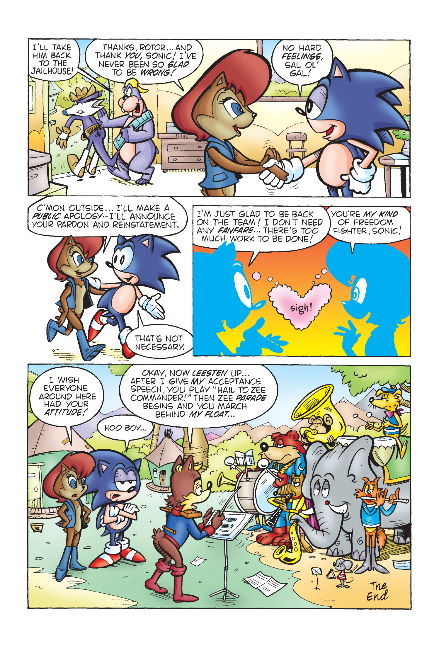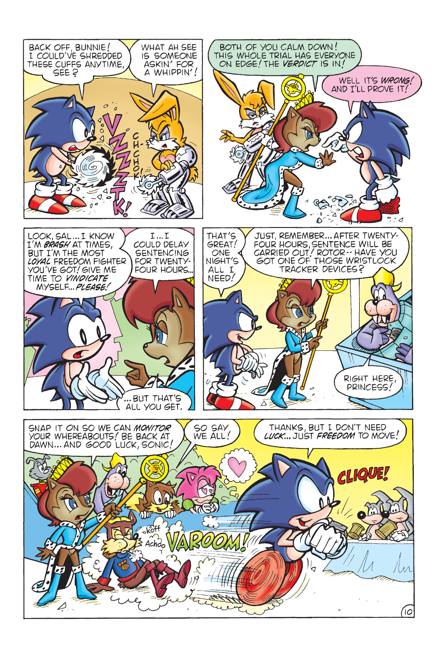 Funny how Amy is protesting for Sonic’s freedom here but fast forward to Sonic Adventure 2 she takes action and completely bails him out. (I know there is no correlation between the comics and games but who knows maybe the game gets inspiration from here.)