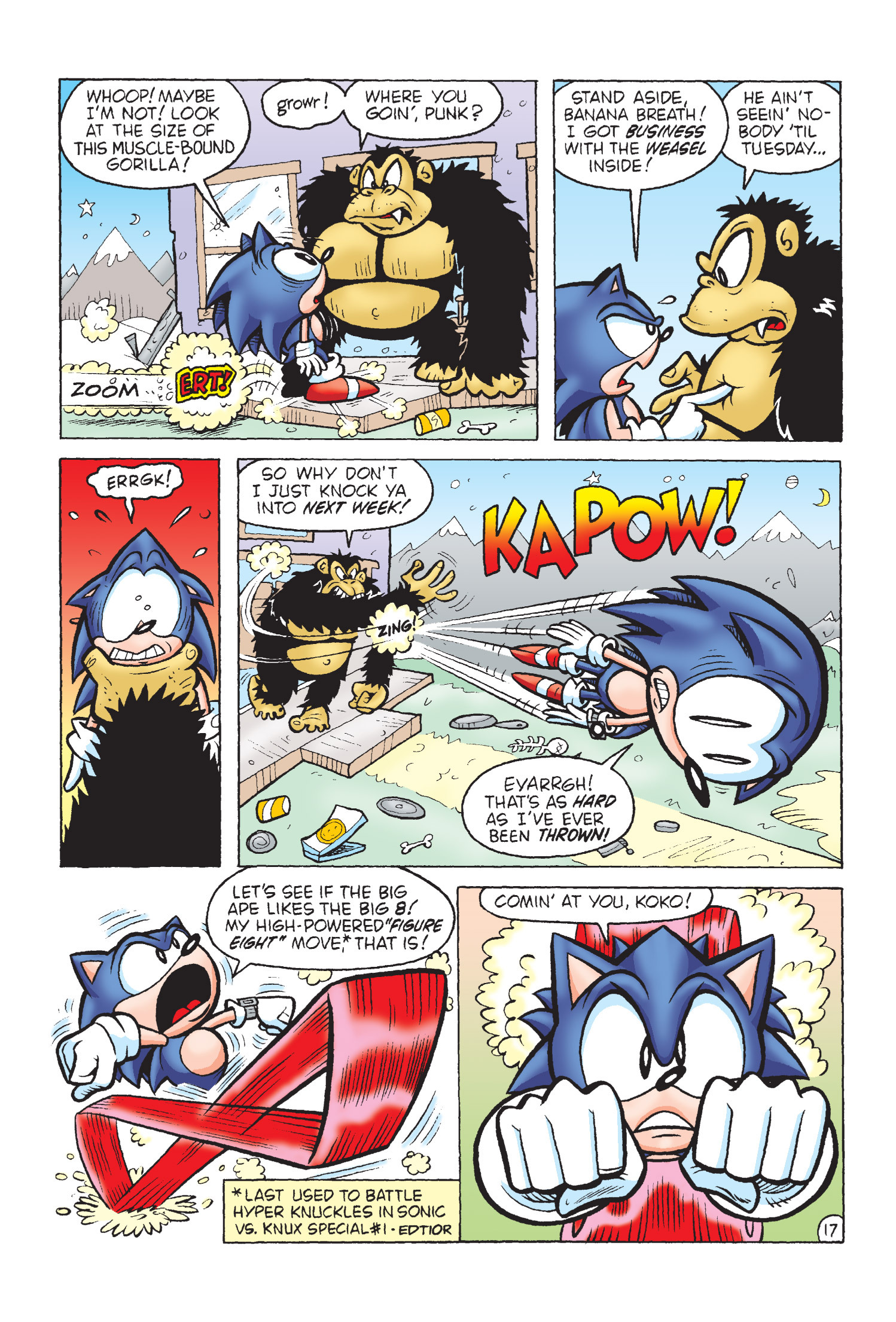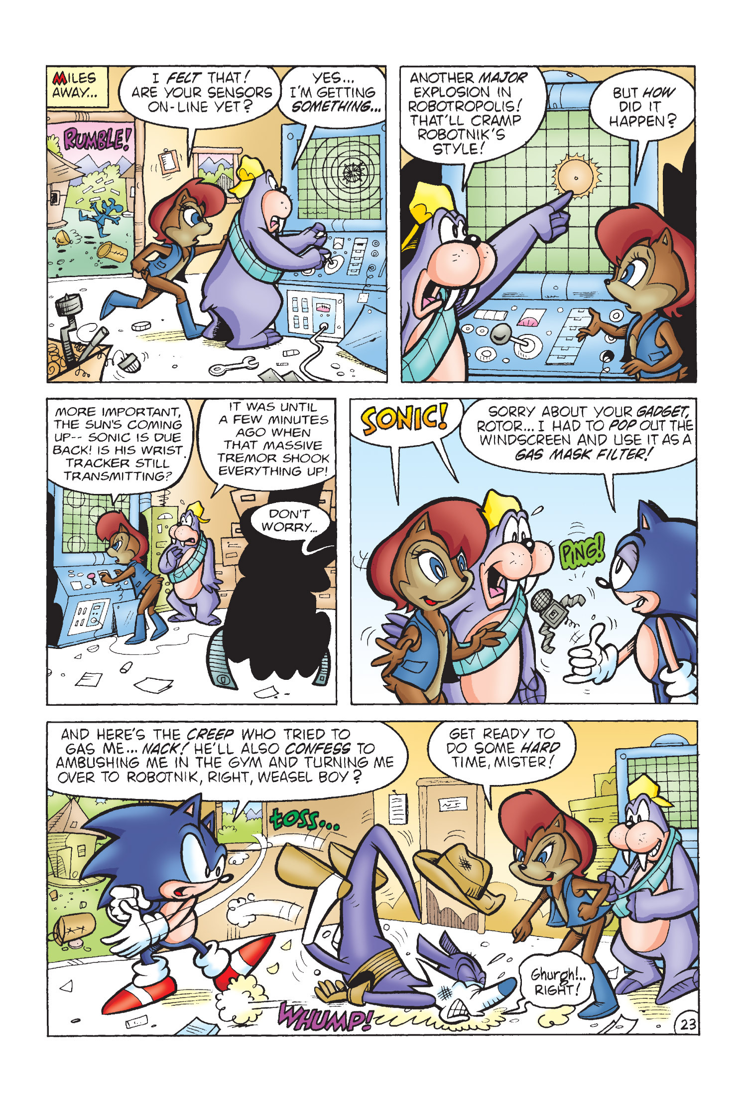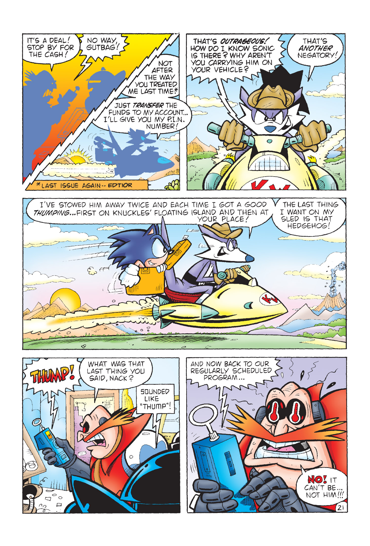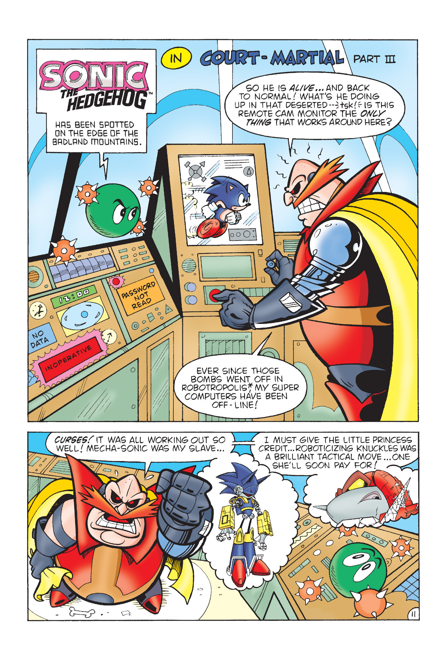 Funny how Amy is protesting for Sonic’s freedom here but fast forward to Sonic Adventure 2 she takes action and completely bails him out. (I know there is no correlation between the comics and games but who knows maybe the game gets inspiration from here.)