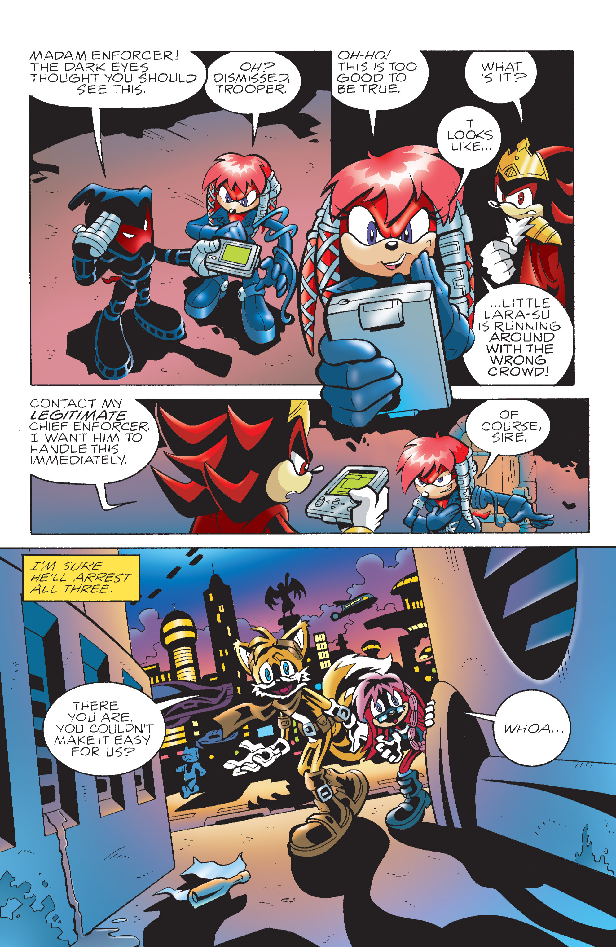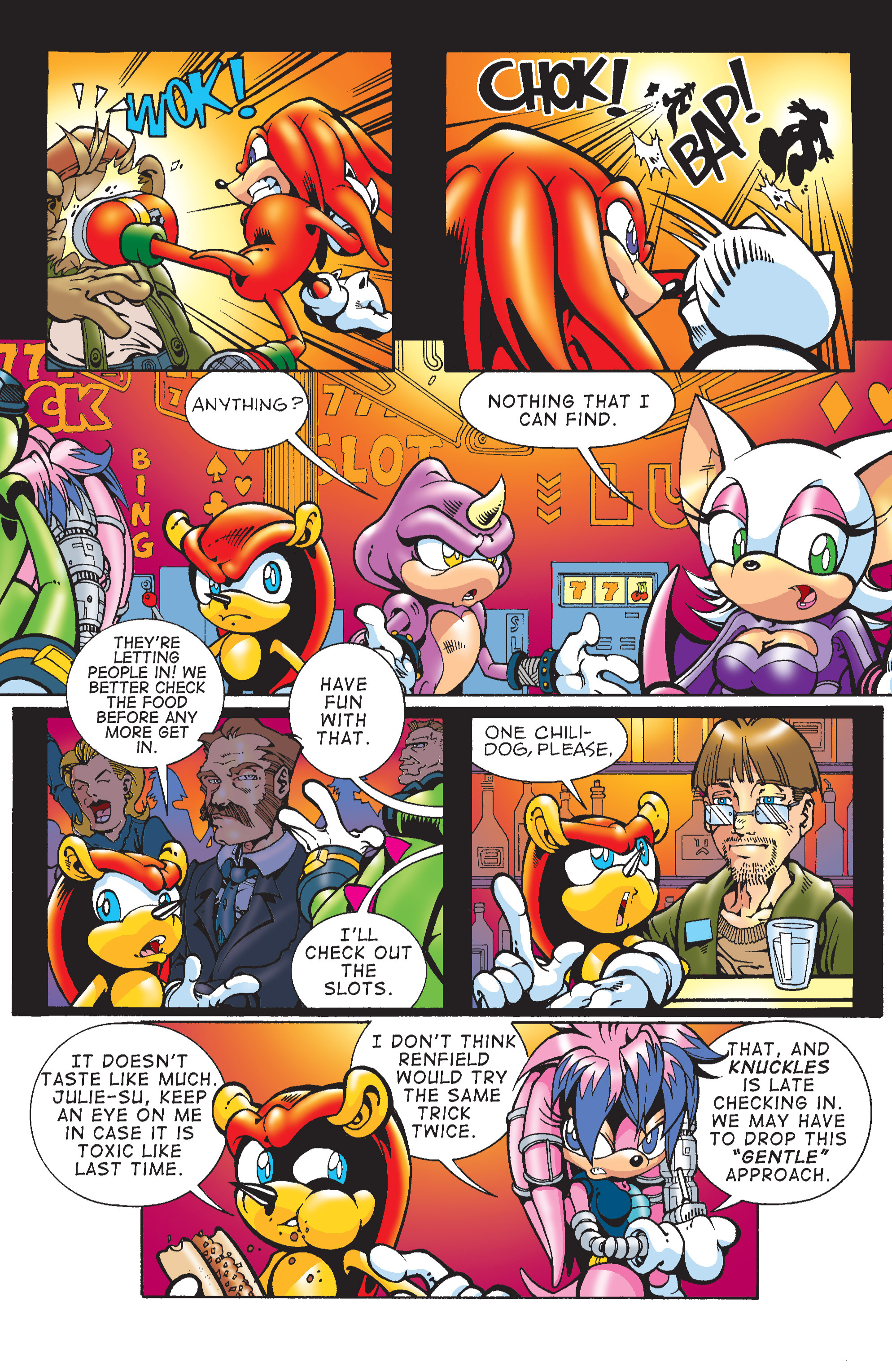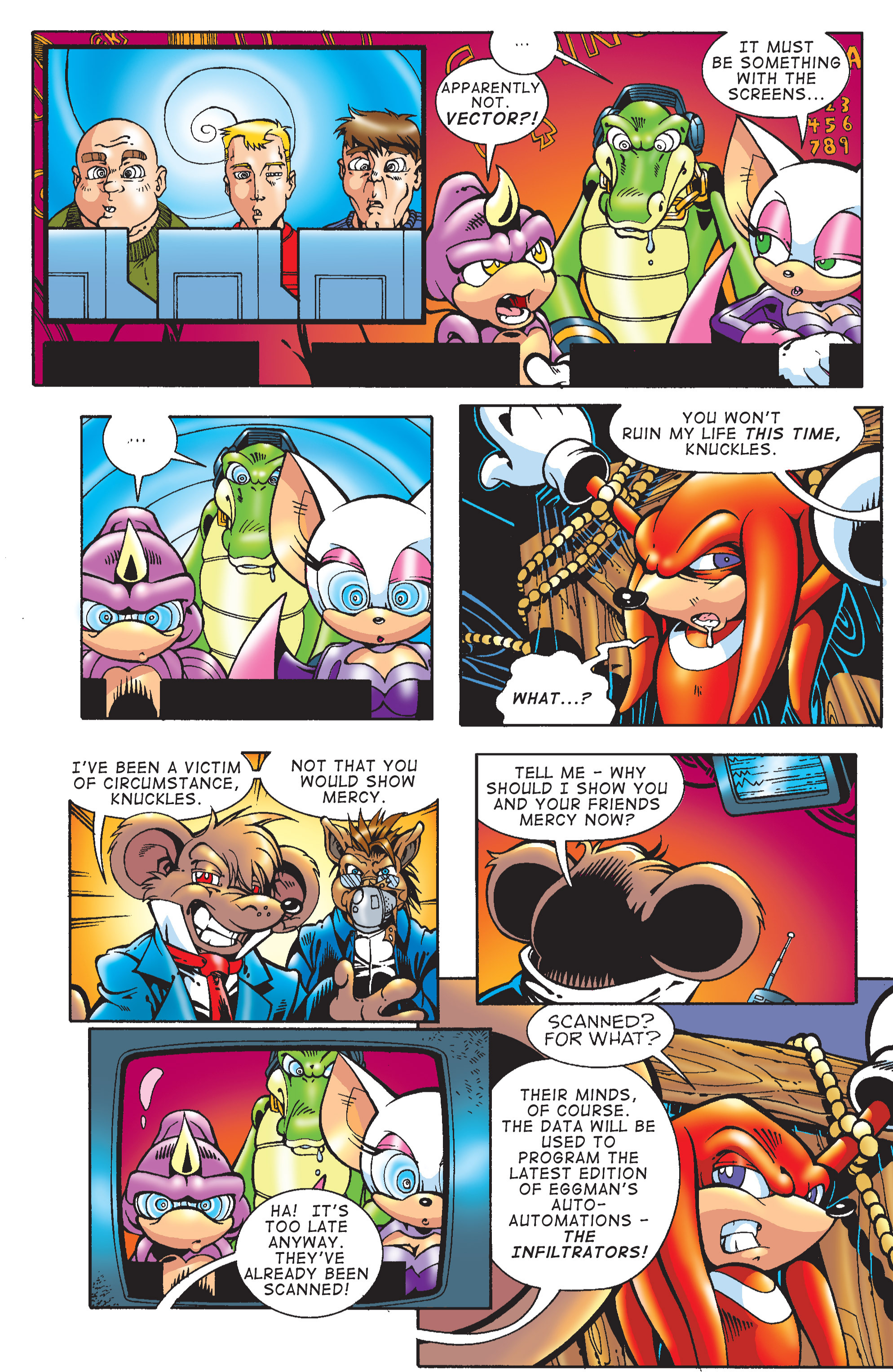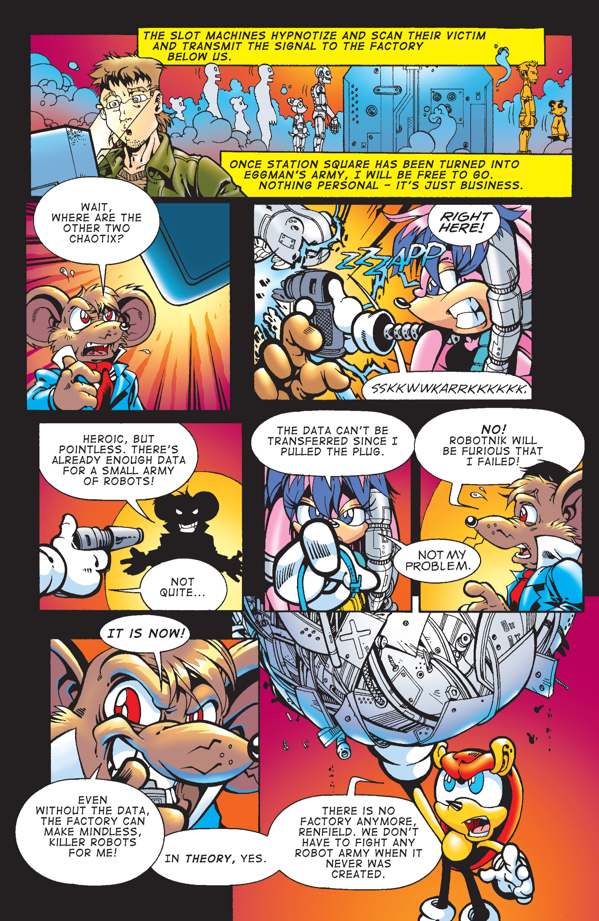 Yeah! The Chaotix sure put that rat in his place! Also, Rouge wearing her Heroes outfit!