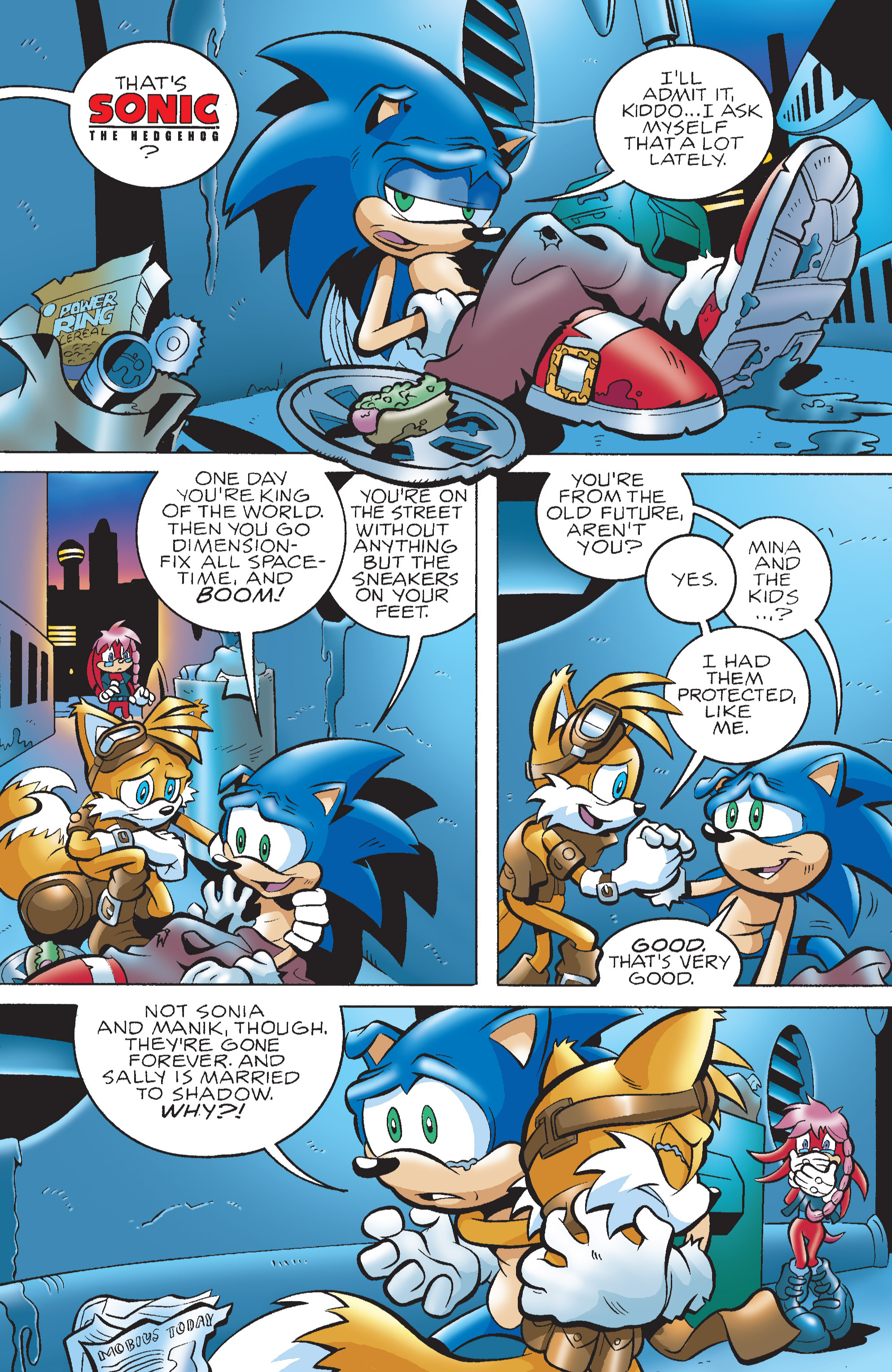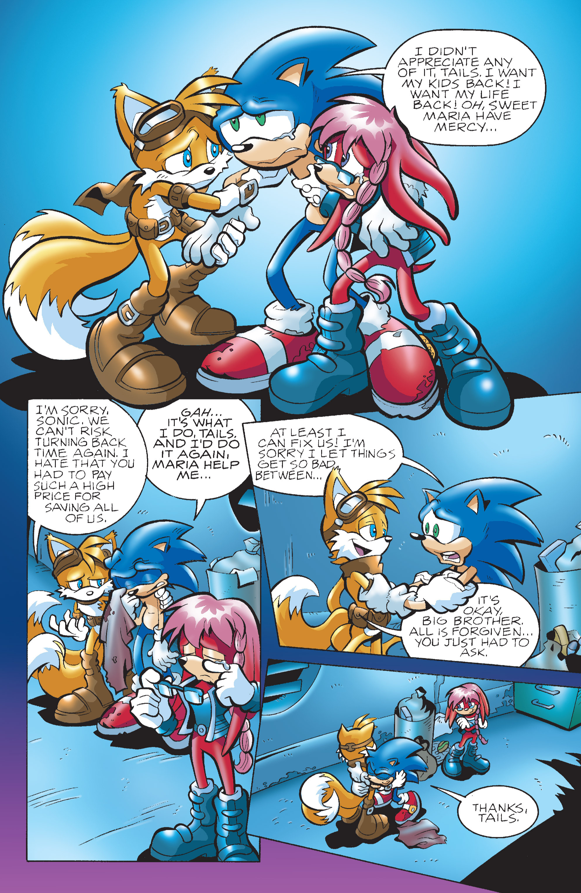 And this is why ariche sonic is goatedinstead of making sonic defealt to one emotion cockyness him crying in this issue makes sense as who in the actual heck would stay cocky when their children aren’t killed no but straight up removed from the timeline.