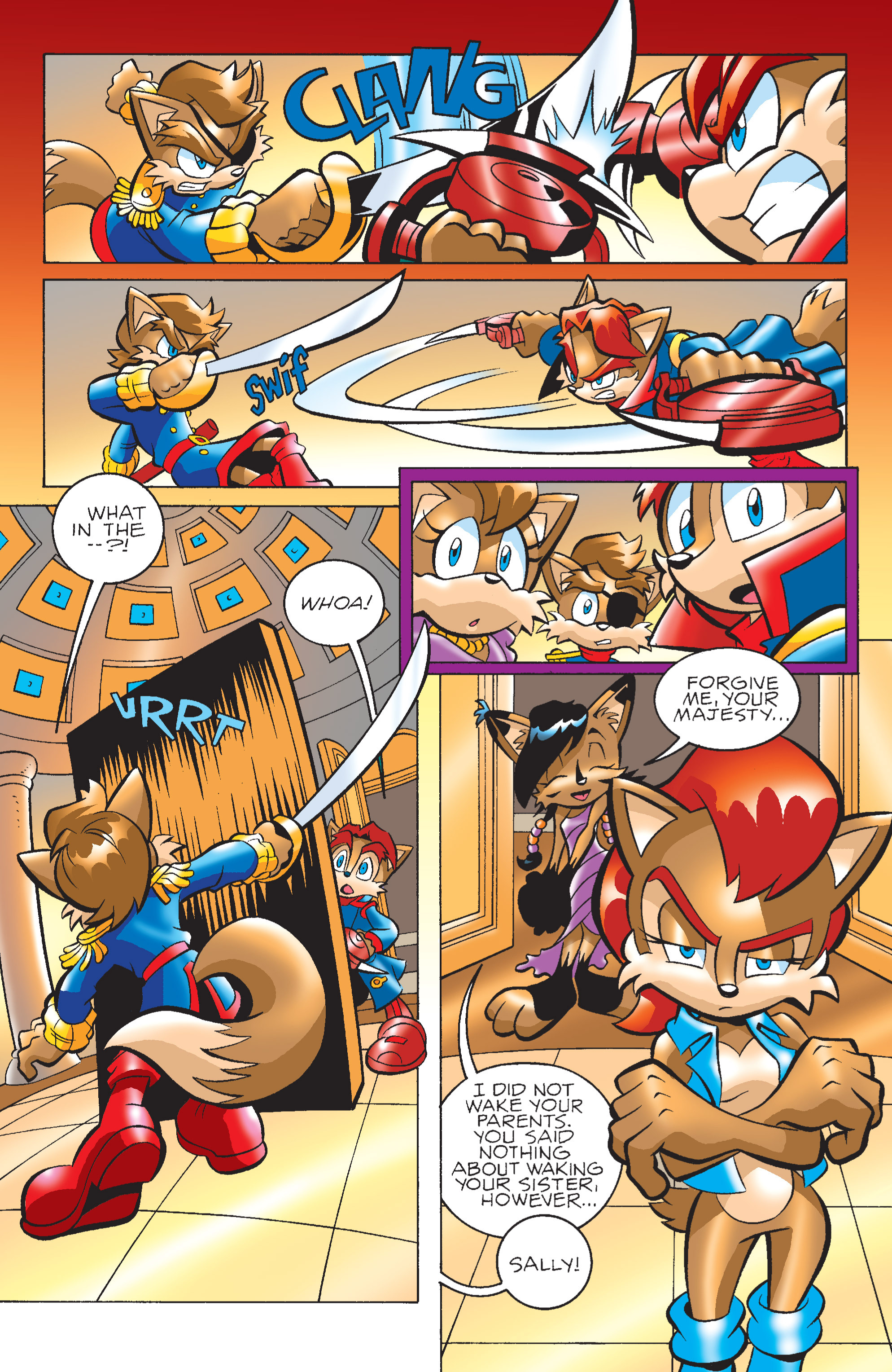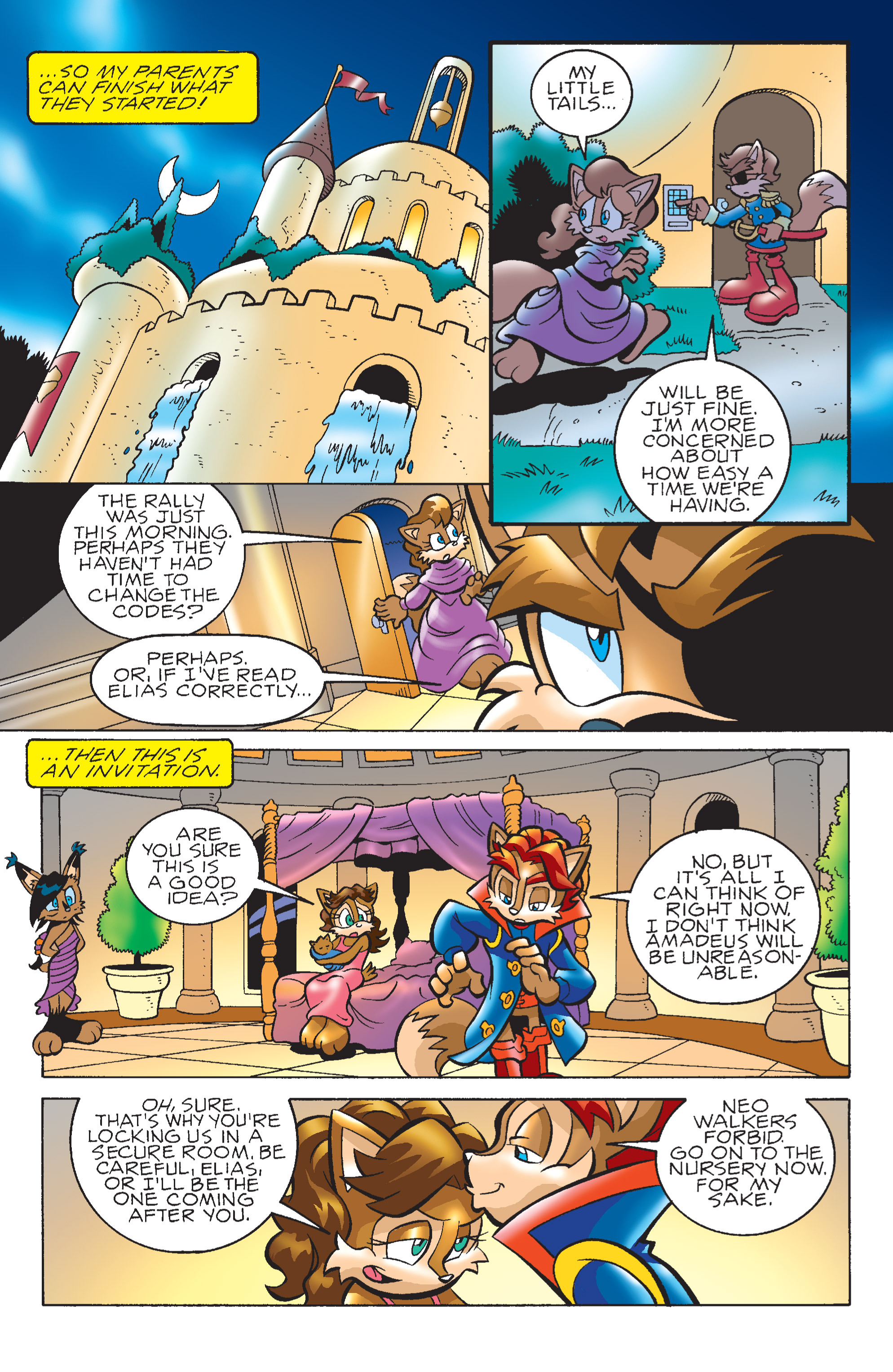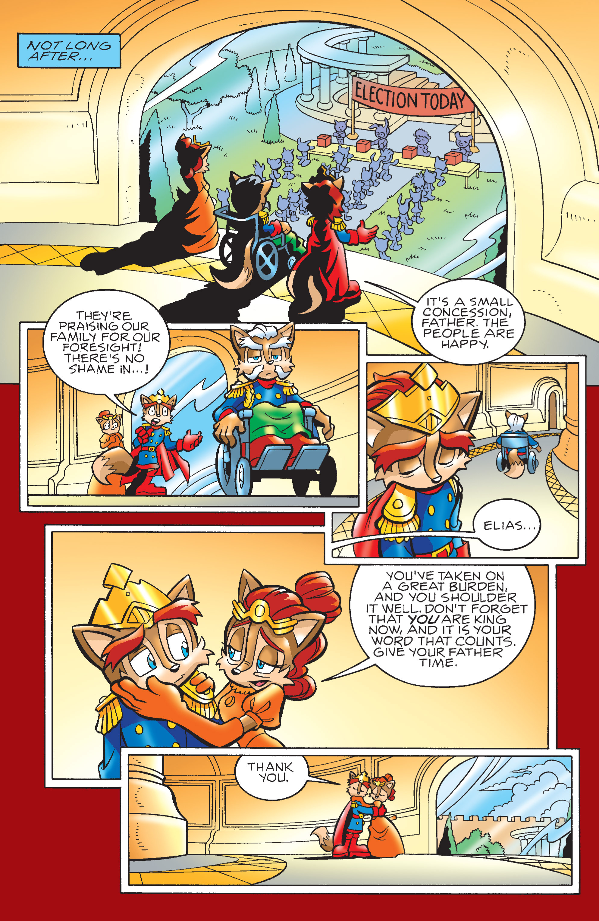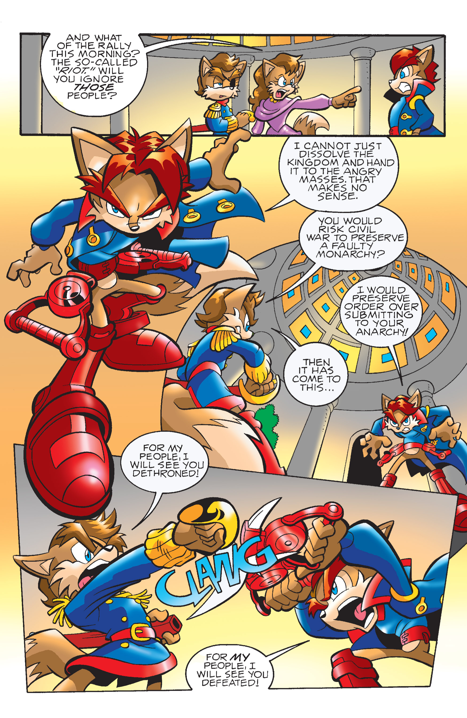 Mobiums? So, THAT’S your currency? Sonic and Tails would never break up! And the monarchy is advancing into a constitutional democracy! YIKES! The talking head bears news!