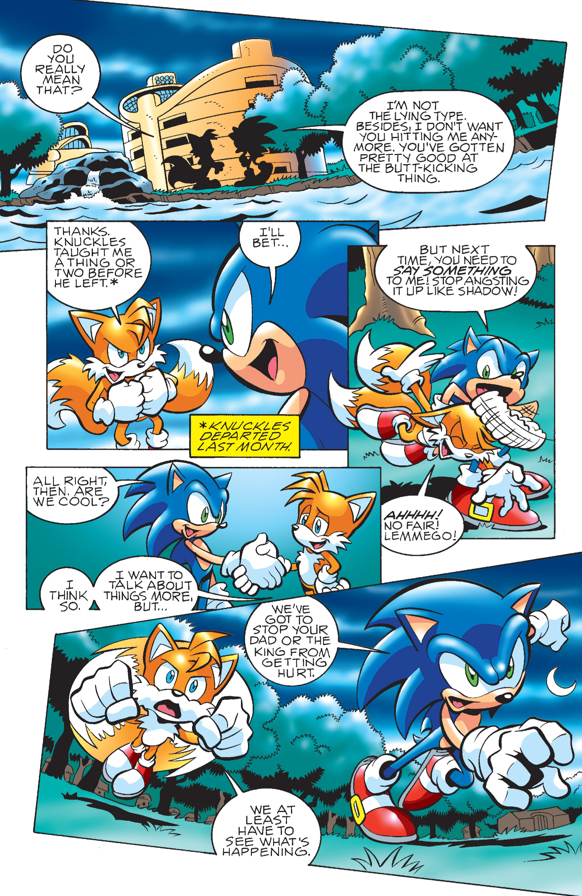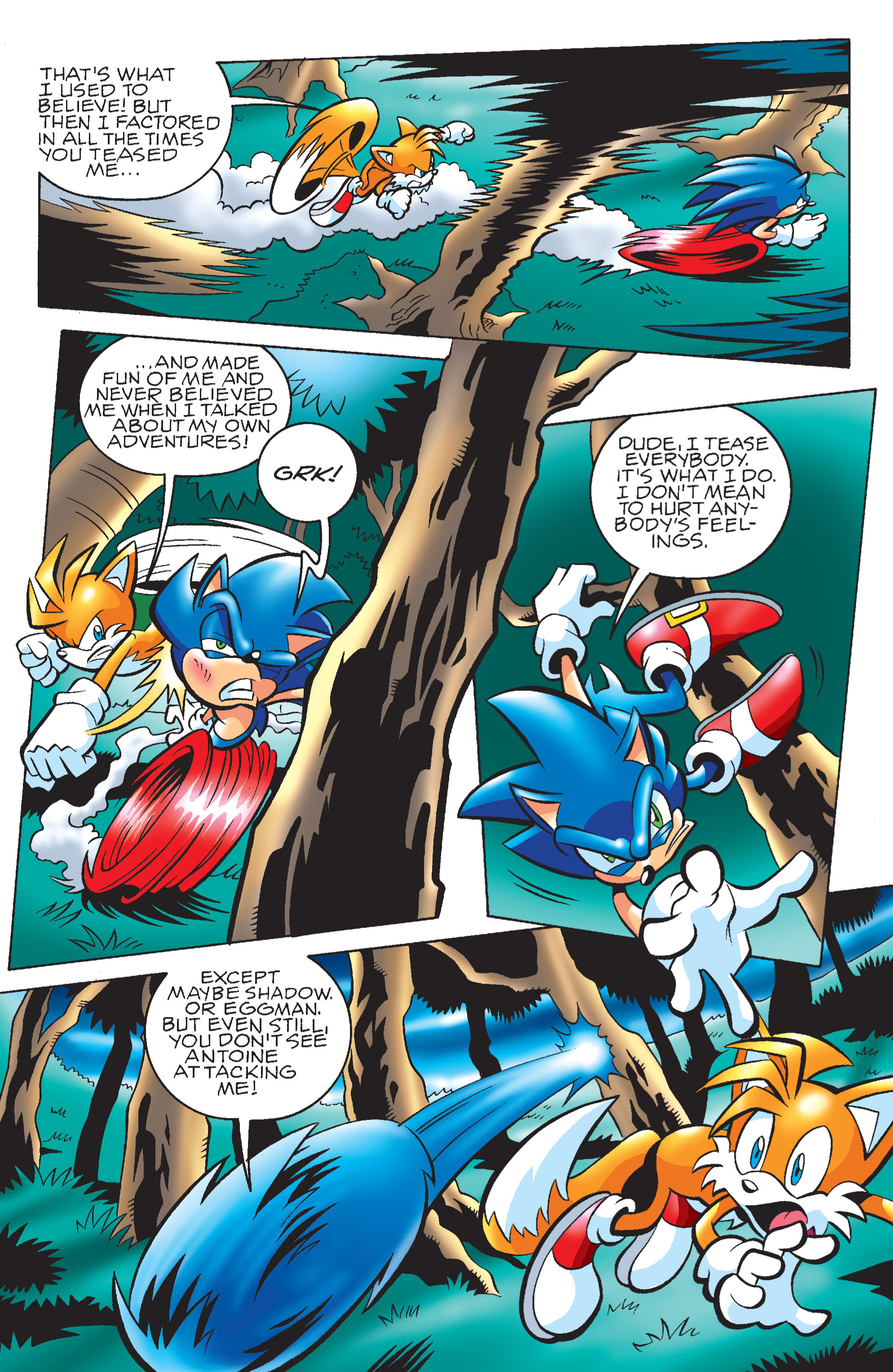 That being said, but this & the last couple instances of people suggesting tension between Sonic & Tails feels mostly out of place. Besides the initial hurt at learning about Sonic/Fiona, there was very little to suggest that. They teamed up numerous times & I never got the sense of there being any tension: they even teamed up to enter the Special Zone & seemed fine there.