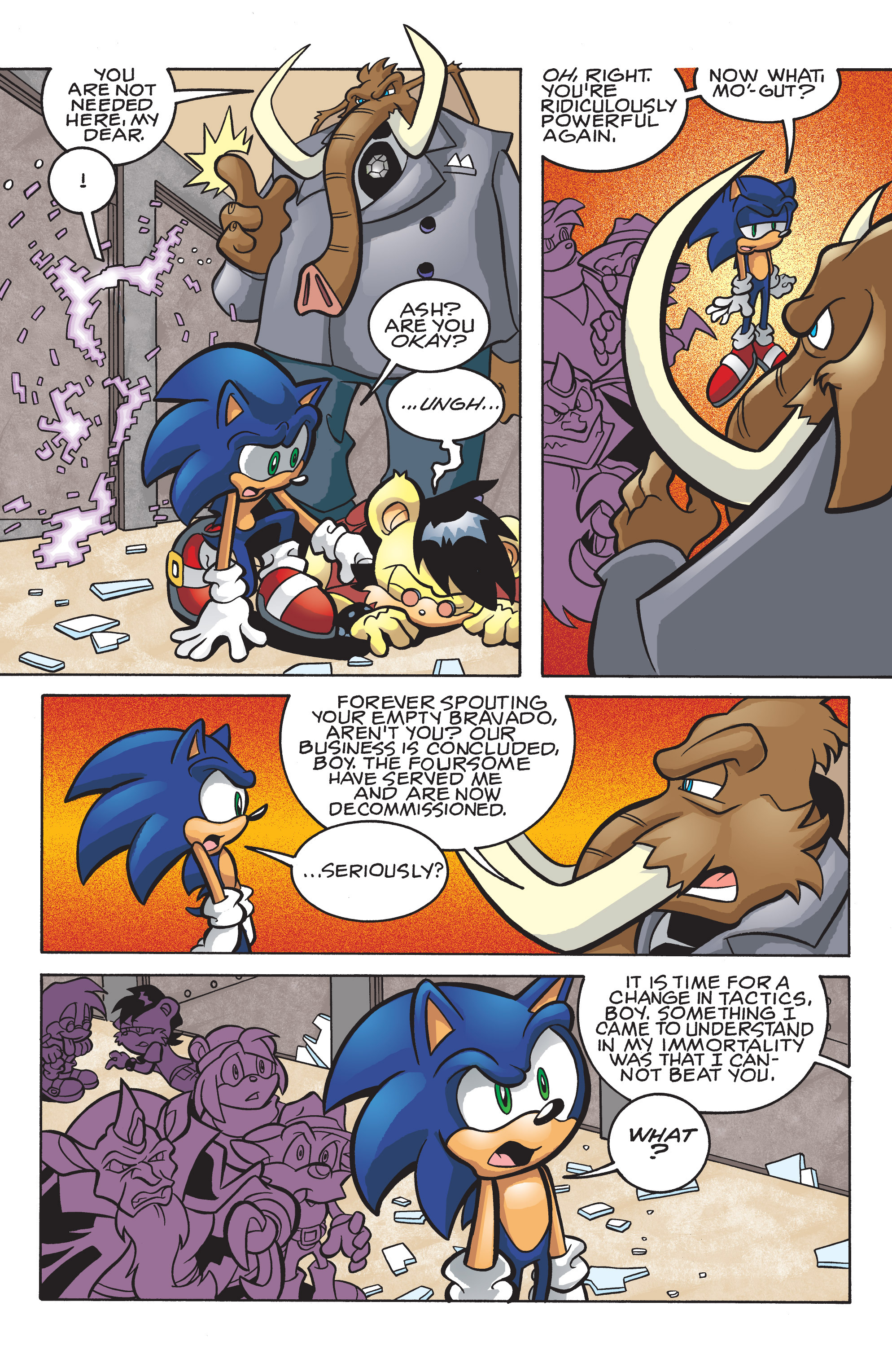Well, Mogul’s plan worked perfectly, but at least he kept his word. So, now he’s just going to wait until Sonic and friends die naturally? Ugh, Rouge, why can’t you just give him good wholesome comfort, why you gotta be scheming?