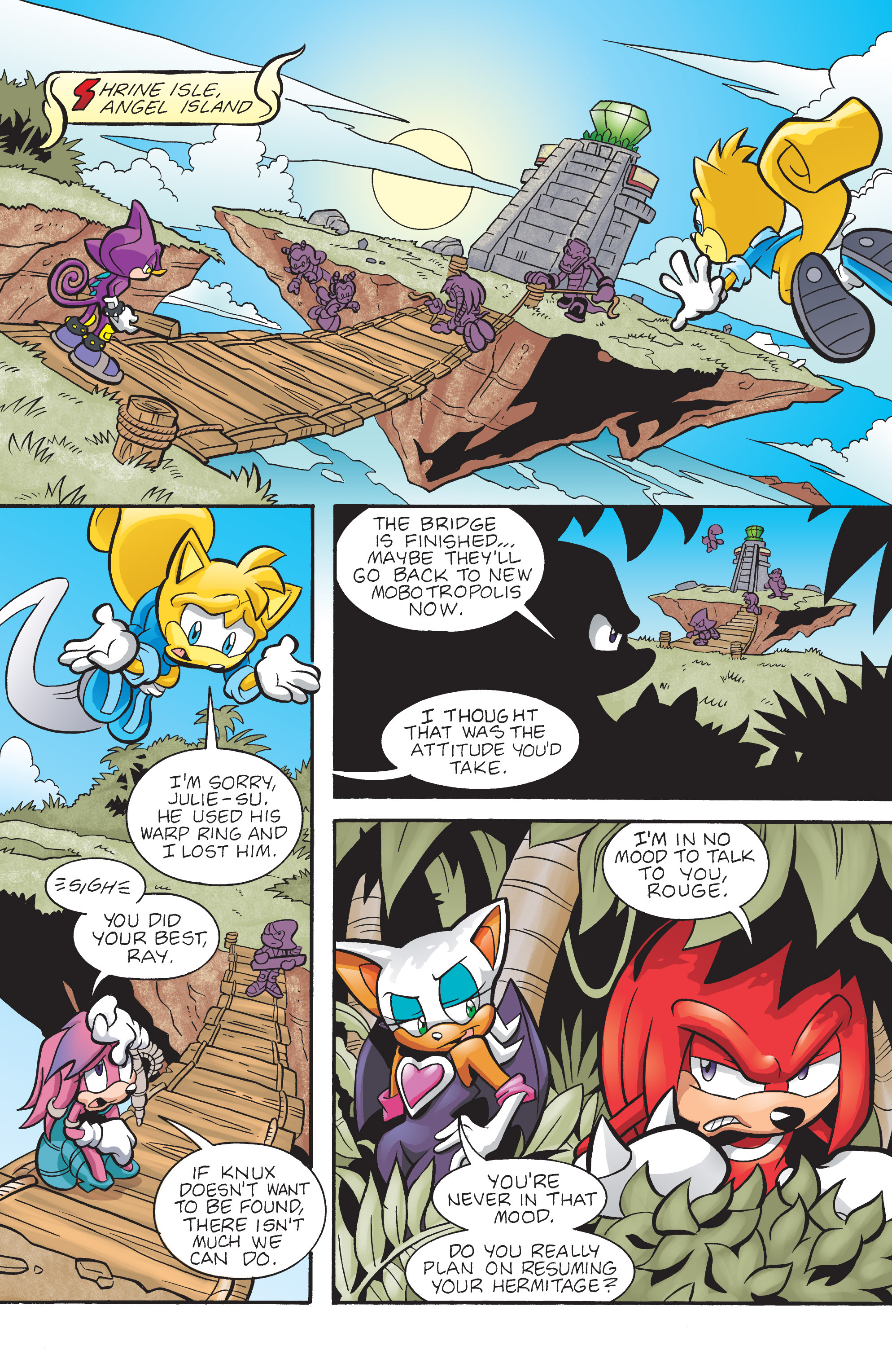 ROUGE! Adore how shes written here. Sorry Julie-su, but I can’t help but feel like there’s way more chemistry with Knuckles and Rouge. Their banter is so fun