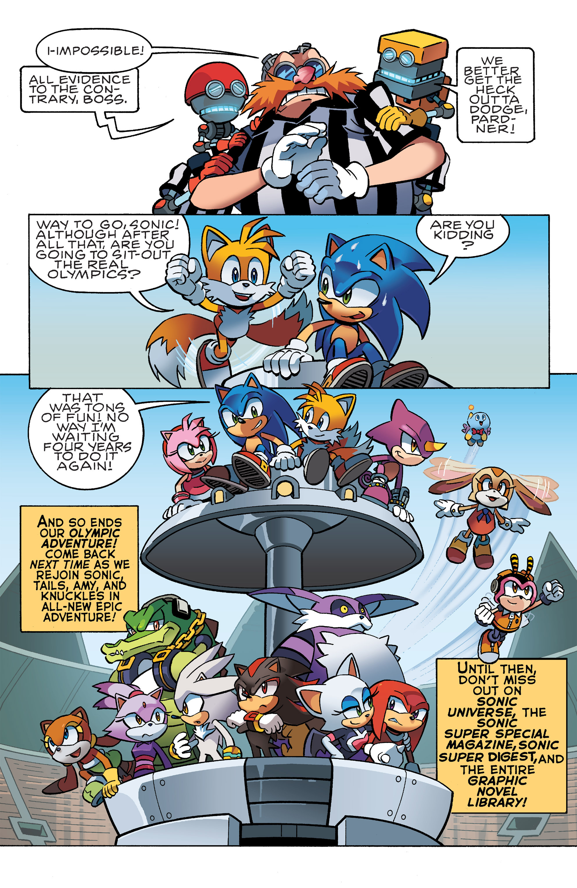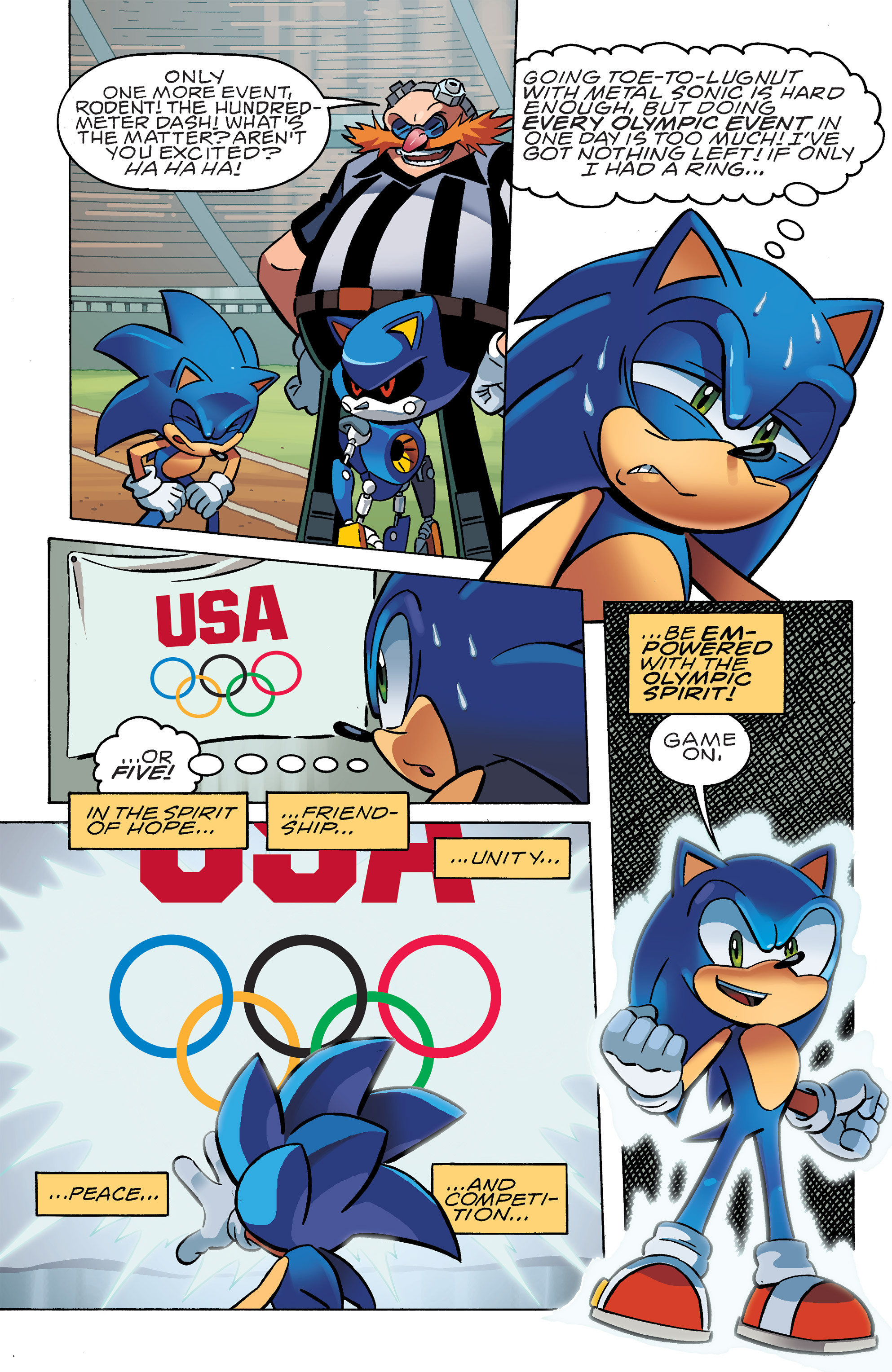 And… suddenly the Olympics. Cool to see Blaze in a tracksuit! HEY, Cream and Marine, both of Blaze’s sidekicks, get to team up! Pretty clever for Sonic to absorb the Olympic Rings! Let’s hope Knuckles doesn’t wind up as the last Echidna in this universe!