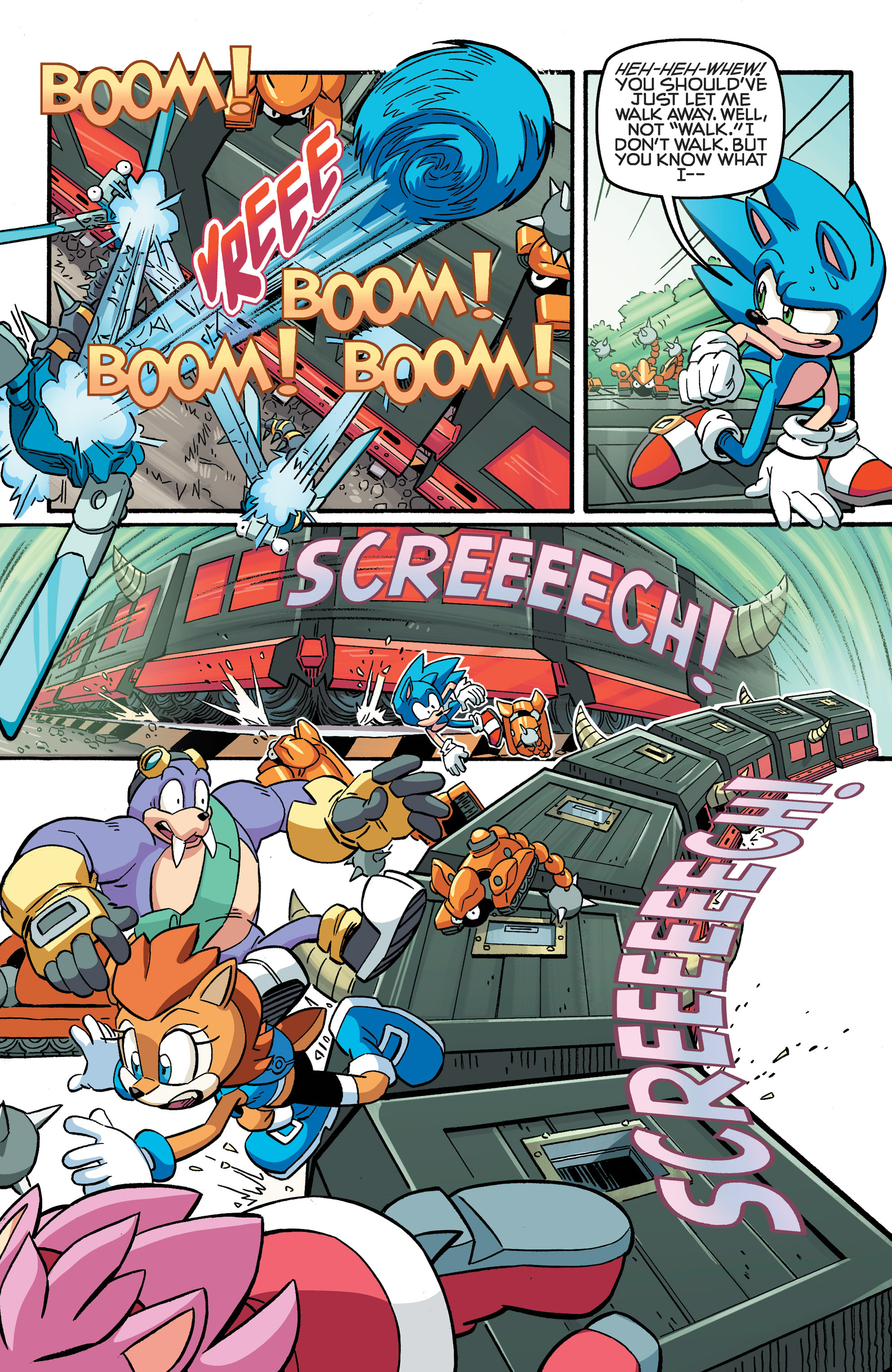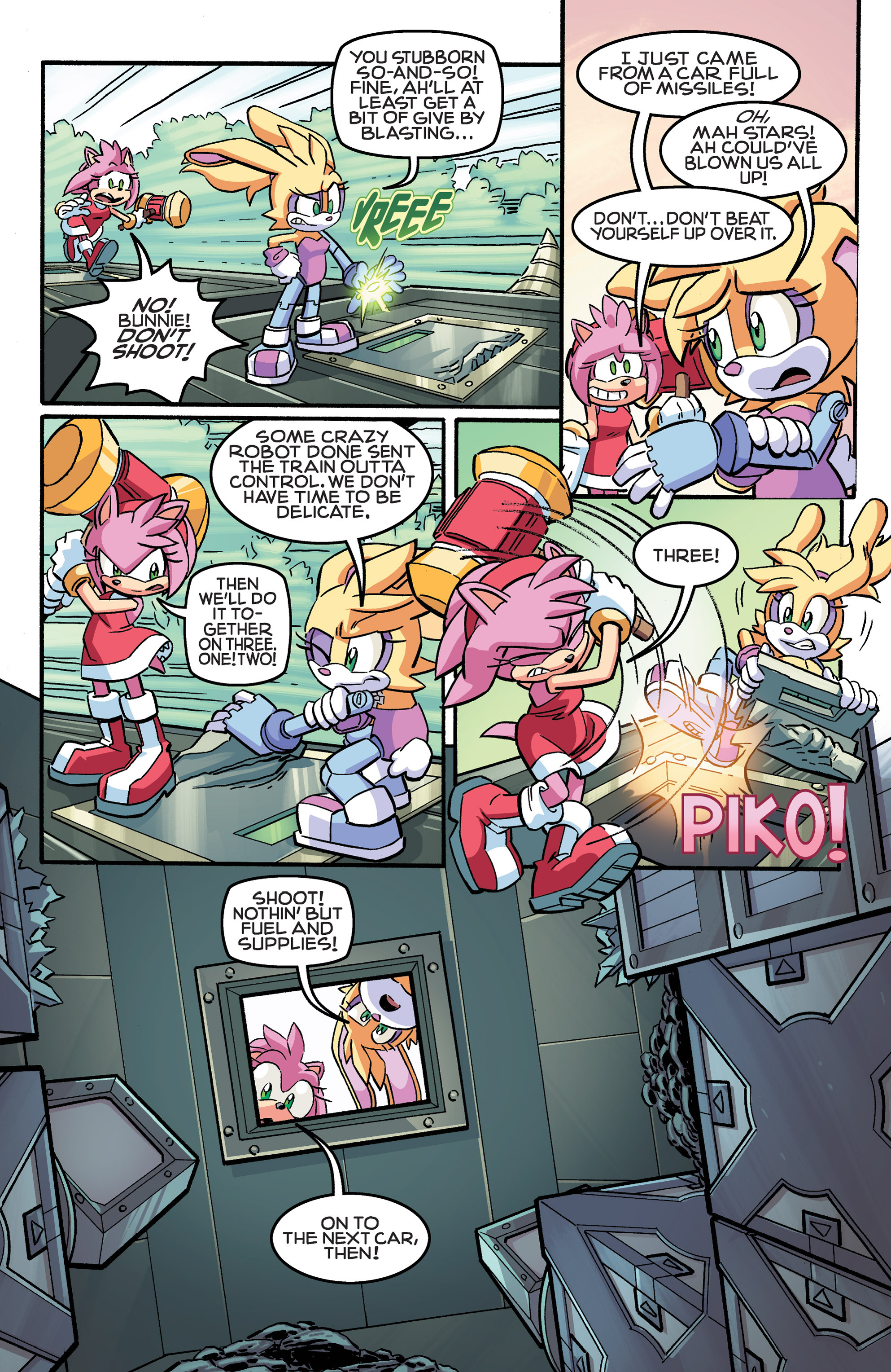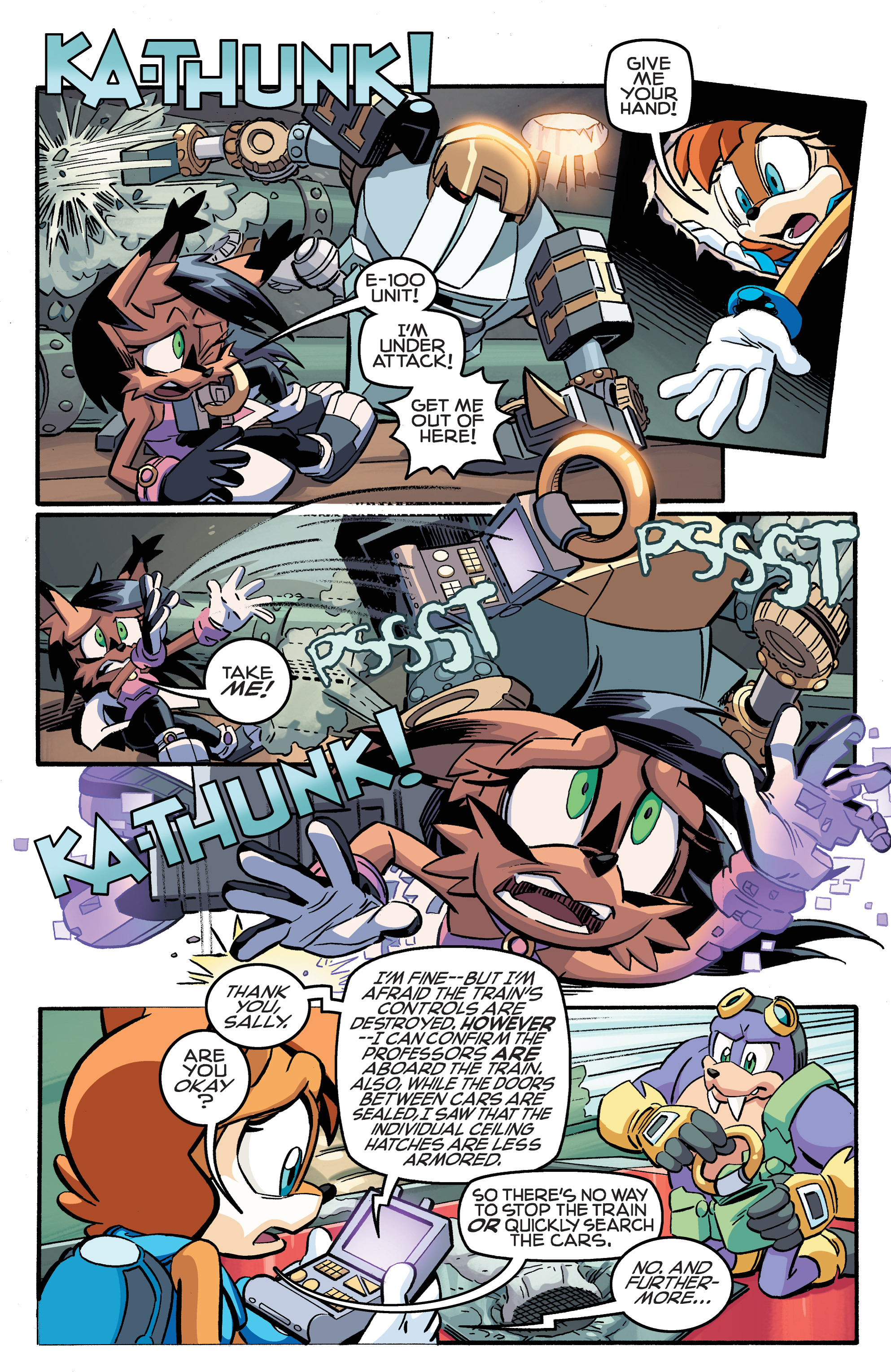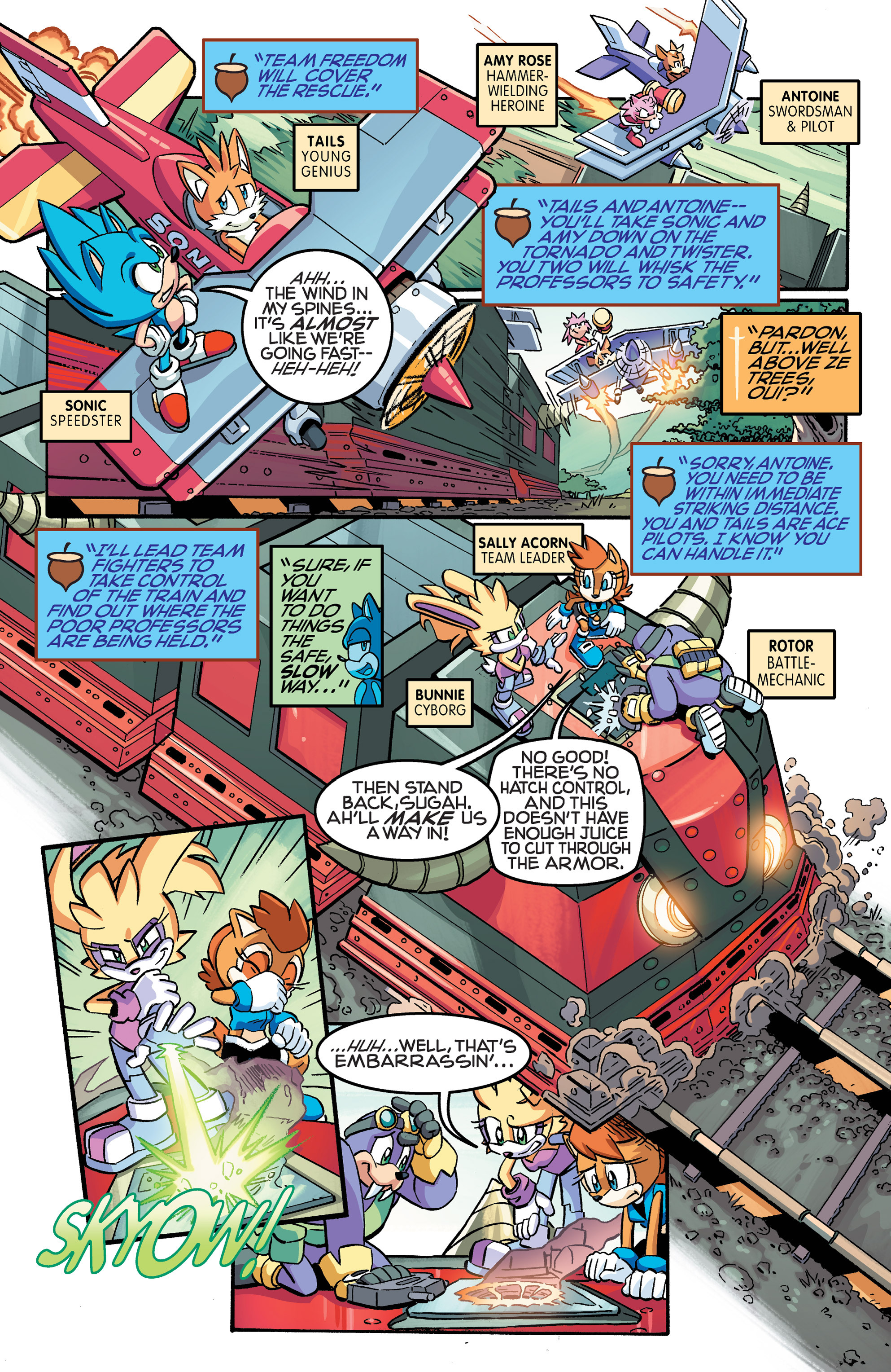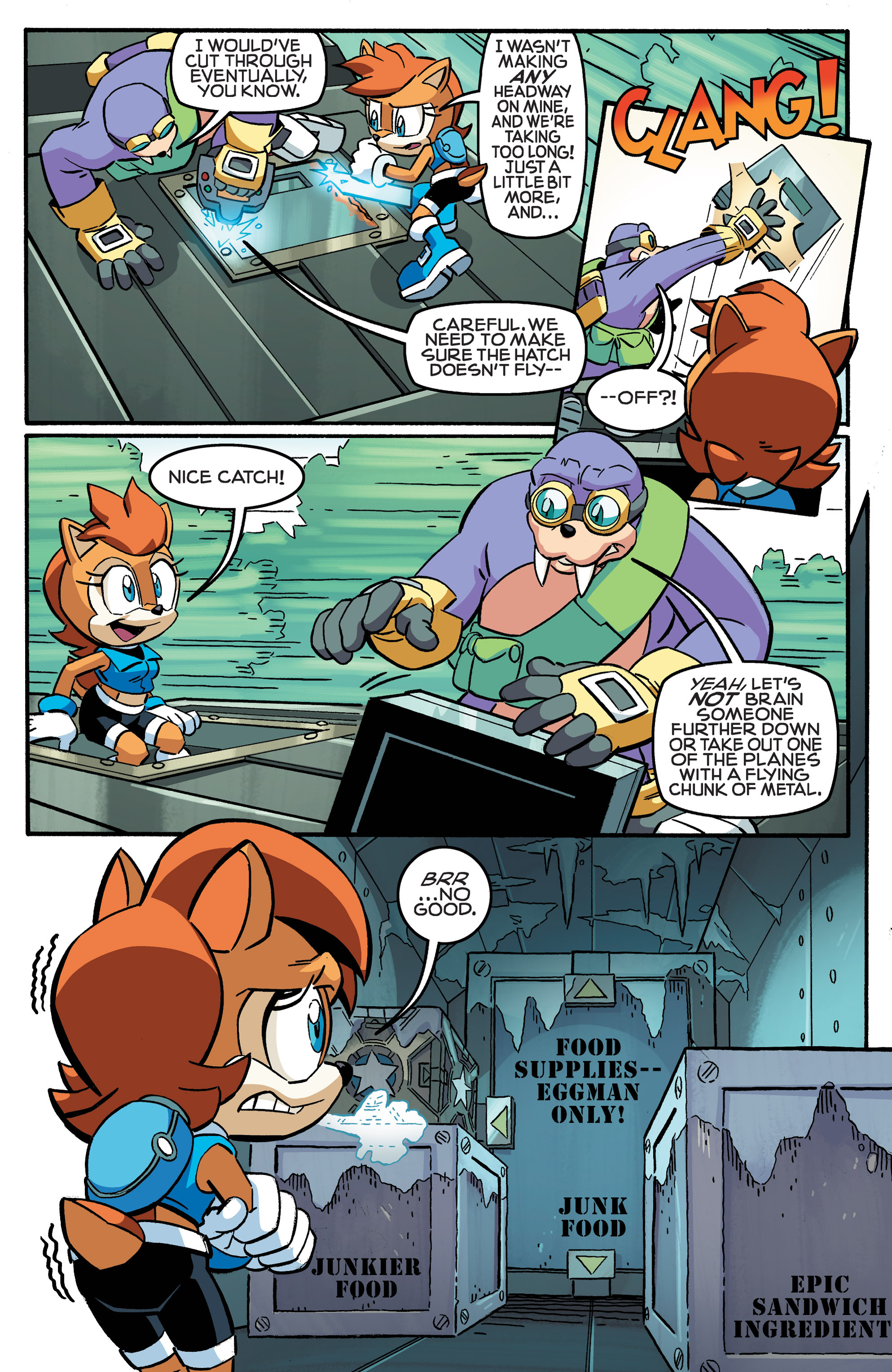 Hey, Soleanna Forest! And the train from Sonic Heroes! And we got a new E-Series member. Oh, Pickle, never change. HA HA HA, Amy nearly killed us all! So did Bunnie! “Epic sandwich ingredient,” WE FOUND THE CUCUMBER SANDWICH! Also, just realized Chuck must’ve been named after Chuck Thorndyke.