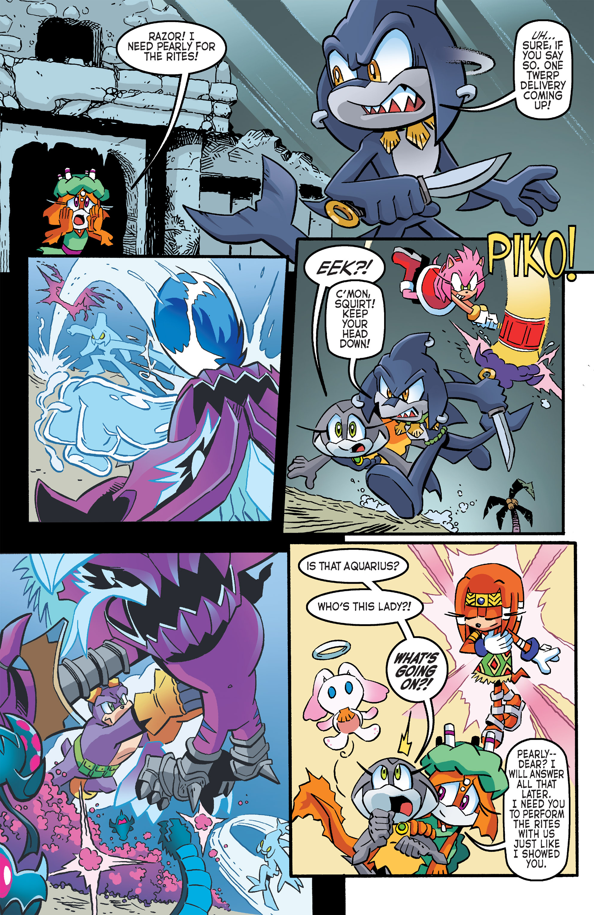 CHAOOOOOOS! And yeah, he’s actually the Water God, just as Solaris is Sun and Gaia is Earth. And that’s actually good lore for why the oceans don’t spill. HAH, Coral and Tikal look alike and have a similar name! Perfect! Heh, time for Mighty and Ray to rejoin the fray! Oooooo, Cassia and Clove look cool. Who was that guy at the end?