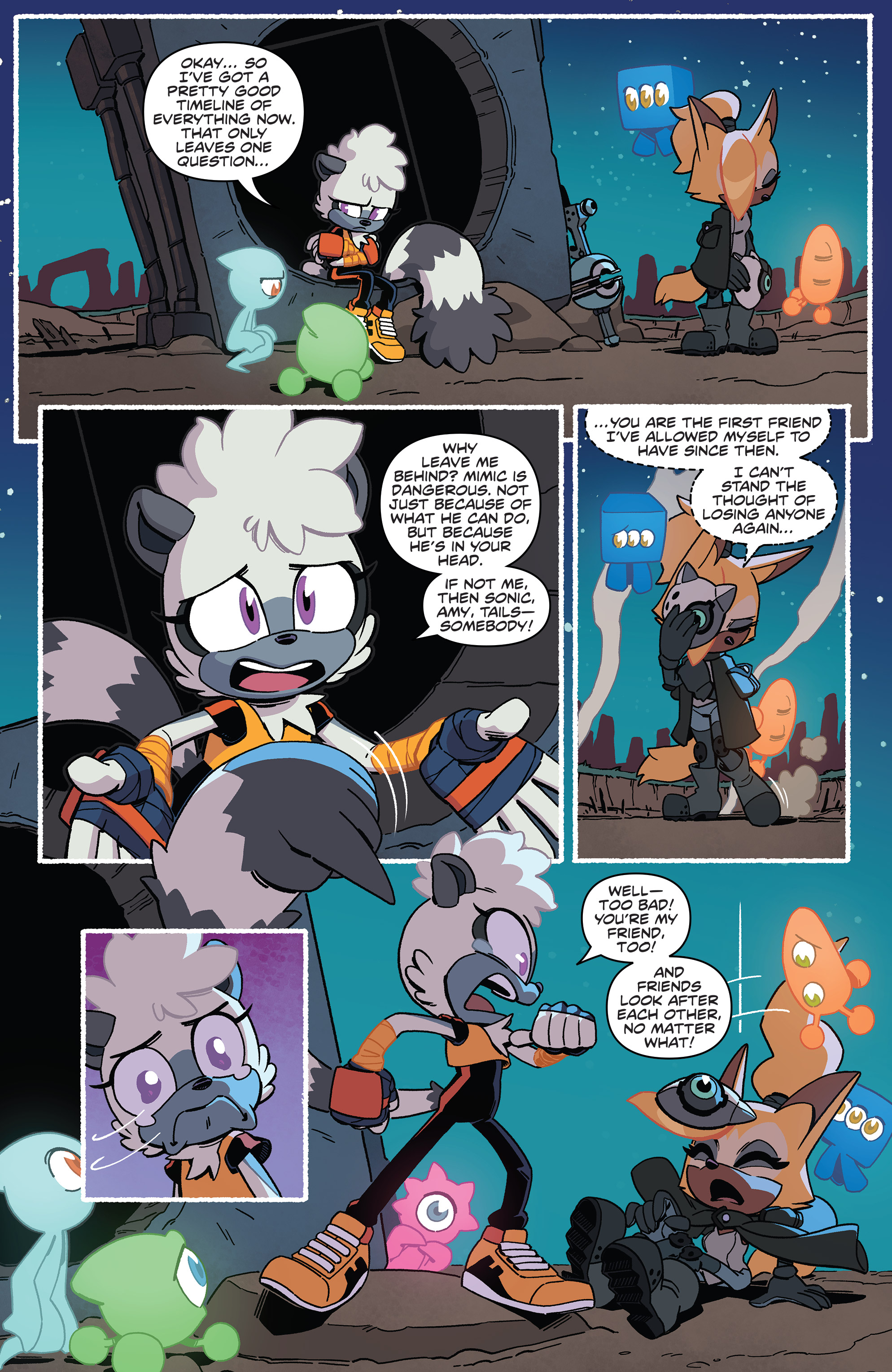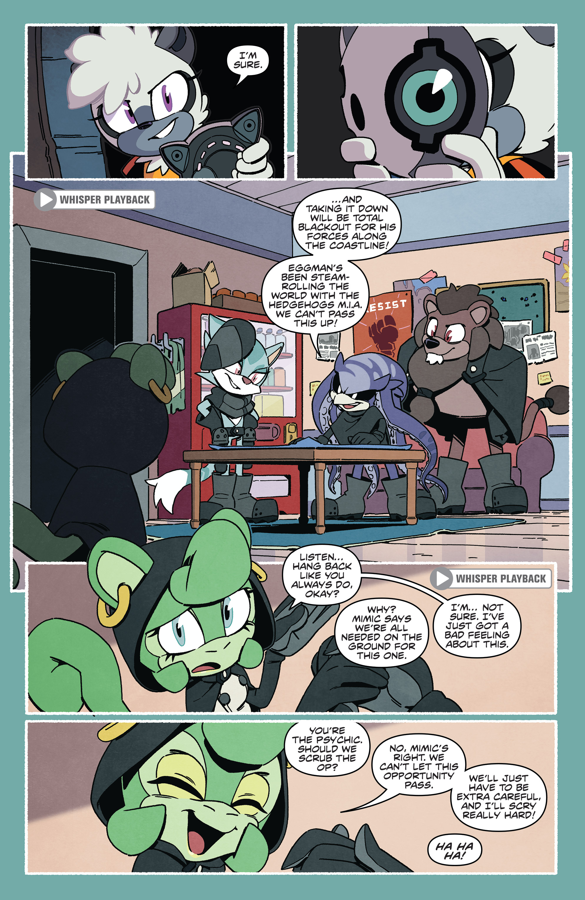 At least Mimic has the knucks to talk back at Eggman.Tangle and Whisper are so precious. X3