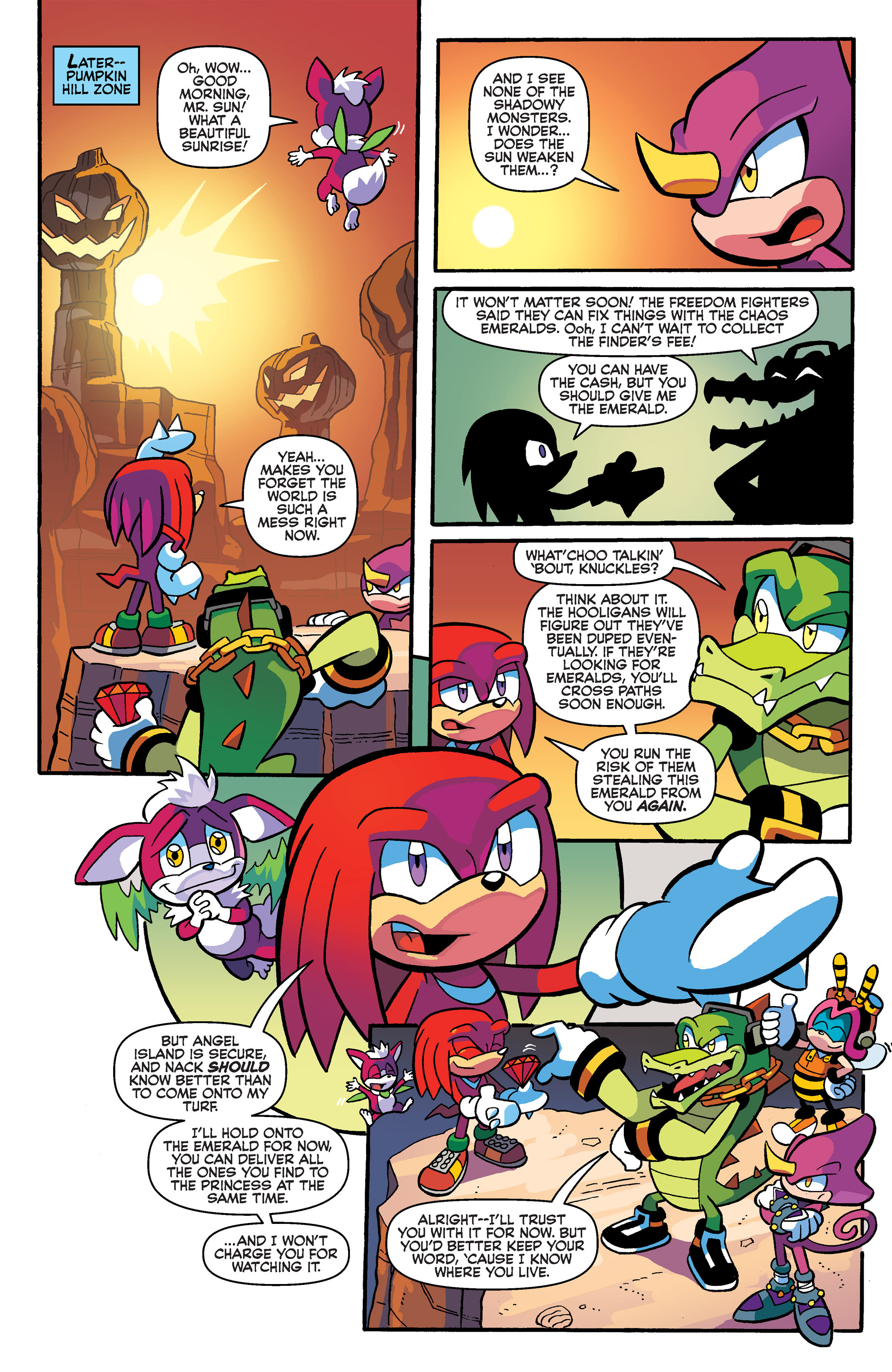 Haha, you can always count on Bean to get offended over his bombs! So, Eclipse is parasitizing Angel Island. Hey, Tikal, good to see you! Awe, Relic is already a big fan! HEY, Nack’s gang are going to Casino Park!