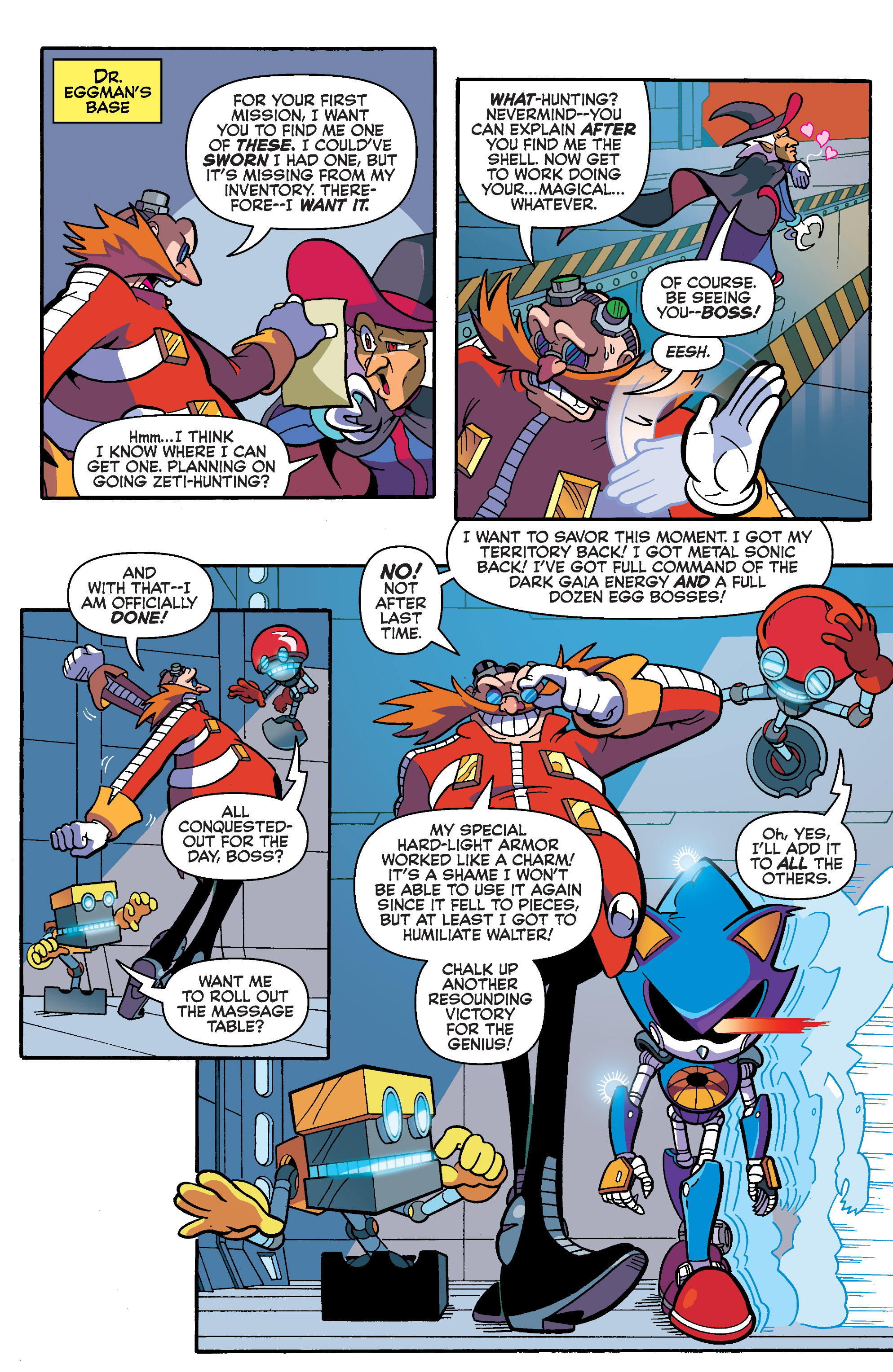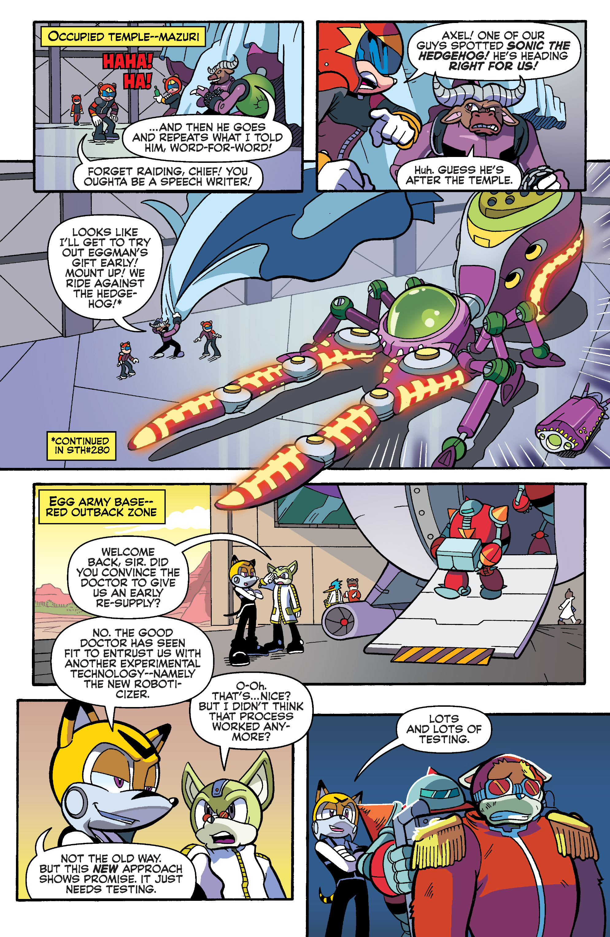 Great, Eggman just got a new officer. Hey, Axel has the Egg Beetle! A new Roboticizer? So long as it doesn’t involve viruses… Looks like Wally is drawing from the Master Emerald now.