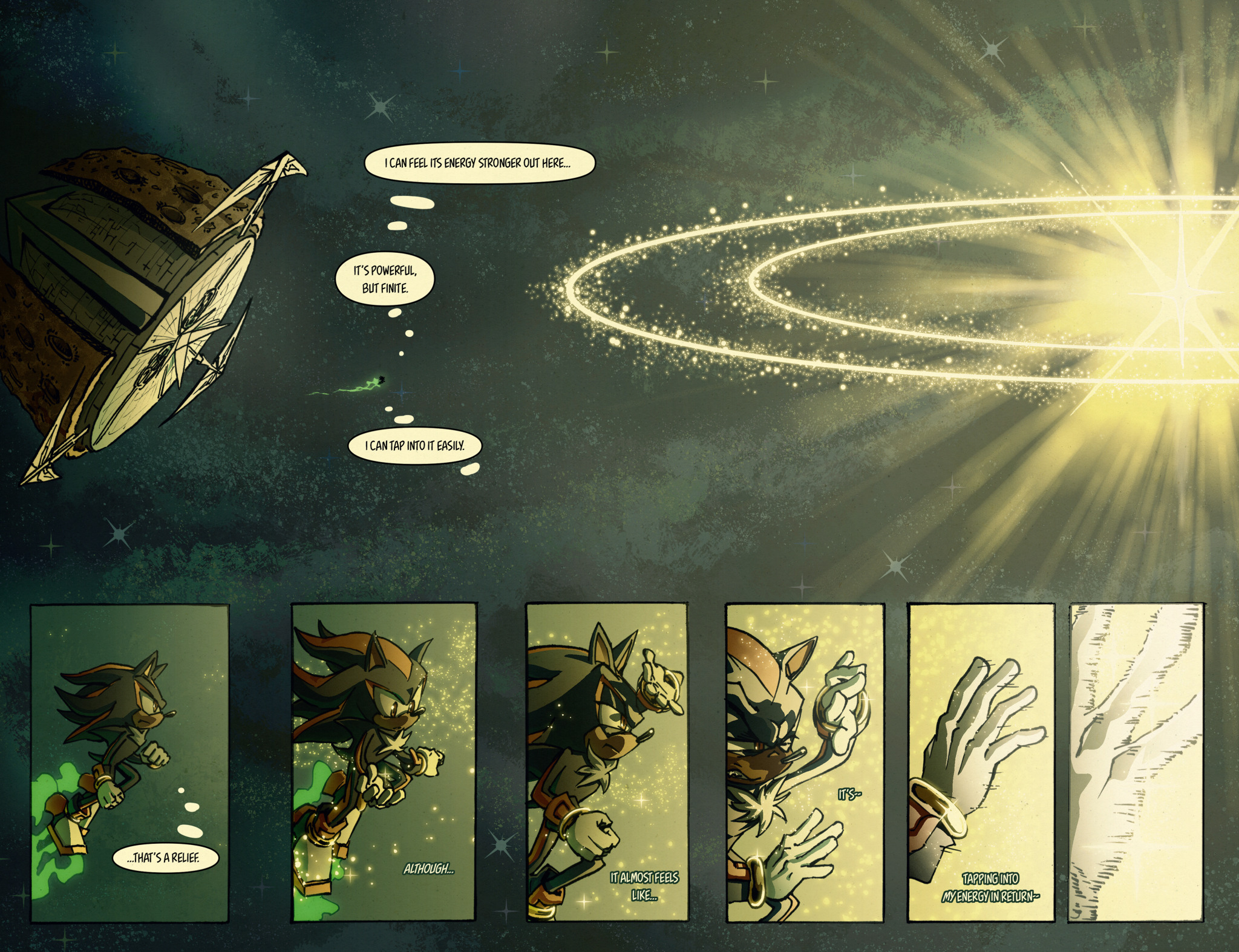 I love this comic, especially how you wrote it and the colours and graphics and everything.. but I do have one tiny question…how do the sonic characters breathe in space? It’s not just shadow I think sonic and tails and most mobian s can also do it.